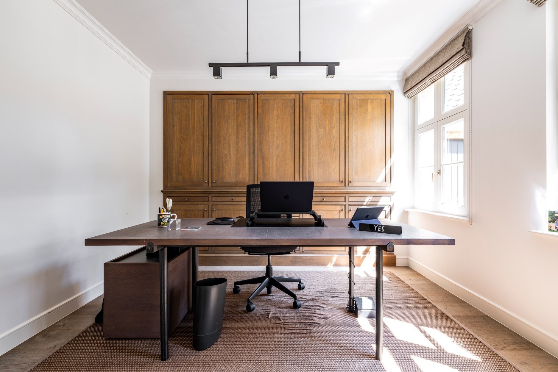 Op het gelijkvloers is verder ook nog een ruim kantoor met veel kastruimte.