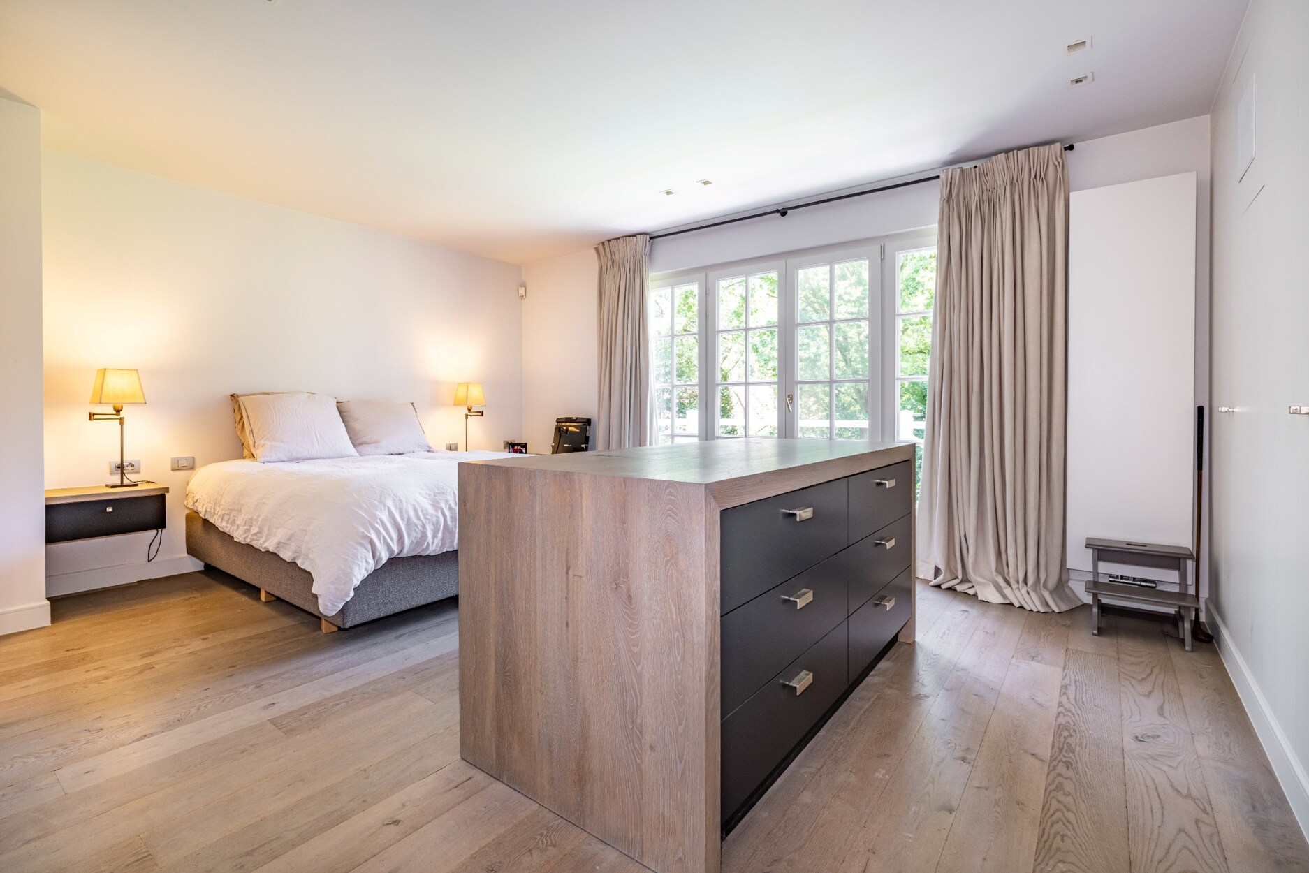 De master-suite bestaat uit een dressing met aansluitende de ruime slaapkamer, tevens voorzien van extra kasten. Verder is er een luxueuze badkamer aanwezig met een grote inloopdouche, wastafel, vloer- en handdoek verwarming. Apart toilet.