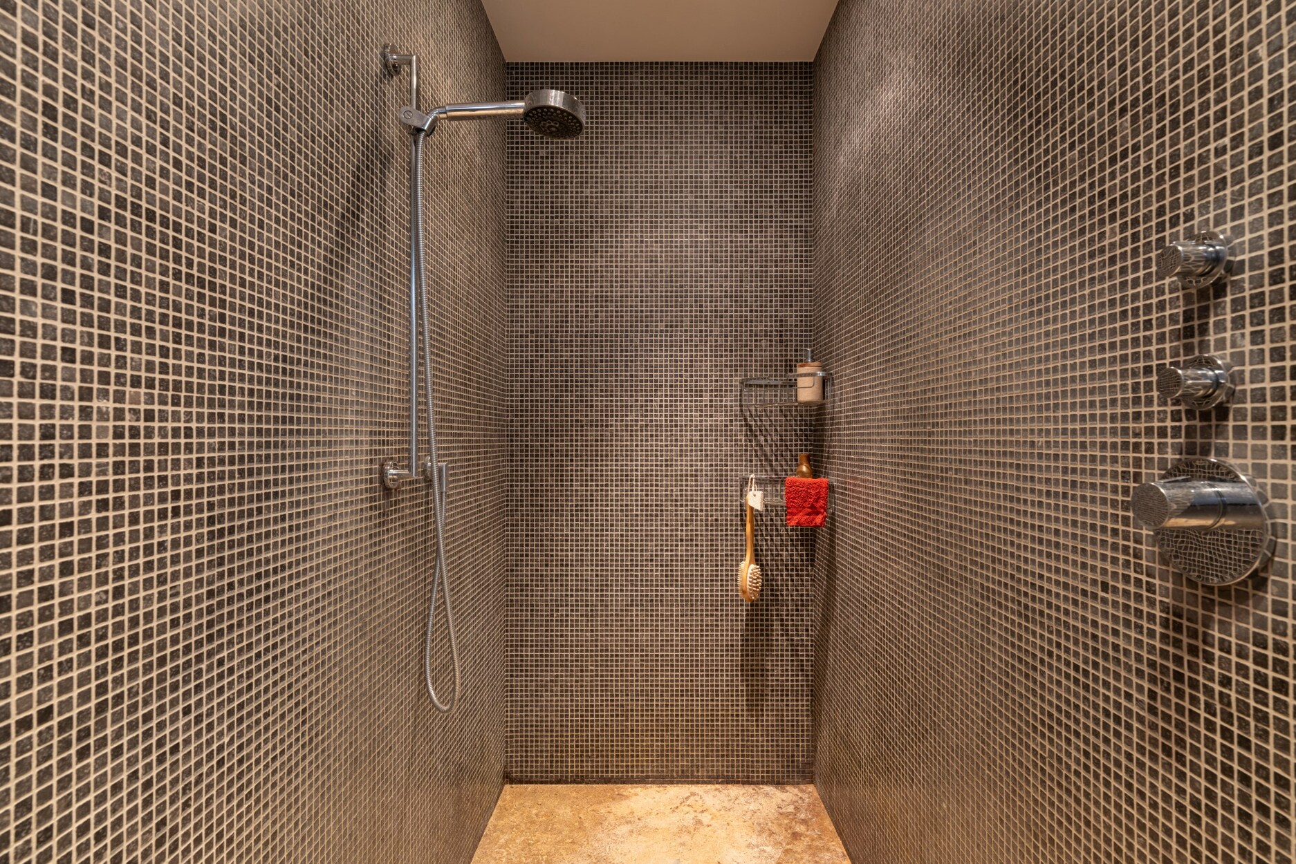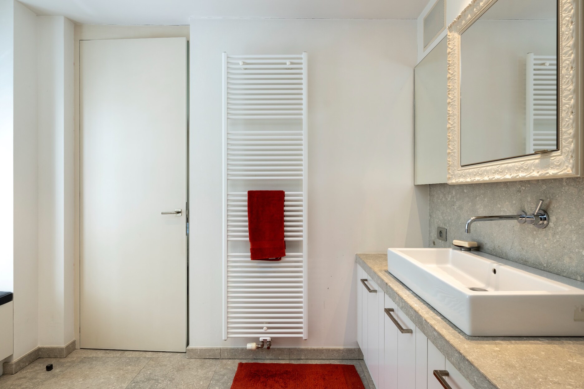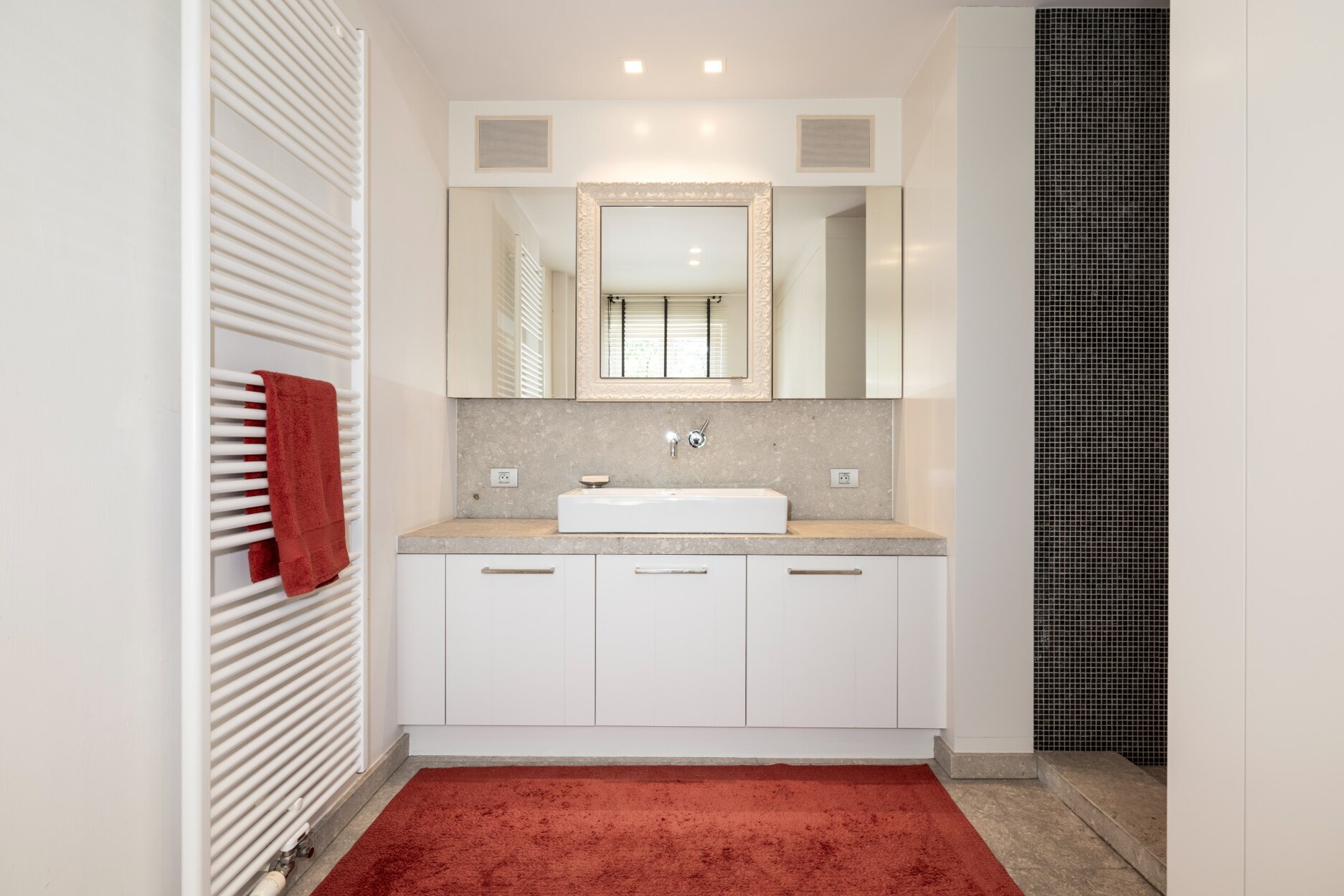 De ruime nachthal biedt ons verder toegang tot de 2e en 3e slaapkamer welke samen een communicerende badkamer delen met douche, wastafel, vloer- en handdoekverwarming. Verder nog een 4e slaapkamer met een eigen (3e) badkamer. Deze werd ingericht met een douche, een wastafel en een vloer- en handdoek verwarming. Een bijkomend apart toilet is te vinden aan de nachthal.