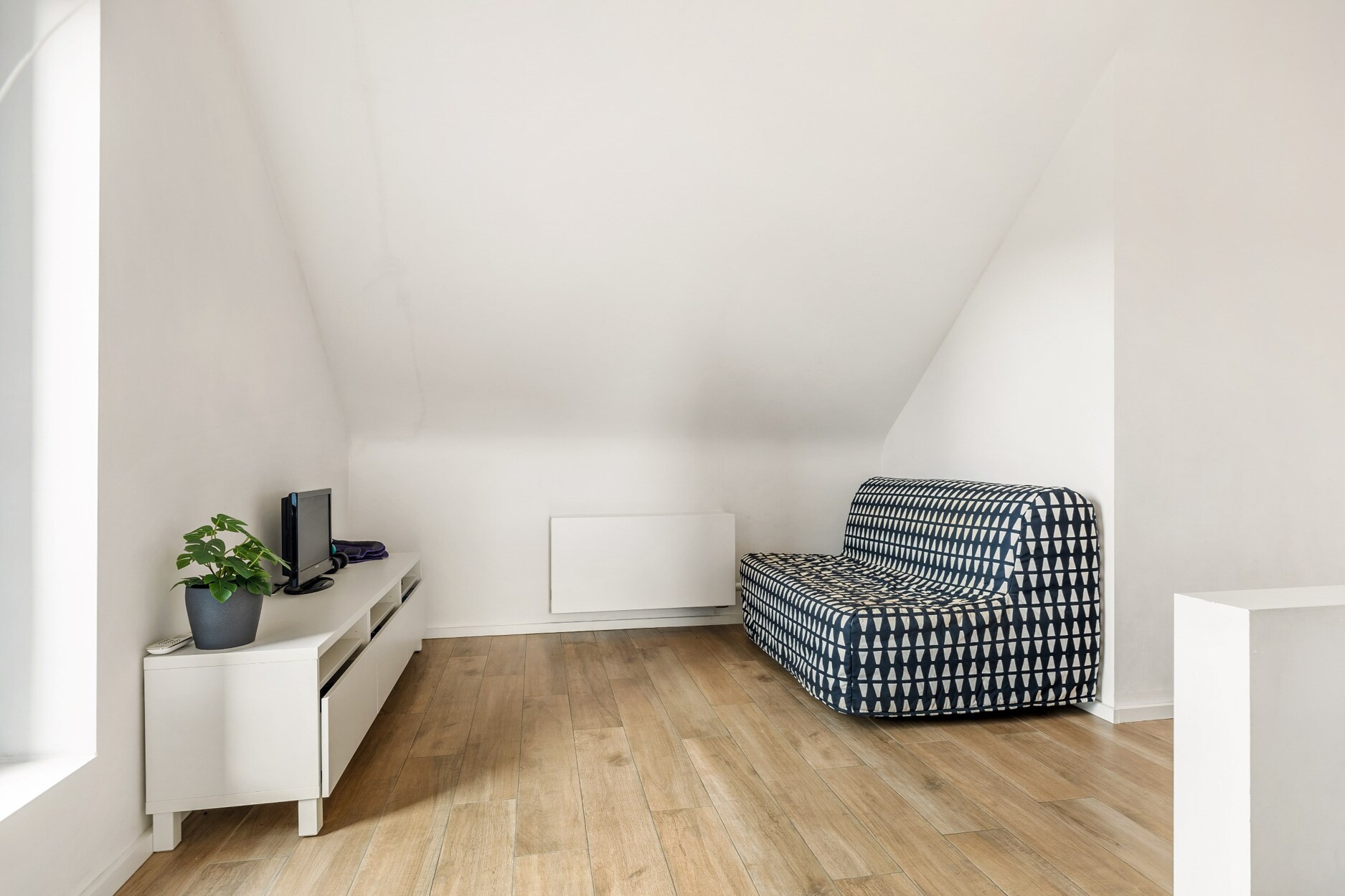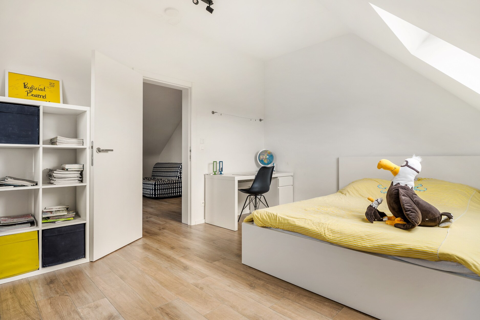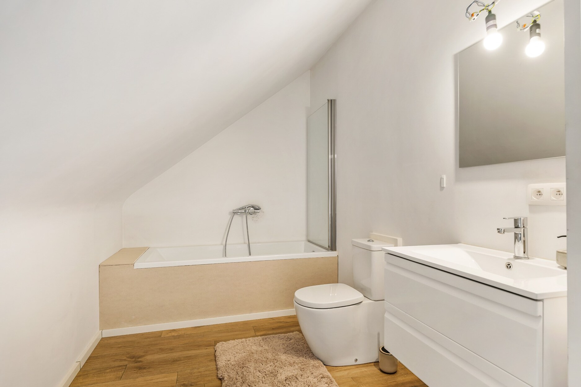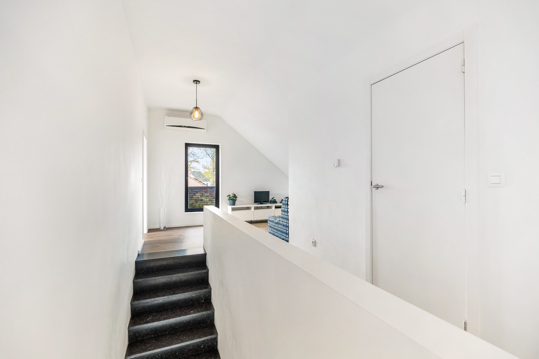 Op de verdieping bevinden er zich 3 ruime slaapkamers. De nachthal is extra ruim en voorziet in voldoende plaats voor nog een zithoek te creëren. Via de nachthal is het mogelijk om op de 2 gezellige terrasjes te komen op de verdieping. De badkamer heeft een combinatie bad/douche, een wastafelmeubel en toilet. Op de bovenverdieping zijn airco en rolluiken aanwezig.