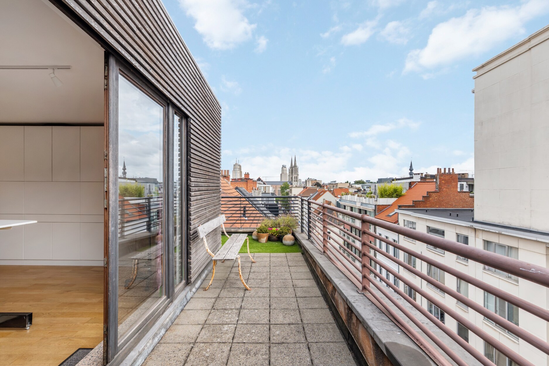 • Groot zonnig terras van 20 m² met uitzicht over de stad