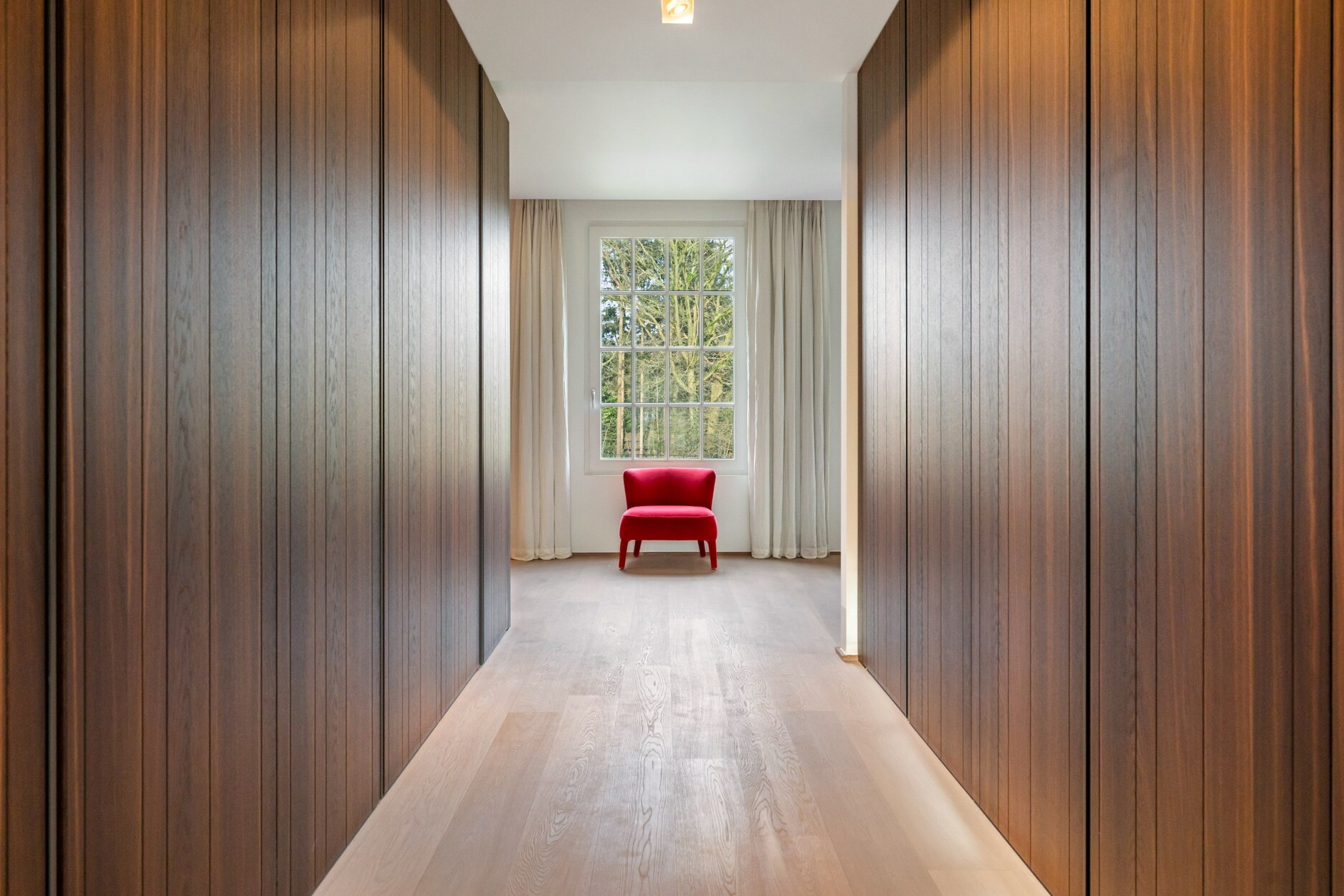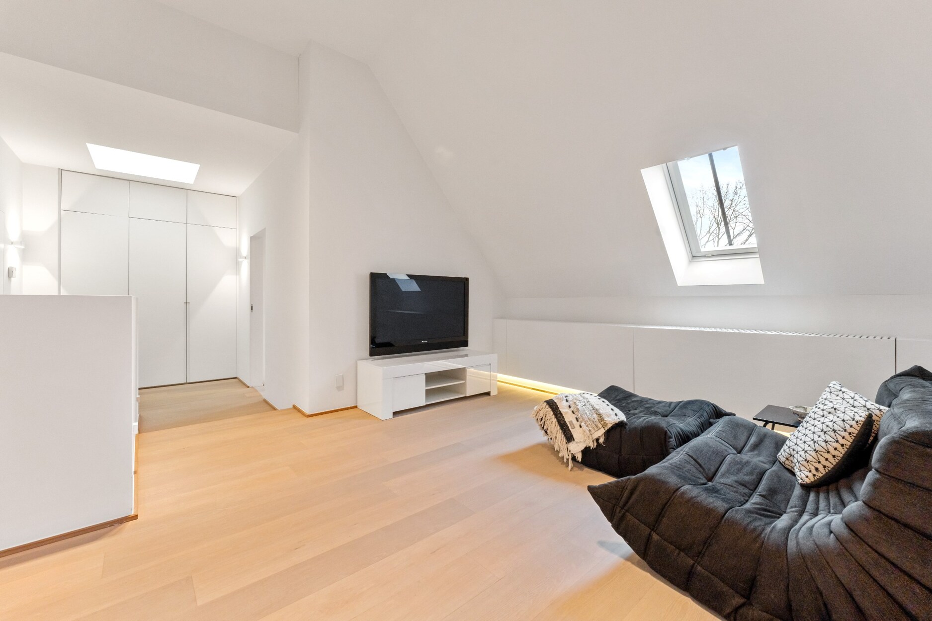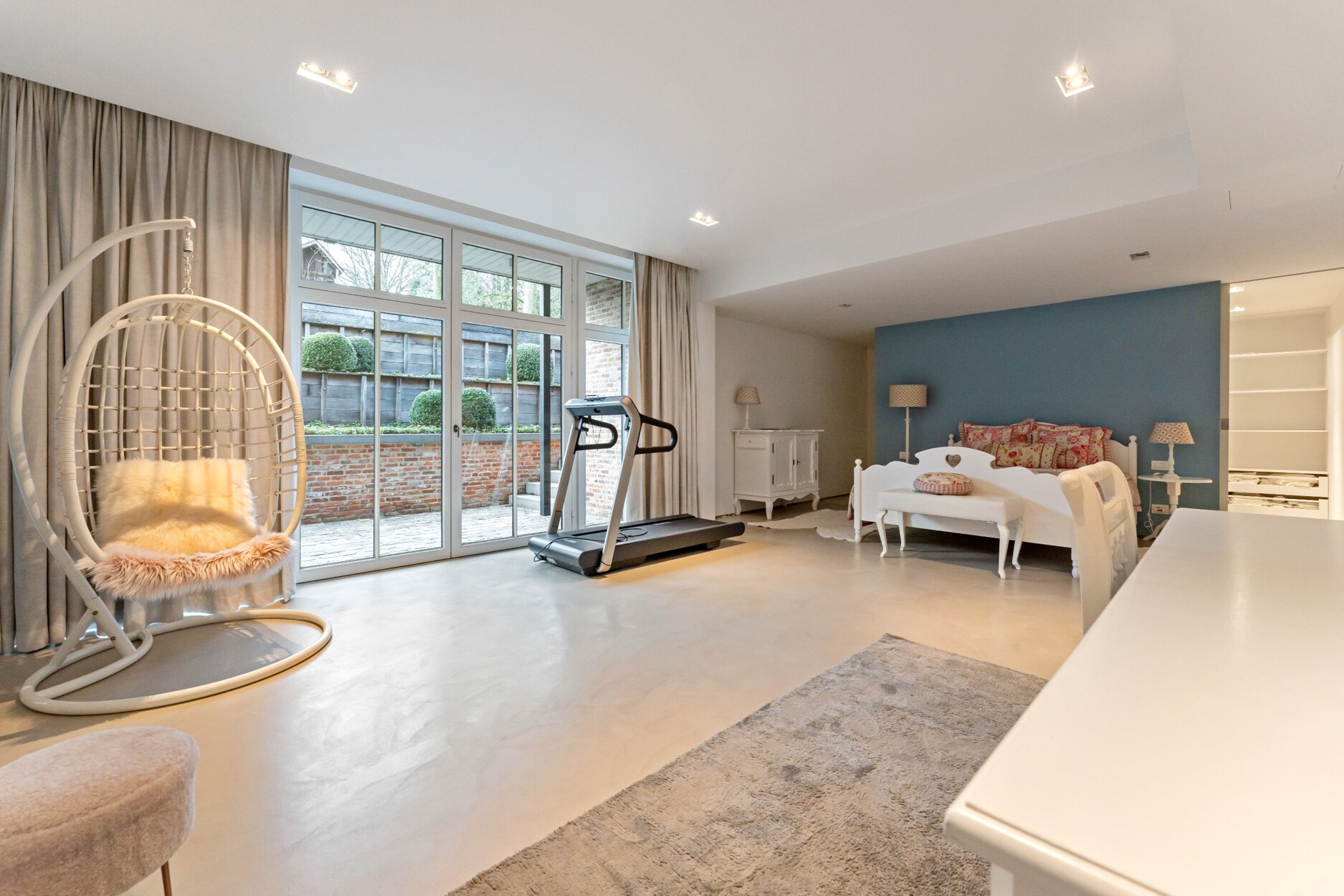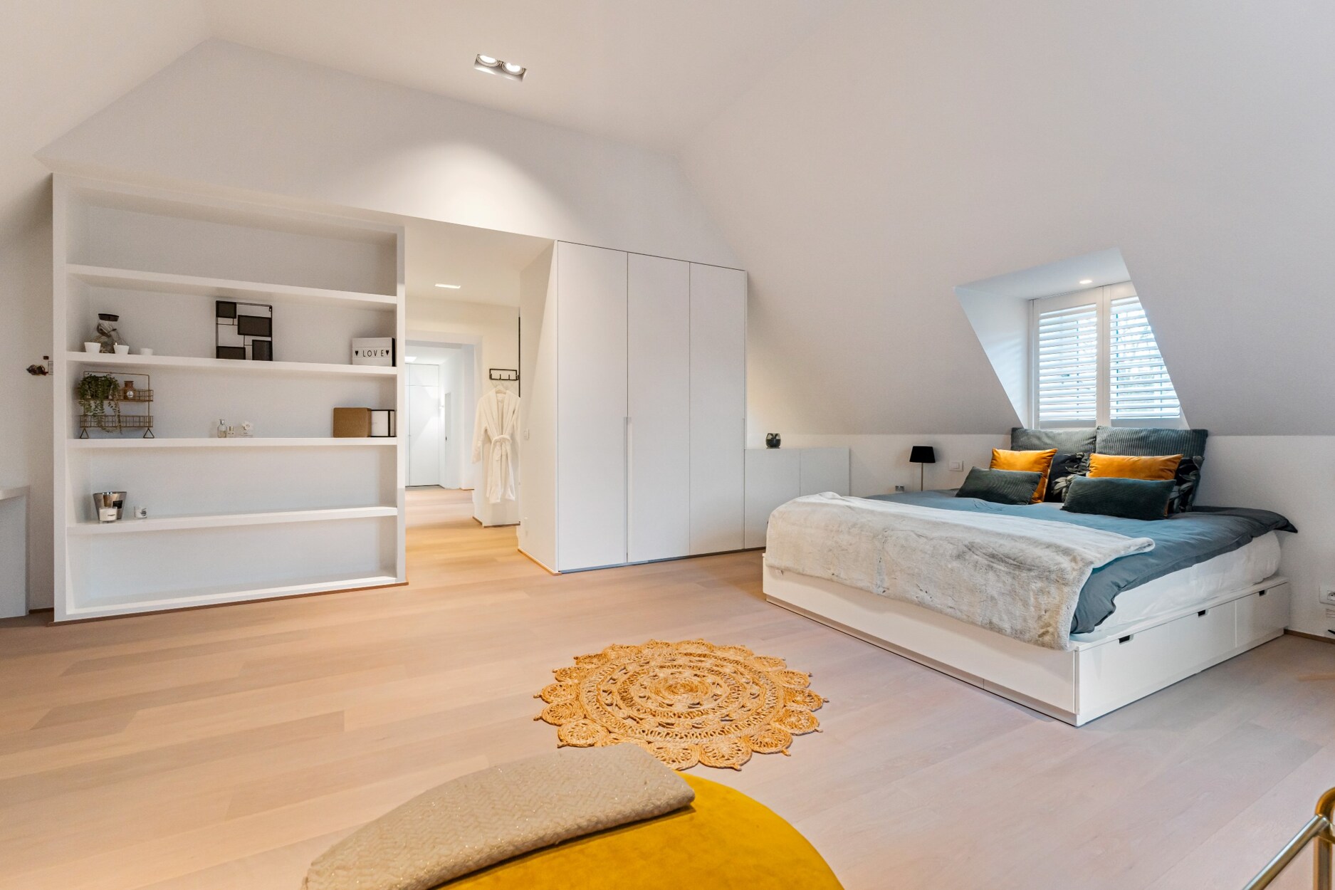 Aan de andere kant van deze verdieping treft u twee zeer ruime kinderkamers (30 m² - 55 m²), een luxe badkamer met ligbad, douche en twee lavabo's in meubel, een apart toilet op de nachthal en een ruime linnenkamer/wasplaats met ruimte voor 4 wasmachines/drogers en veel inbouwkasten.