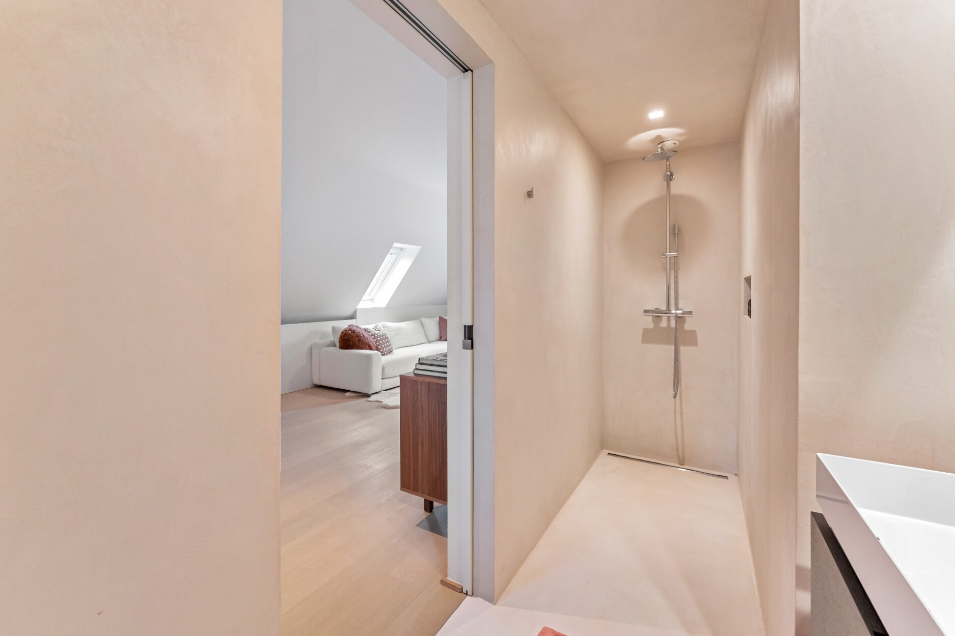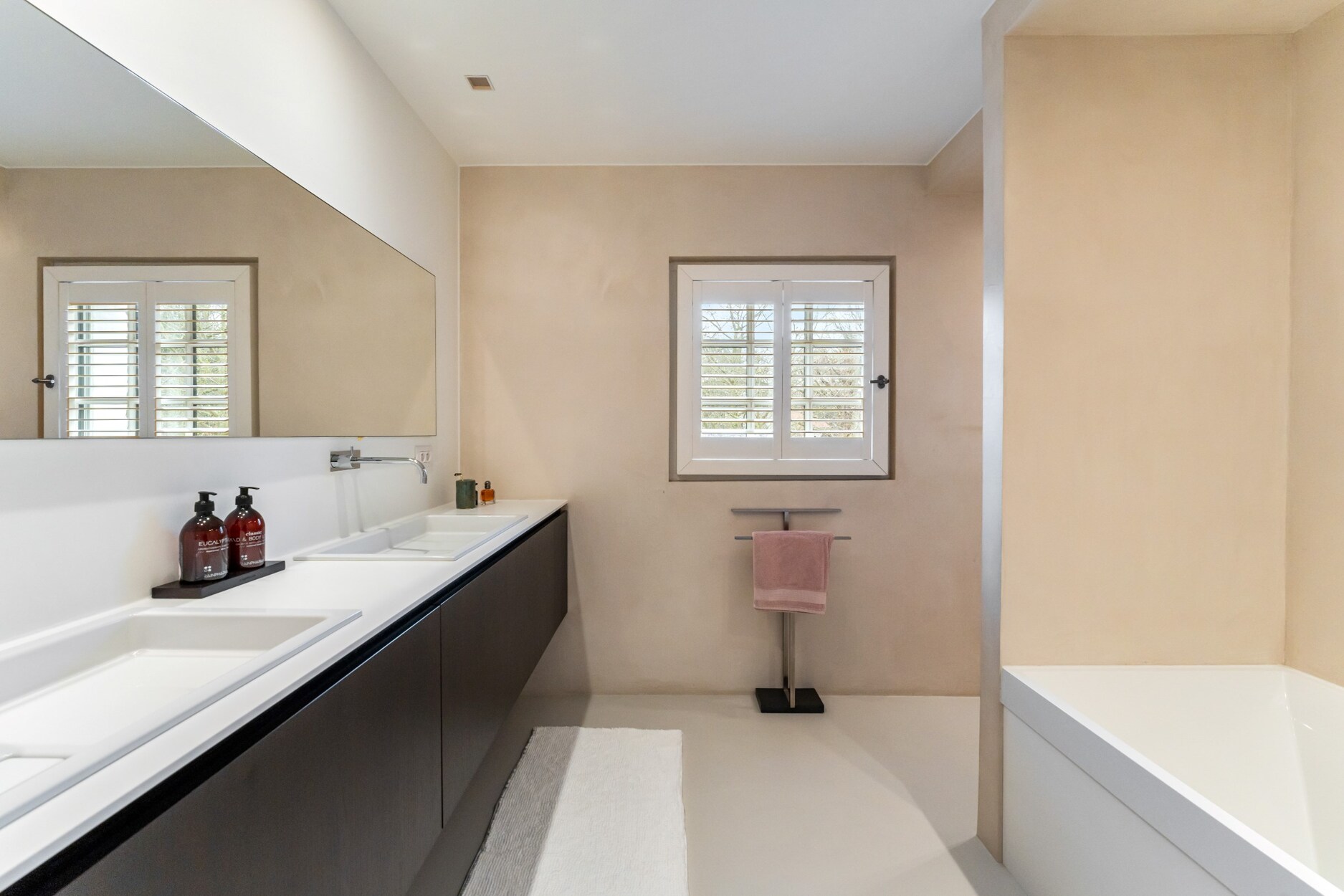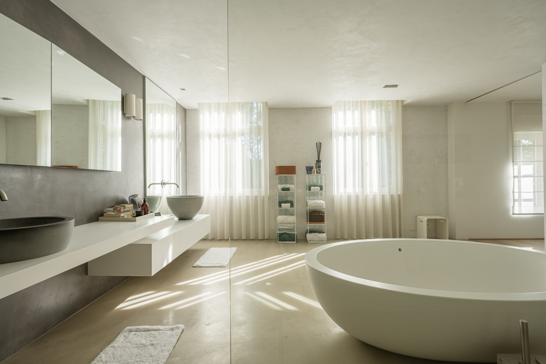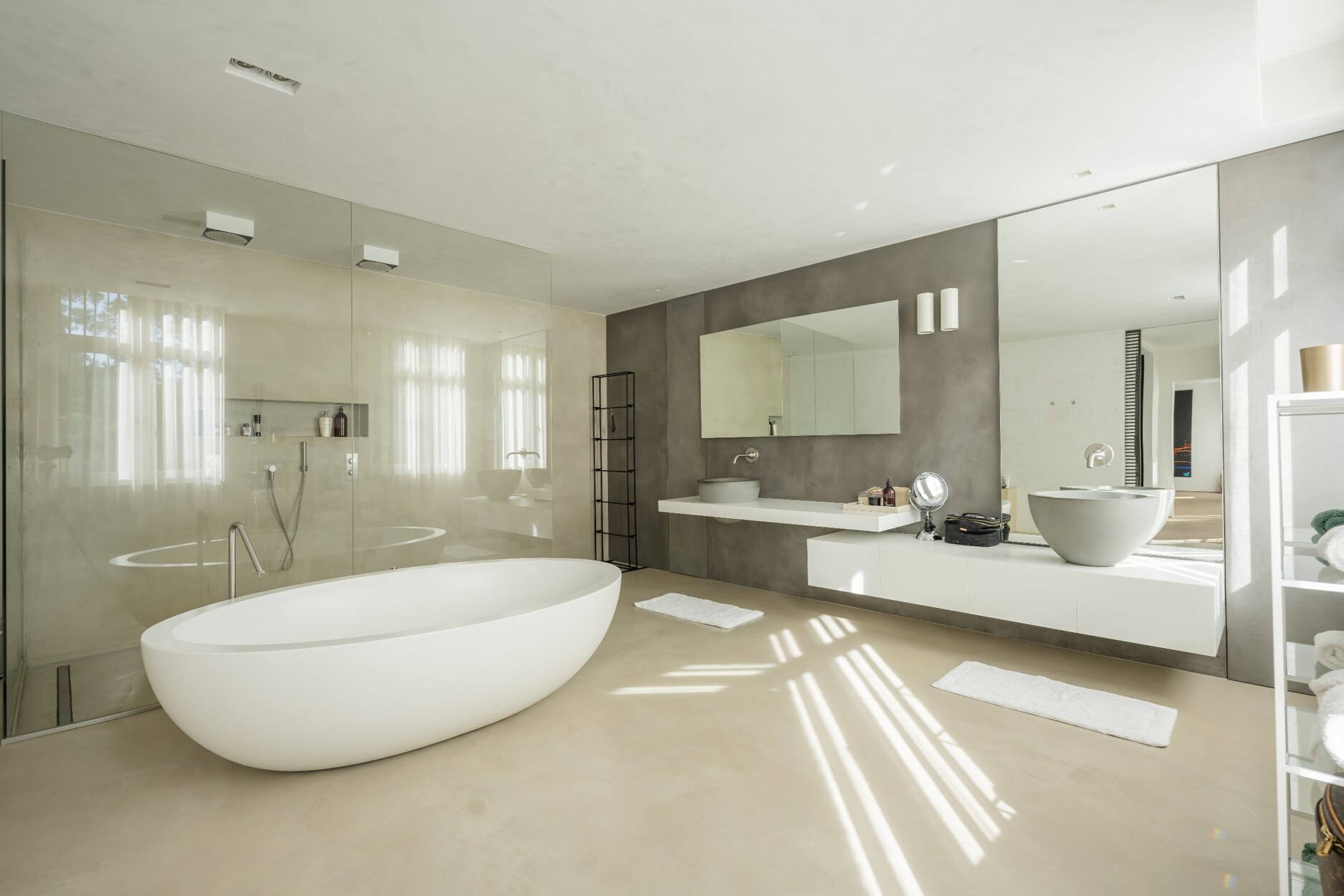 Aan de andere kant van deze verdieping treft u twee zeer ruime kinderkamers (30 m² - 55 m²), een luxe badkamer met ligbad, douche en twee lavabo's in meubel, een apart toilet op de nachthal en een ruime linnenkamer/wasplaats met ruimte voor 4 wasmachines/drogers en veel inbouwkasten.