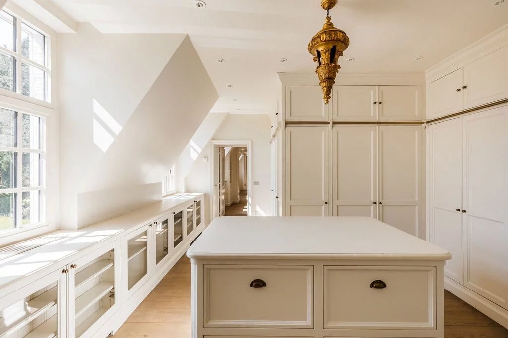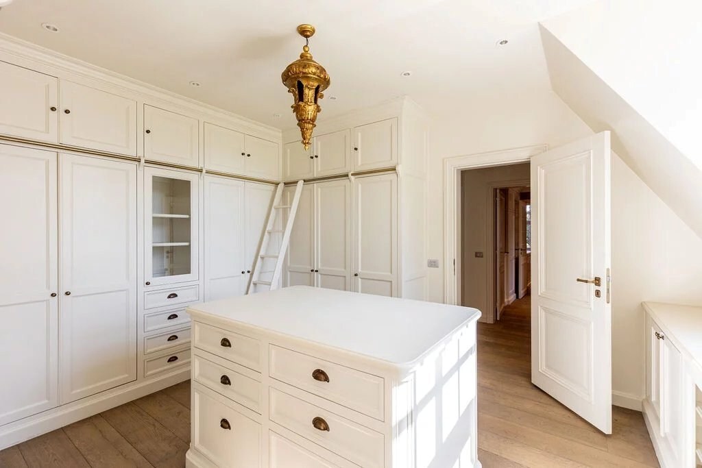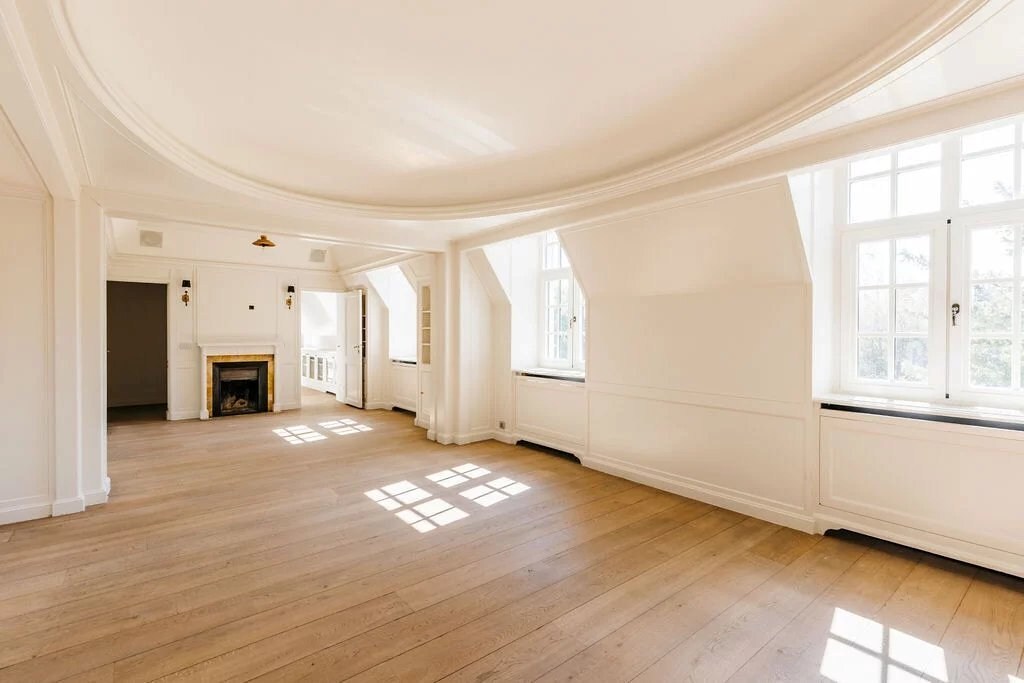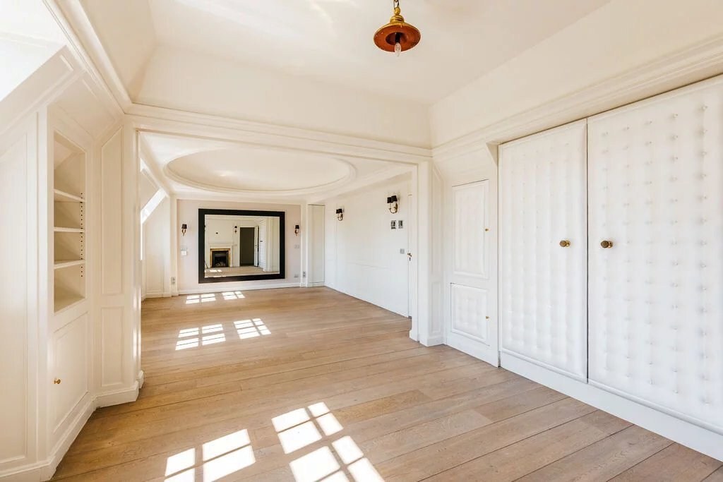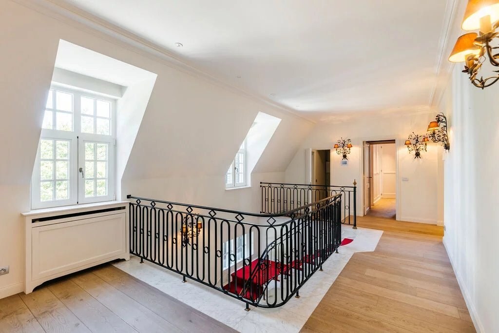 De eerste verdieping bestaat uit de nachthal, met een dienstappartement (woonkamer, keuken, 2 slaapkamers en een badkamer), een master slaapkamer met dressing, badkamer met bad, douche en toilet, een tweede kindersuite met dressing, badkamer en aangrenzende kamer voor de nanny.