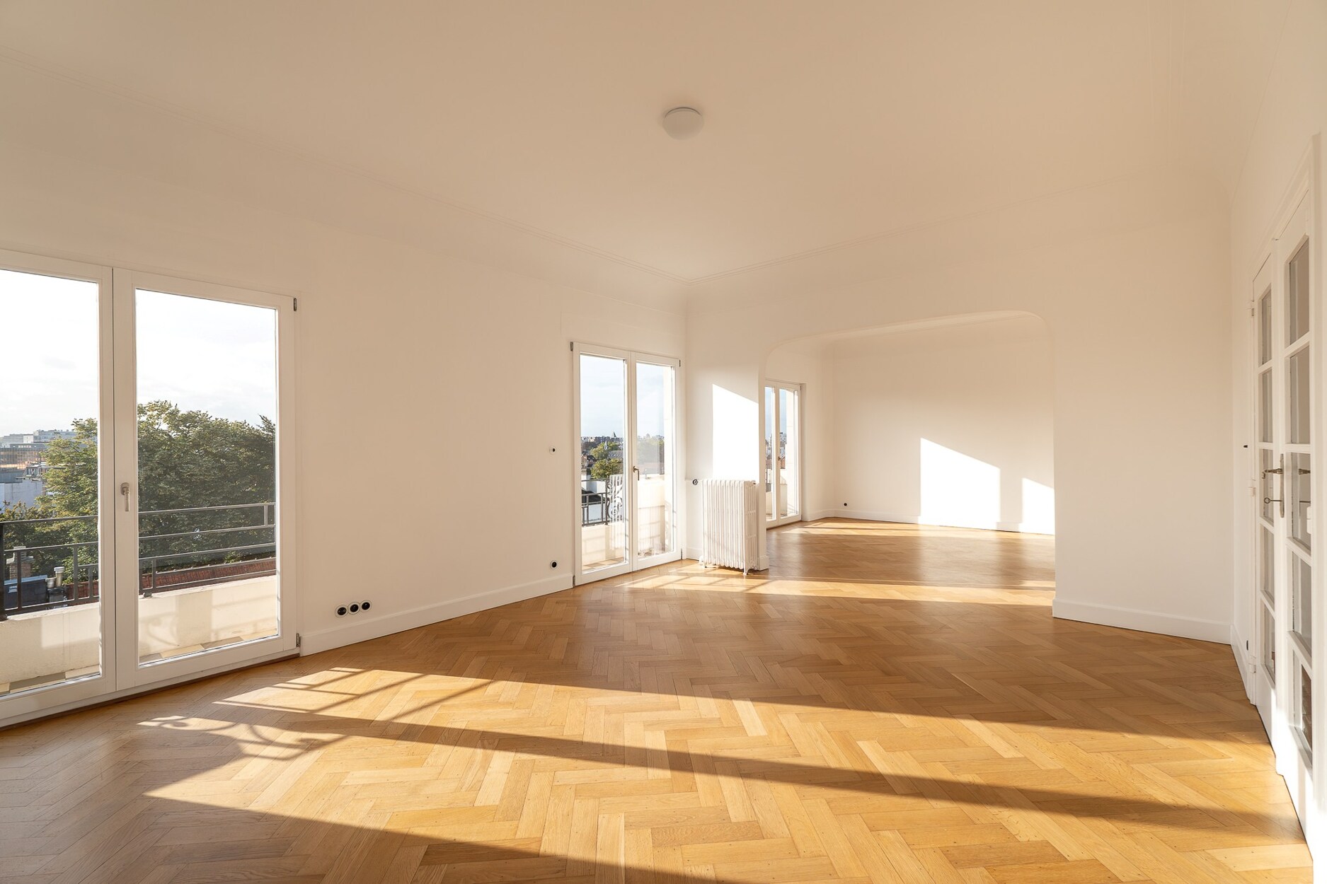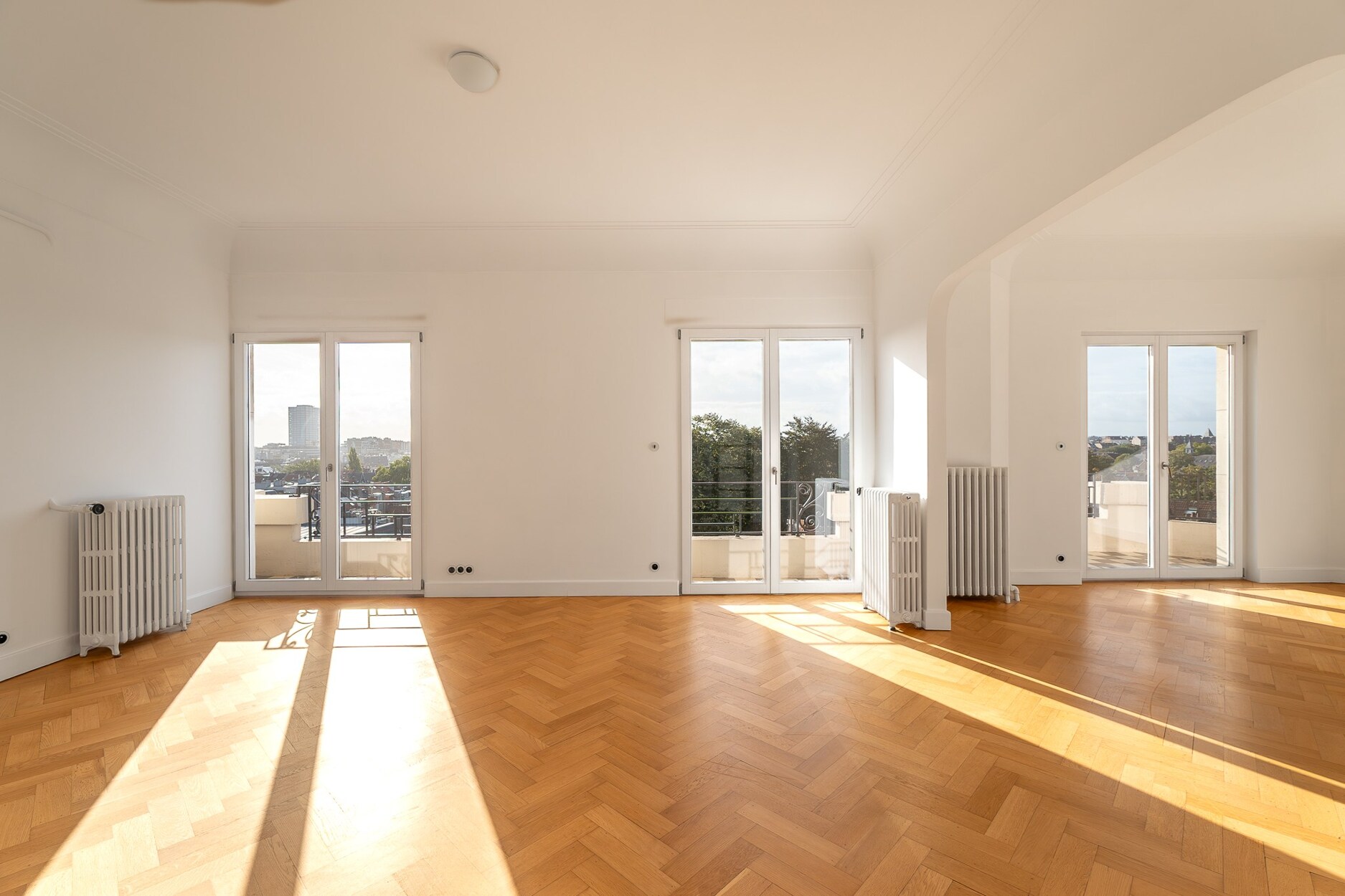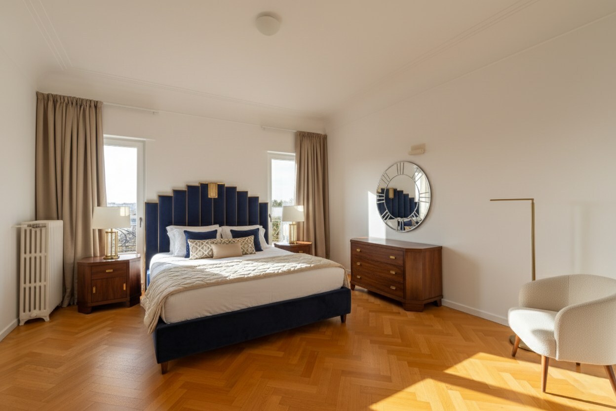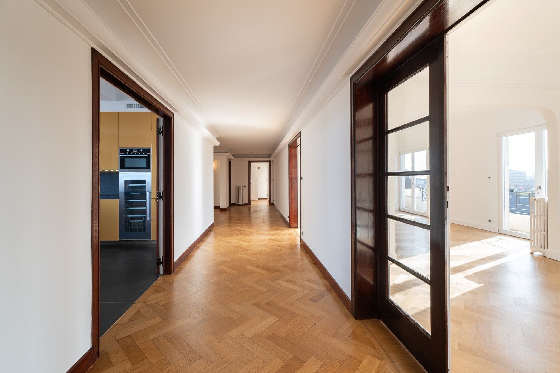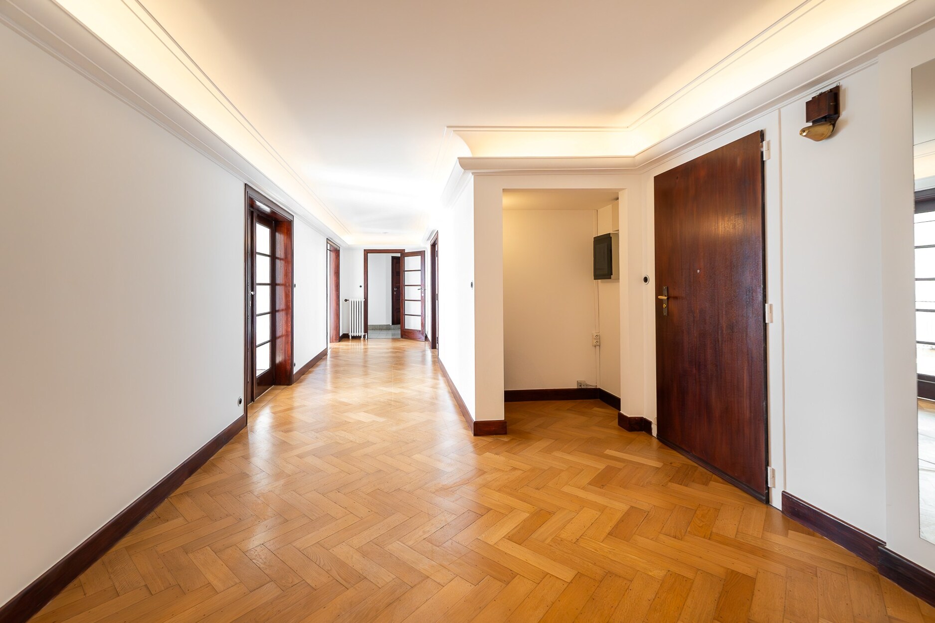 Gelegen op de 7e verdieping van een Art Deco-gebouw uit 1933, ontworpen door Camille Damman, biedt dit karaktervolle appartement een oppervlakte van ± 286 m². Het beschikt over 5 slaapkamers, 3 badkamers en twee dienstkamers.