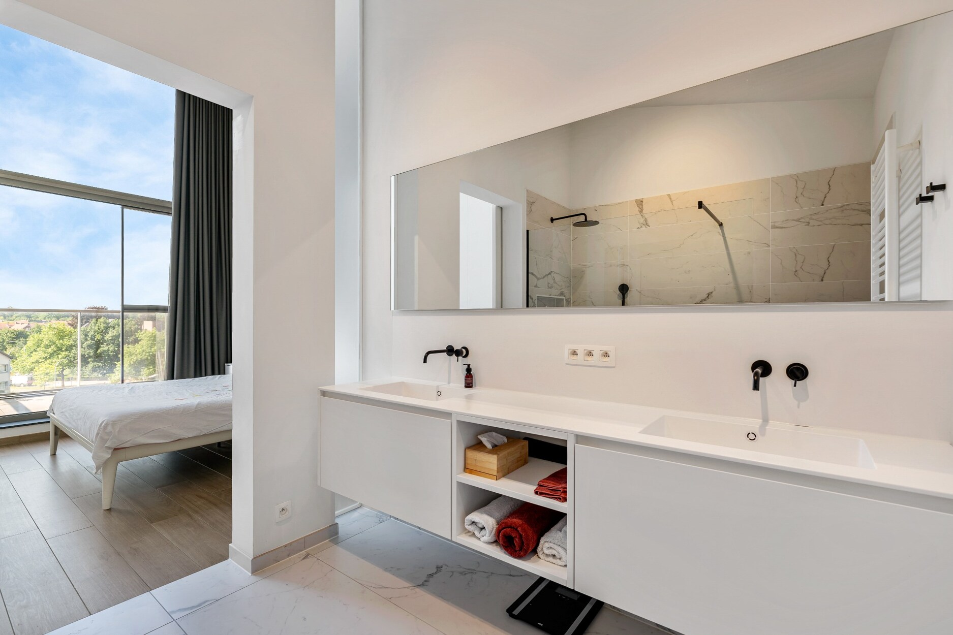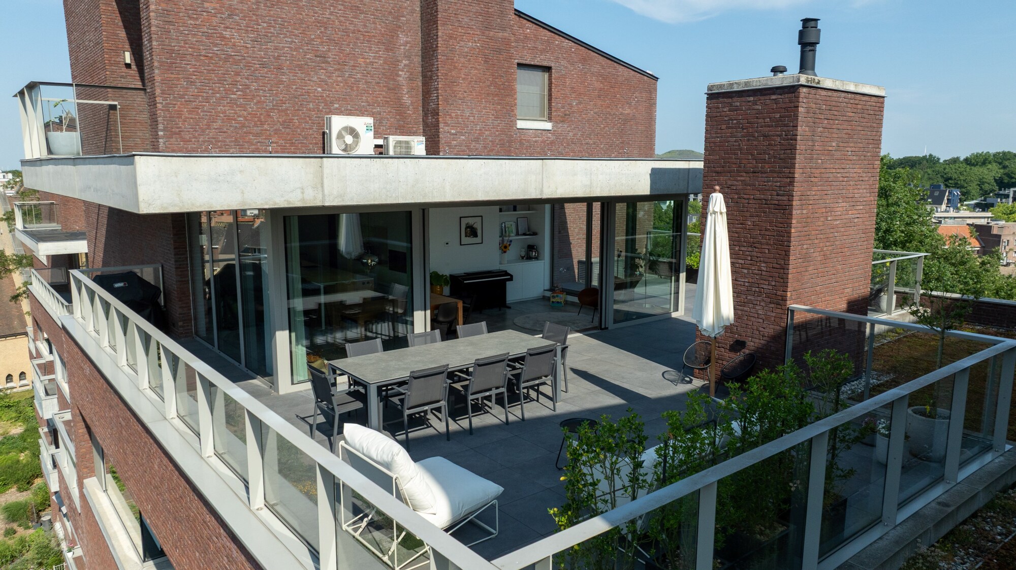 Instapklaar luxe duplex-appartement- penthouse met +-93m² terras en +-191m² woonbeleving gelegen in Genk centrum.