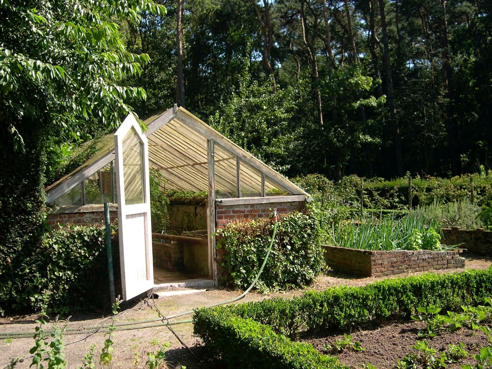 Moestuin met serre voor bloemen, groenten en fruit