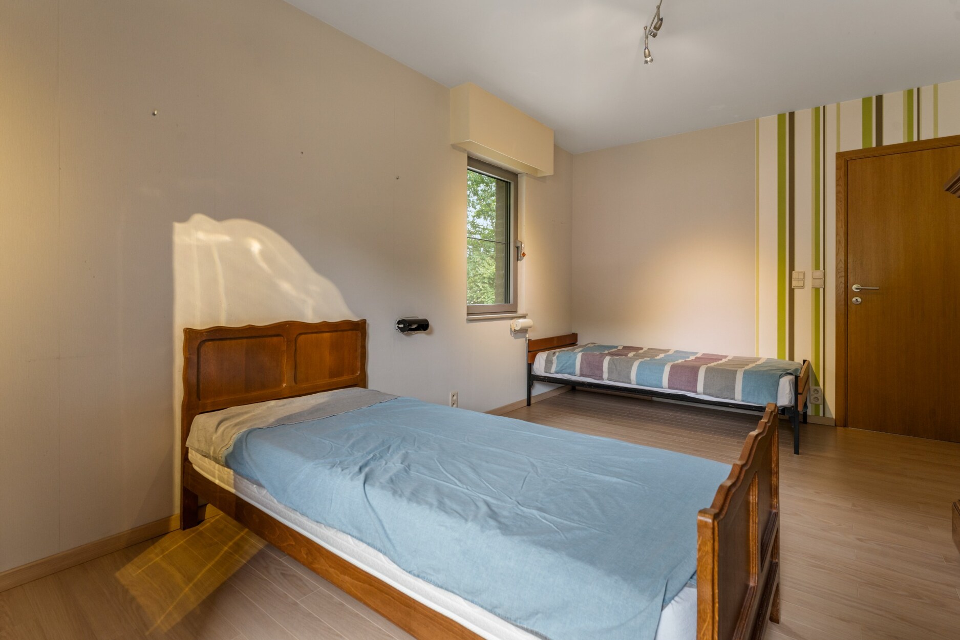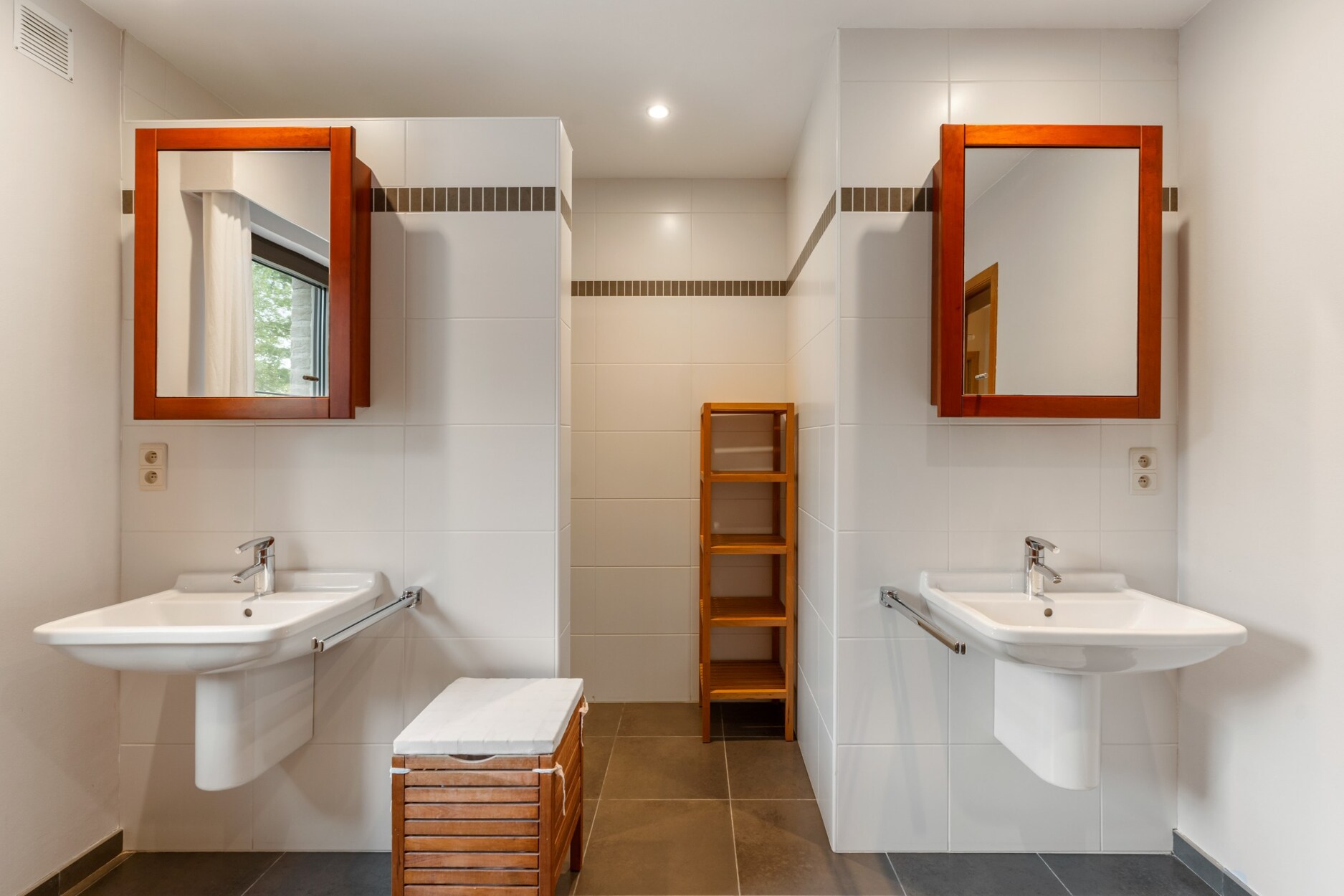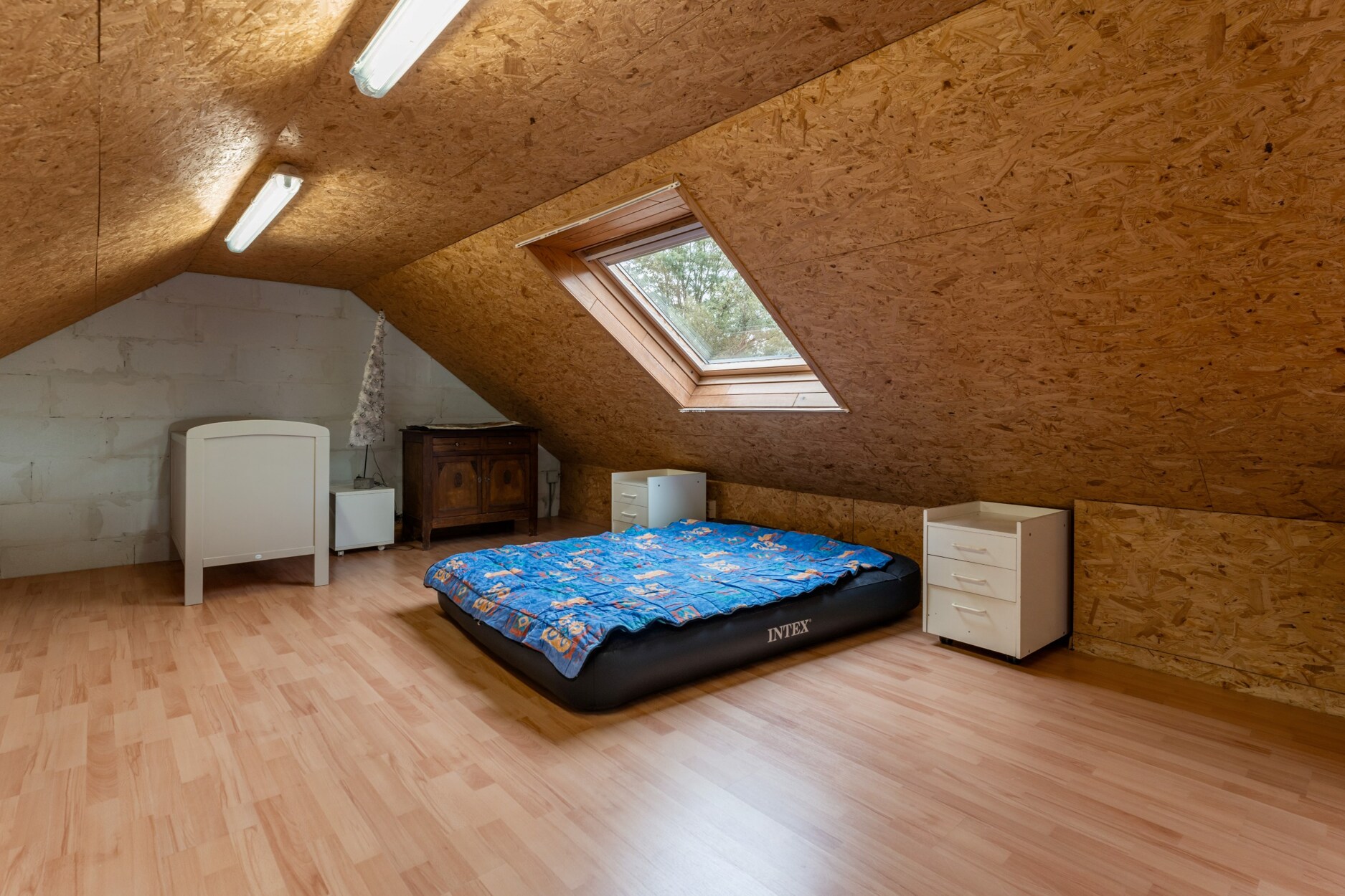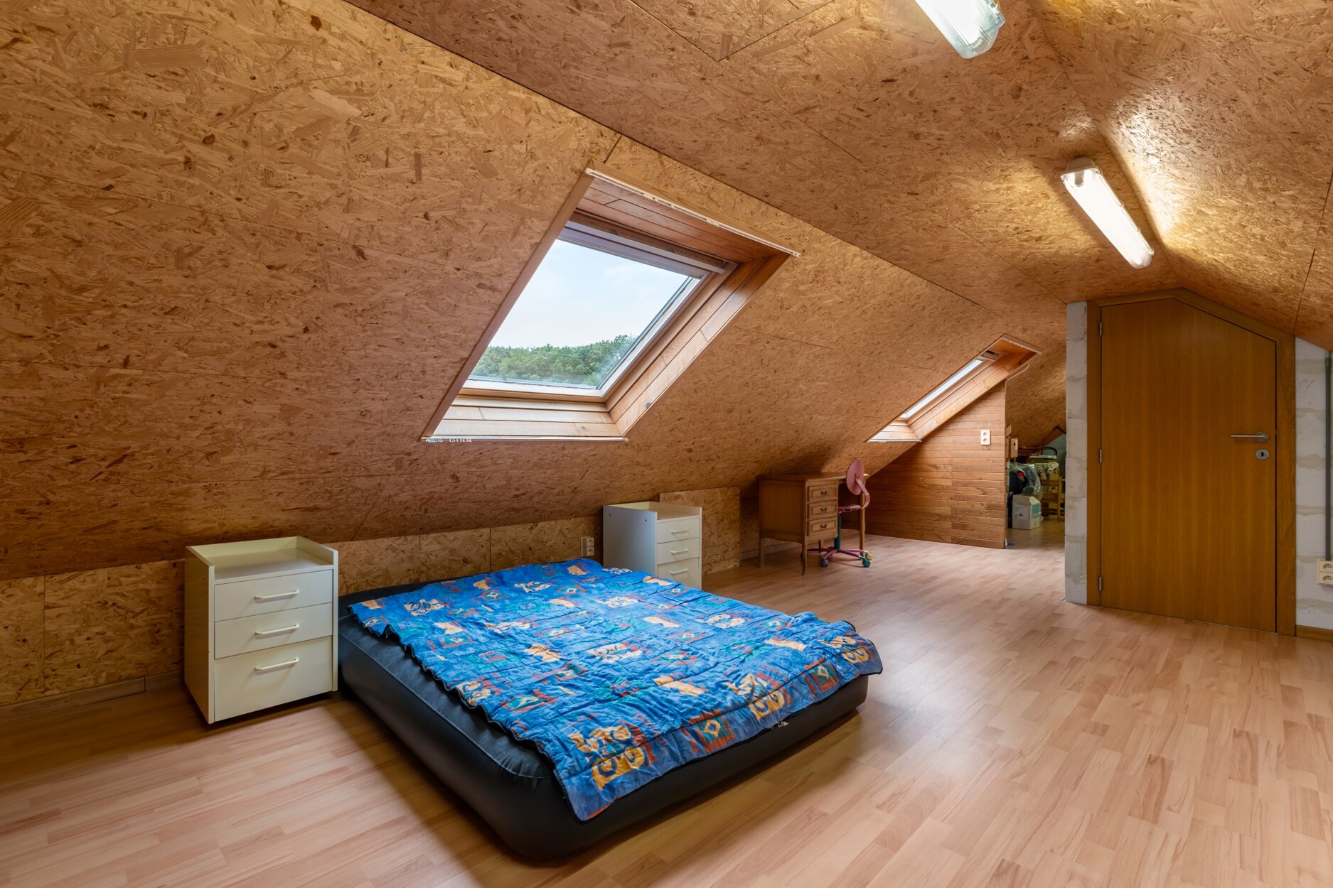 De trap biedt vanuit de inkomhal toegang tot de bovenverdieping. Hier treft u 4 ruime slaapkamers. Een badkamer voorzien van inloopdouche en dubbele lavabo. Verder nog een apart toilet op de nachthal. De zolder is te bereiken via een vaste trap. Deze ruimte kan multifunctioneel ingezet worden o.a. extra slaapkamer, bureau, speelruimte, hobbykamer…