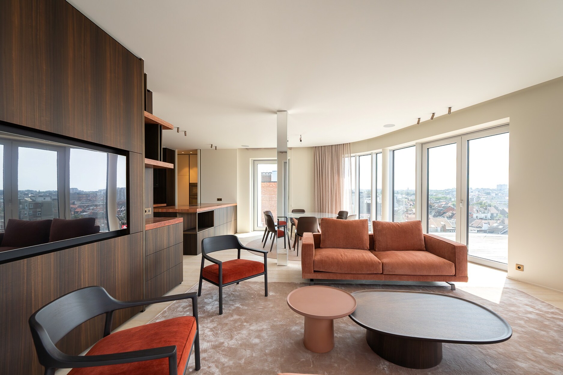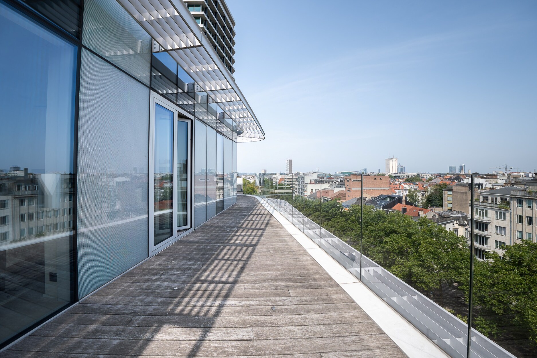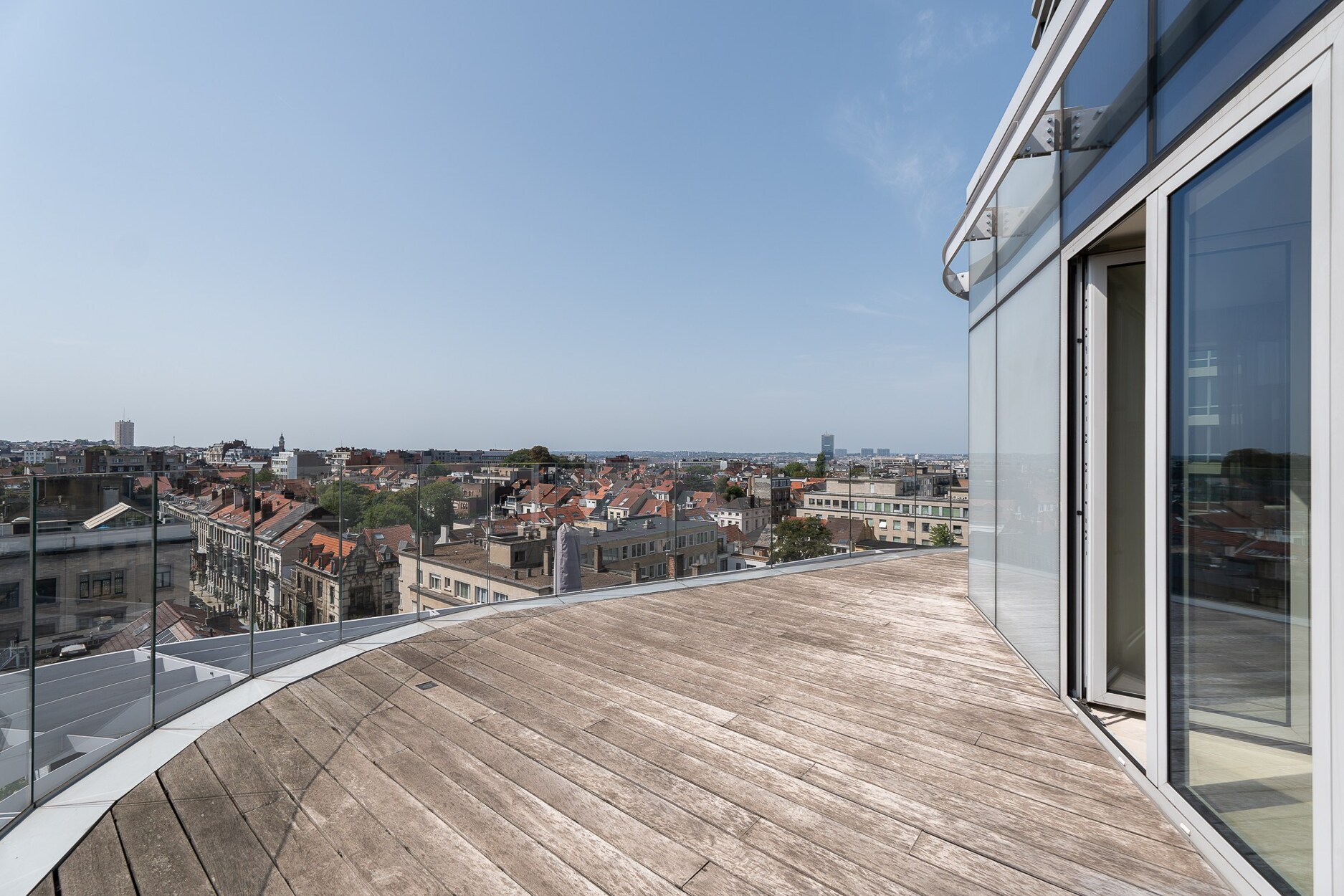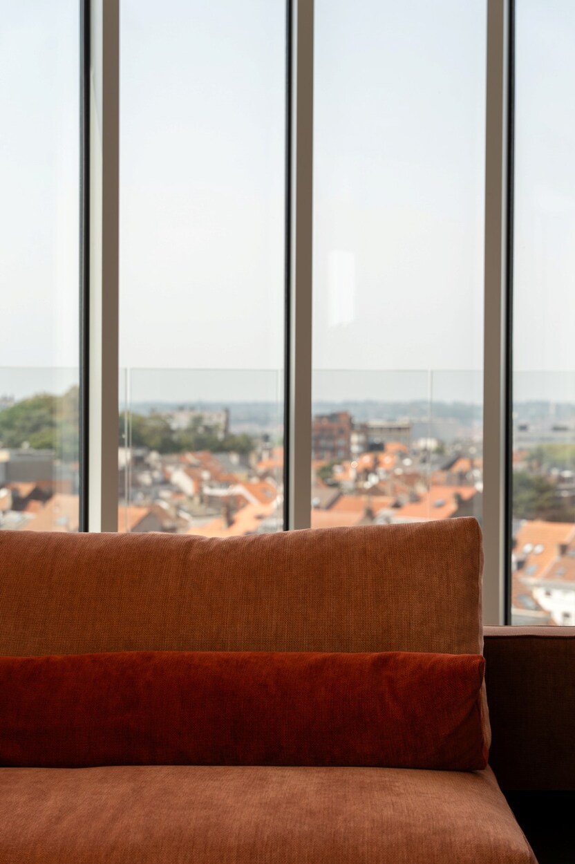 De elegante inkomhal leidt naar een lichtrijke leefruimte met grote raampartijen die toegang geven tot het terras met open zicht over Brussel. De open keuken, afgewerkt met hoogwaardige materialen, sluit naadloos aan bij de leefruimte. Het nachtgedeelte omvat een master suite met eigen douchekamer, twee bijkomende slaapkamers en een aparte badkamer. De afwerking getuigt van verfijning: ingewerkte schrijnwerken, natuurlijke parketvloeren en volledige domotica.