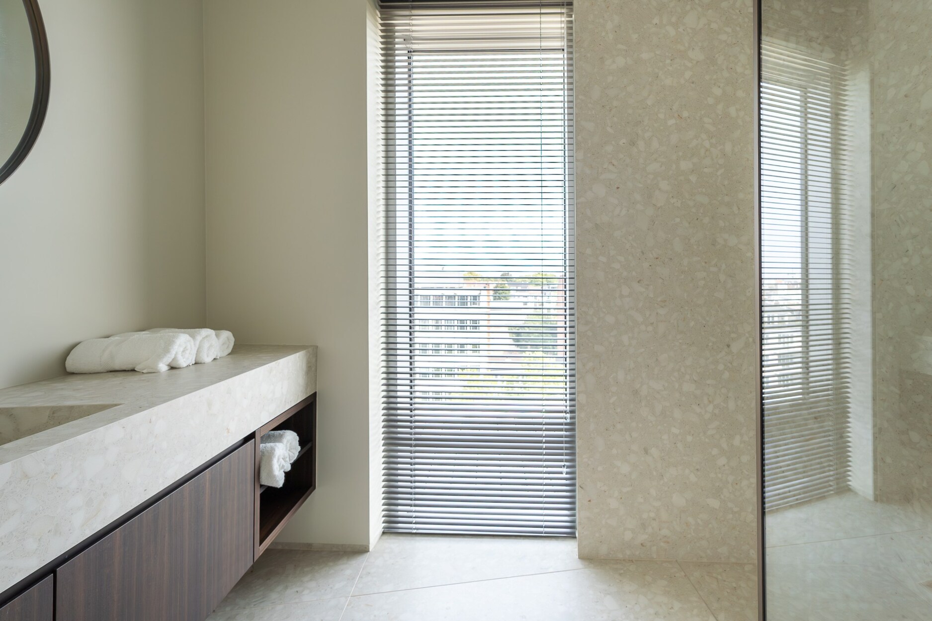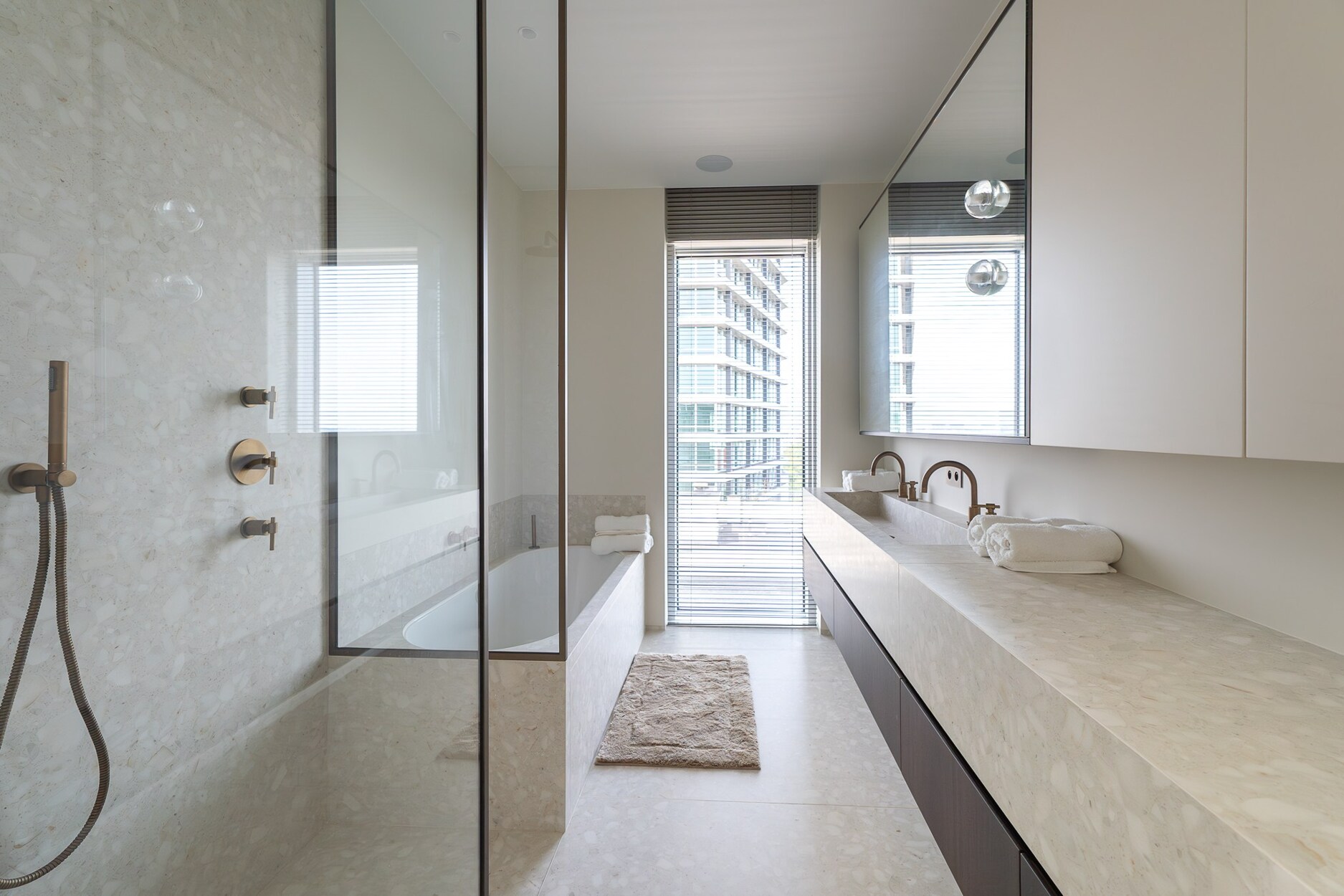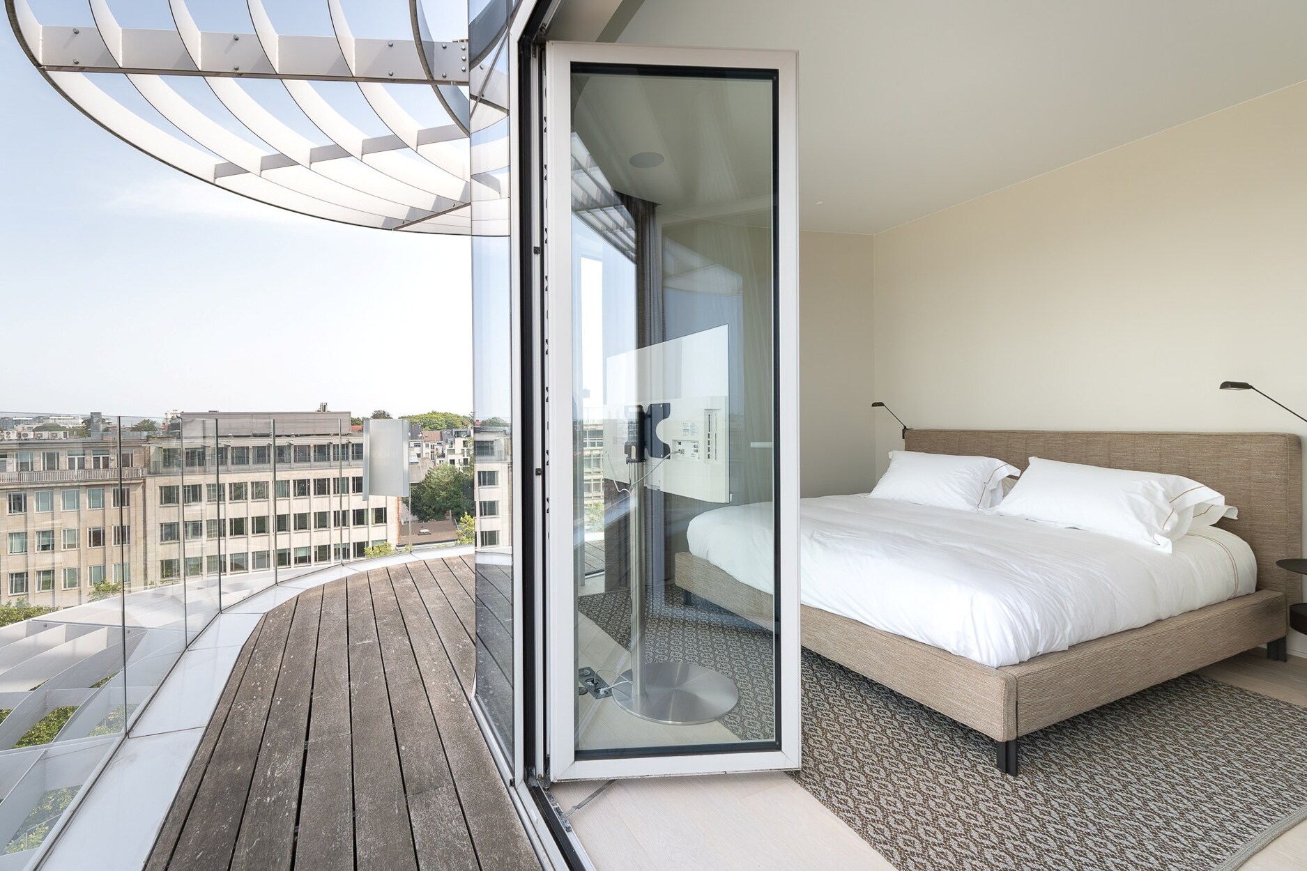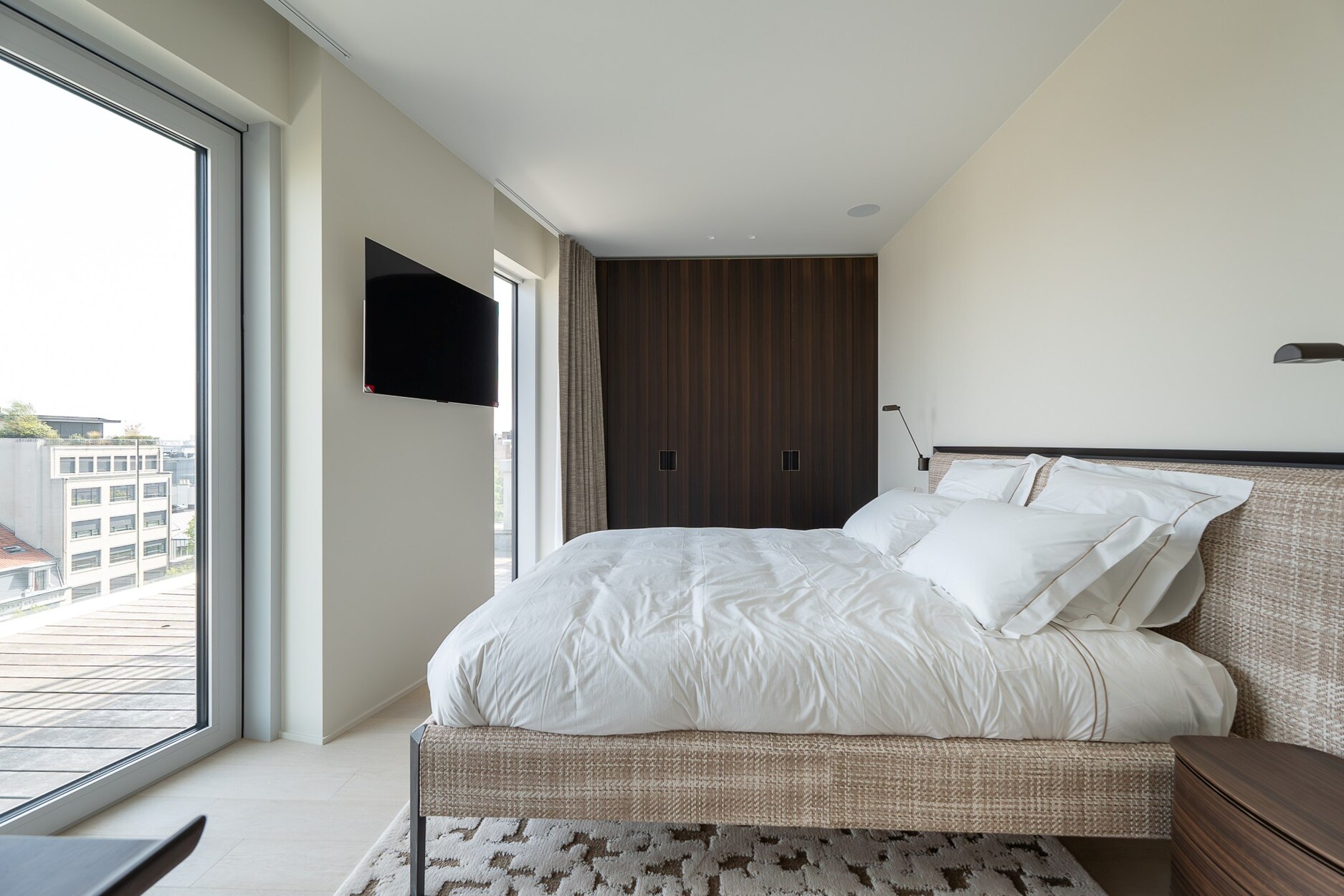De elegante inkomhal leidt naar een lichtrijke leefruimte met grote raampartijen die toegang geven tot het terras met open zicht over Brussel. De open keuken, afgewerkt met hoogwaardige materialen, sluit naadloos aan bij de leefruimte. Het nachtgedeelte omvat een master suite met eigen douchekamer, twee bijkomende slaapkamers en een aparte badkamer. De afwerking getuigt van verfijning: ingewerkte schrijnwerken, natuurlijke parketvloeren en volledige domotica.