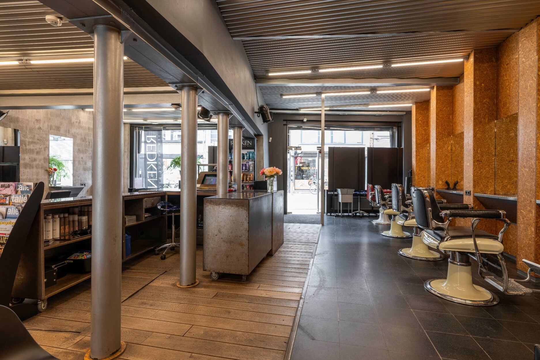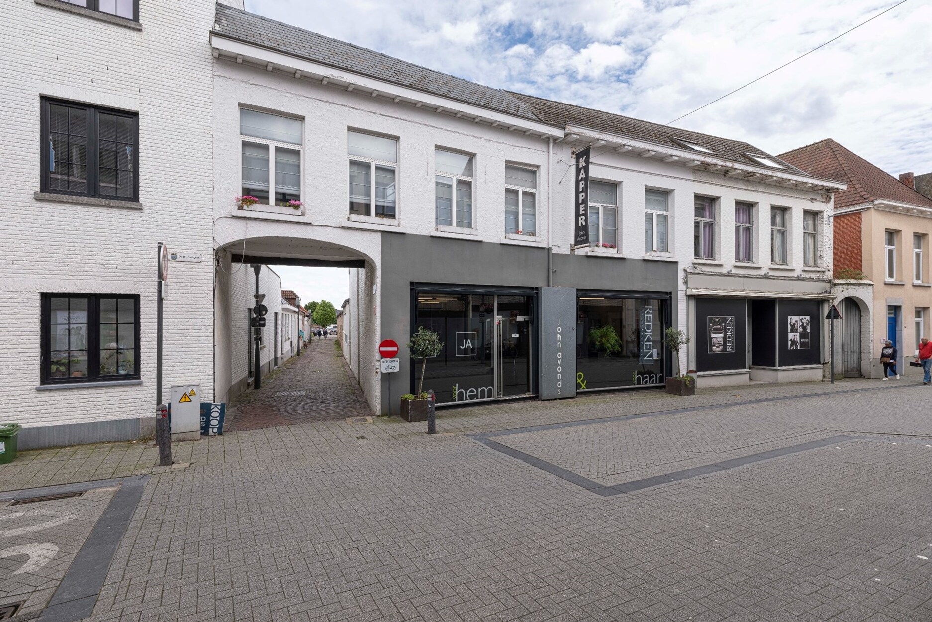 Dit pand doet momenteel dienst als een kapsalon maar biedt ook tal van andere mogelijkheden. De commerciële ruimte heeft een totale oppervlakte van ca 180 m² en beschikt over een alarmsysteem. Vooraan een ruime open ruimte en achteraan apart kantoor, kitchenette met achteringang, toiletten en bergruimte. Tevens binnenkoer met buitenberging. Inkom voor klanten is vooraan gelegen, personeelsingang of ingang naar het appartement toe is te bereiken via een zijdeur.