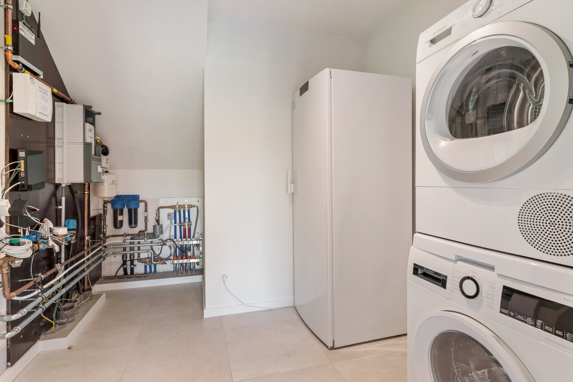 Luxueus afgewerkte BEN-woning (E-peil 6) met 3 slaapkamers op 520m². Deze prachtige half-open bebouwing werd gebouwd in het pittoreske Scherpenheuvel en voldoet aan de energetische eisen waaronder een schitterende EPC-score van 9 kwh/m² -jaar(A label) vloerverwarming, zonnepanelen, hoge rendementsbeglazing en een logische - goede indeling van de woning met aandacht voor een optimale lichtinval en maximaal ruimtegevoel. De woning omvat een ruime inkomhal met gastentoilet. Via een stalen-glazen deur bereiken we de lumineuze ruime woon-leefkamer met aansluitende open keuken. De praktische berging/wasruimte bevindt zich langs de compleet uitgeruste keuken. De eerste verdieping omvat 2 ruime slaapkamers waaronder de extra ruime masterbedroom. Ook de badkamer is compleet uitgerust met dubbel wastafel, bad en inloopdouche. Een apart toilet is terug te vinden in diezelfde hal. Er is nog een aparte ruimte met een grote prachtig op maat gemaakte dressing. Via deze ruimte is er een doorgang naar de bovenste verdieping die volledig is afgewerkt en voorzien is van de nodig op maat gemaakte kasten. Hier kan indien gewenst een extra badkamer gecreëerd kan worden. Om het helemaal compleet te maken is de tuin volledig omheind en vooraan afgesloten met een mooie dubbele elektrische poort. Achter de woning is een groot terras voorzien bereikbaar via de leefruimte en keuken-achterdeur. Achteraan in de tuin is de houten praktische tuinberging, makkelijk te bereiken via de dubbele automatische poort vooraan. Voor de woning kunnen vlot 2 à 3 wagens geparkeerd worden. Kortom voor wie op zoek is naar een energetische, instapklare en hedendaagse woning op een goede locatie kan best hier zijn/haar zoektocht stoppen.