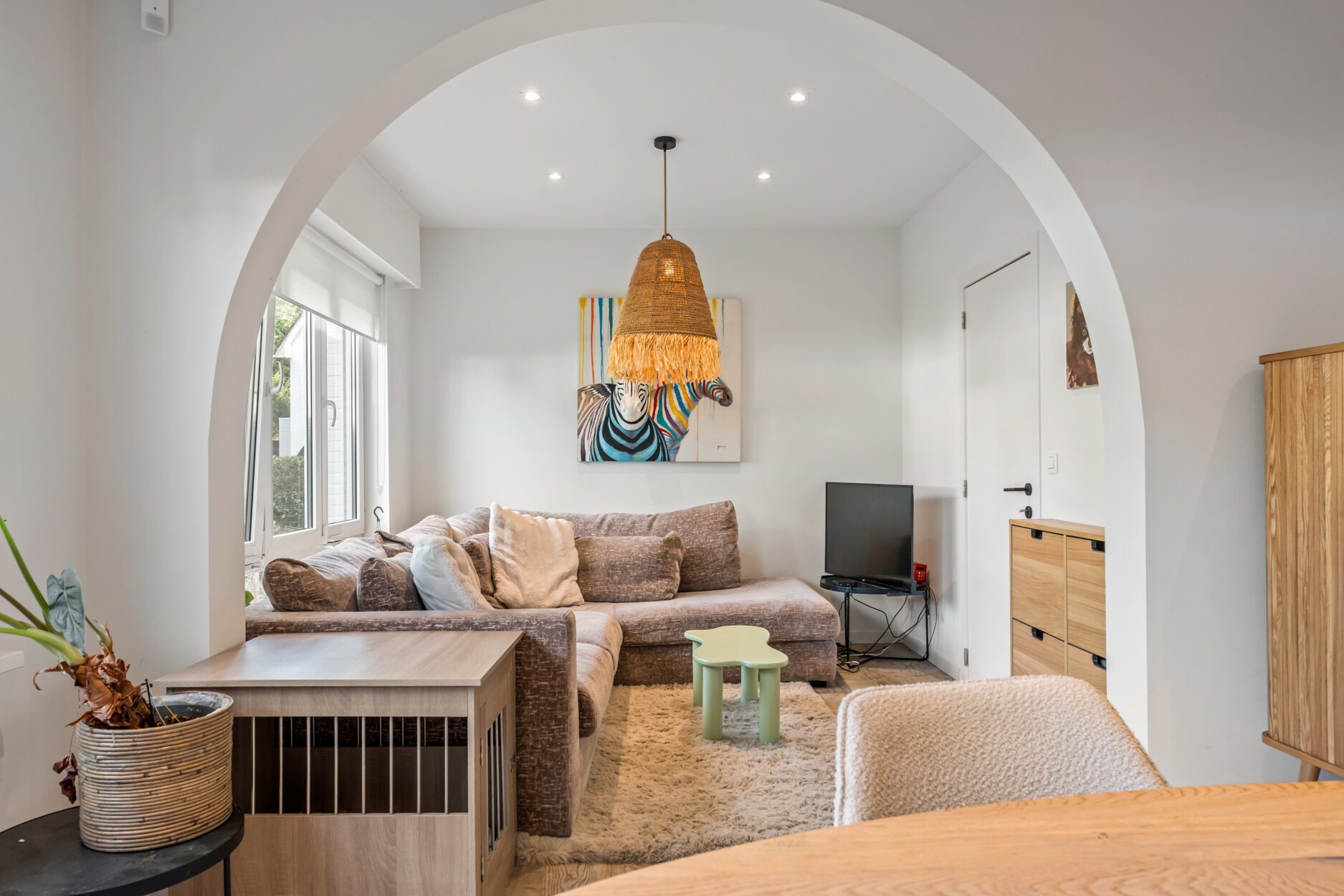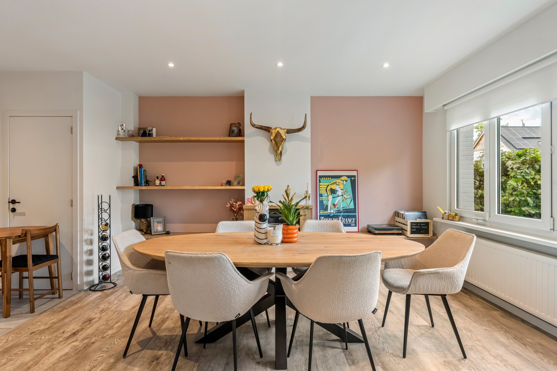 In een rustige straat op een perceel van 400 m², staat deze recent volledig gerenoveerde halfopen woning met een bewoonbare oppervlakte van 141 m². Dankzij de doordachte indeling en het gebruik van hoogwaardige materialen combineert deze woning moderne luxe met een warme huiselijke sfeer.