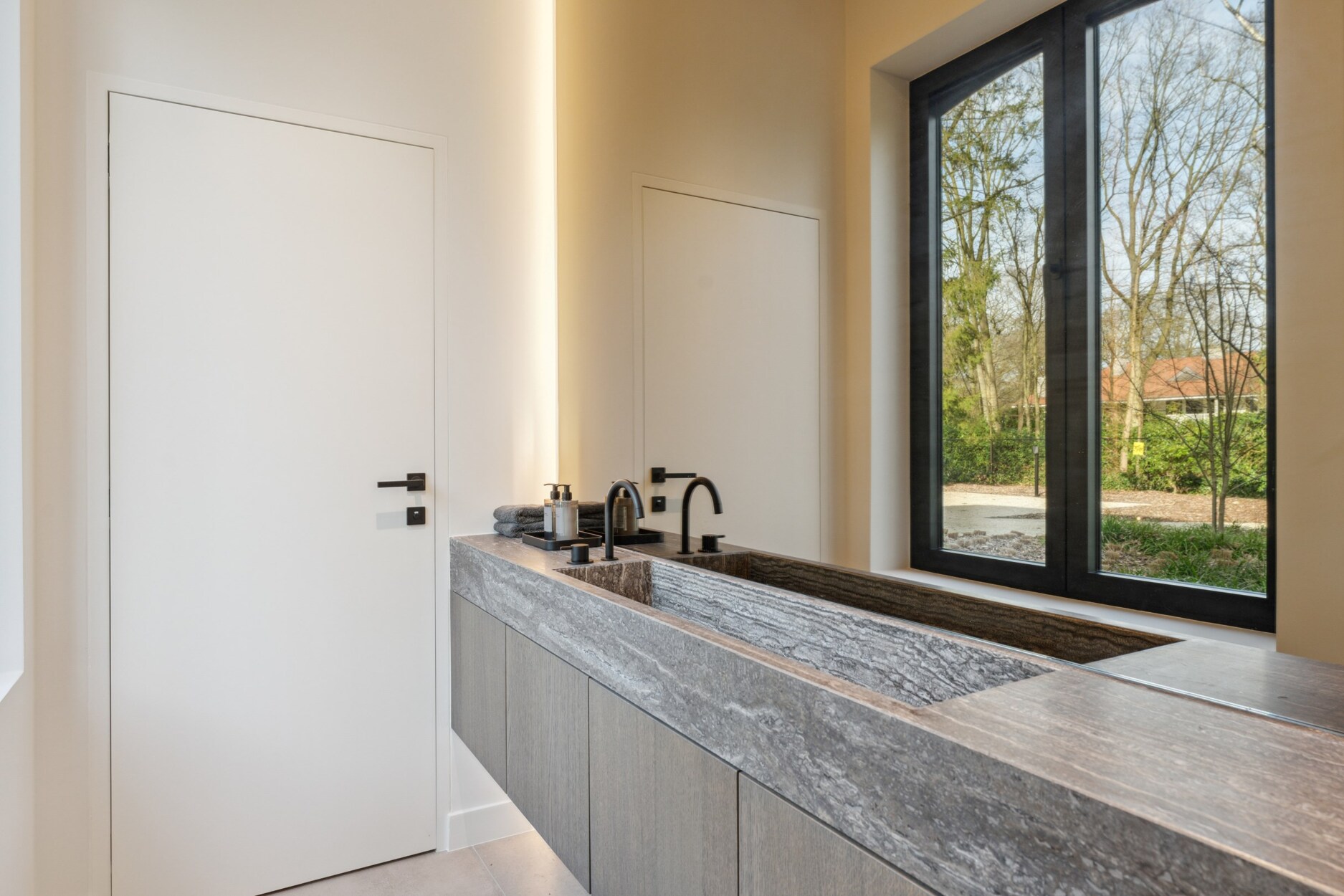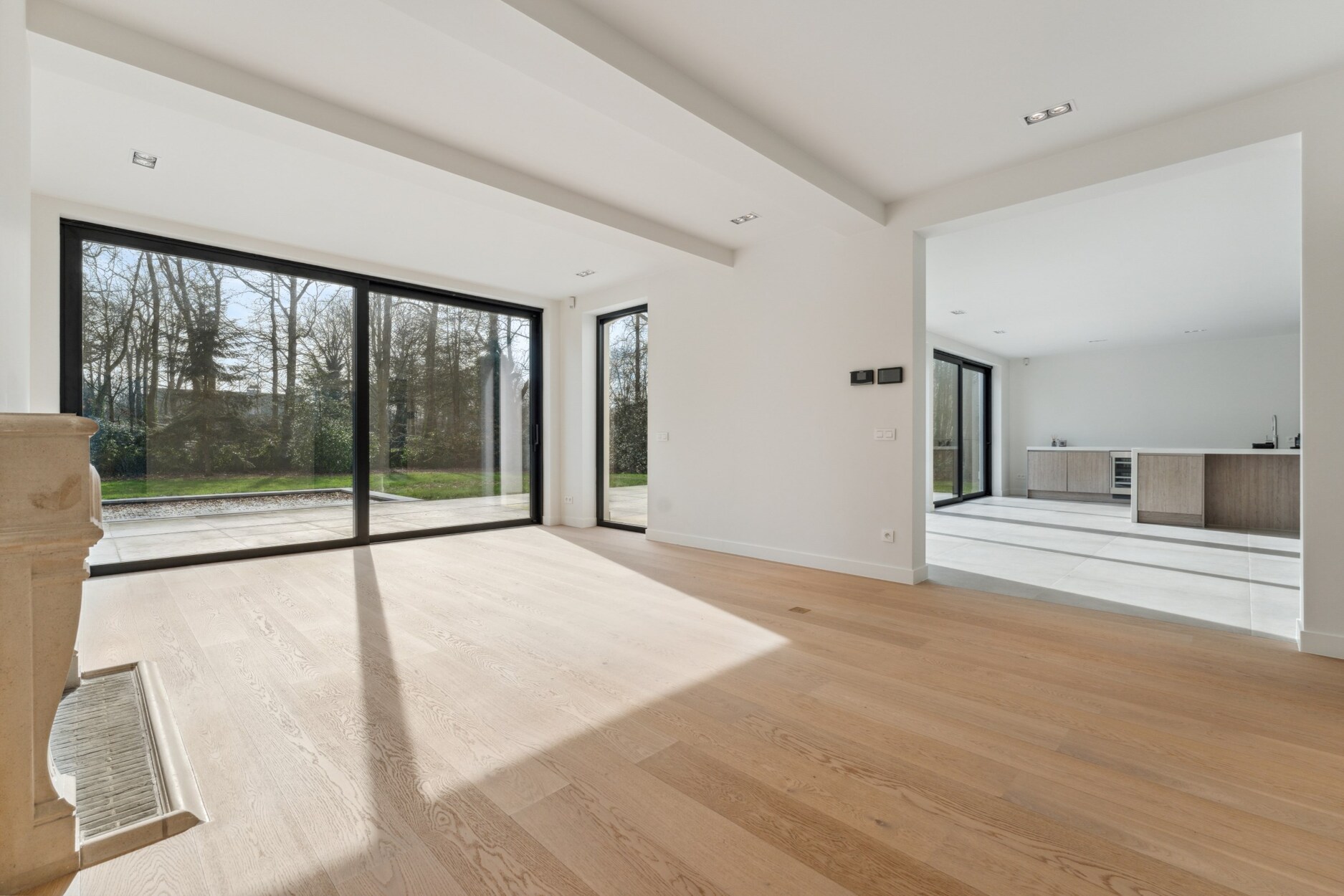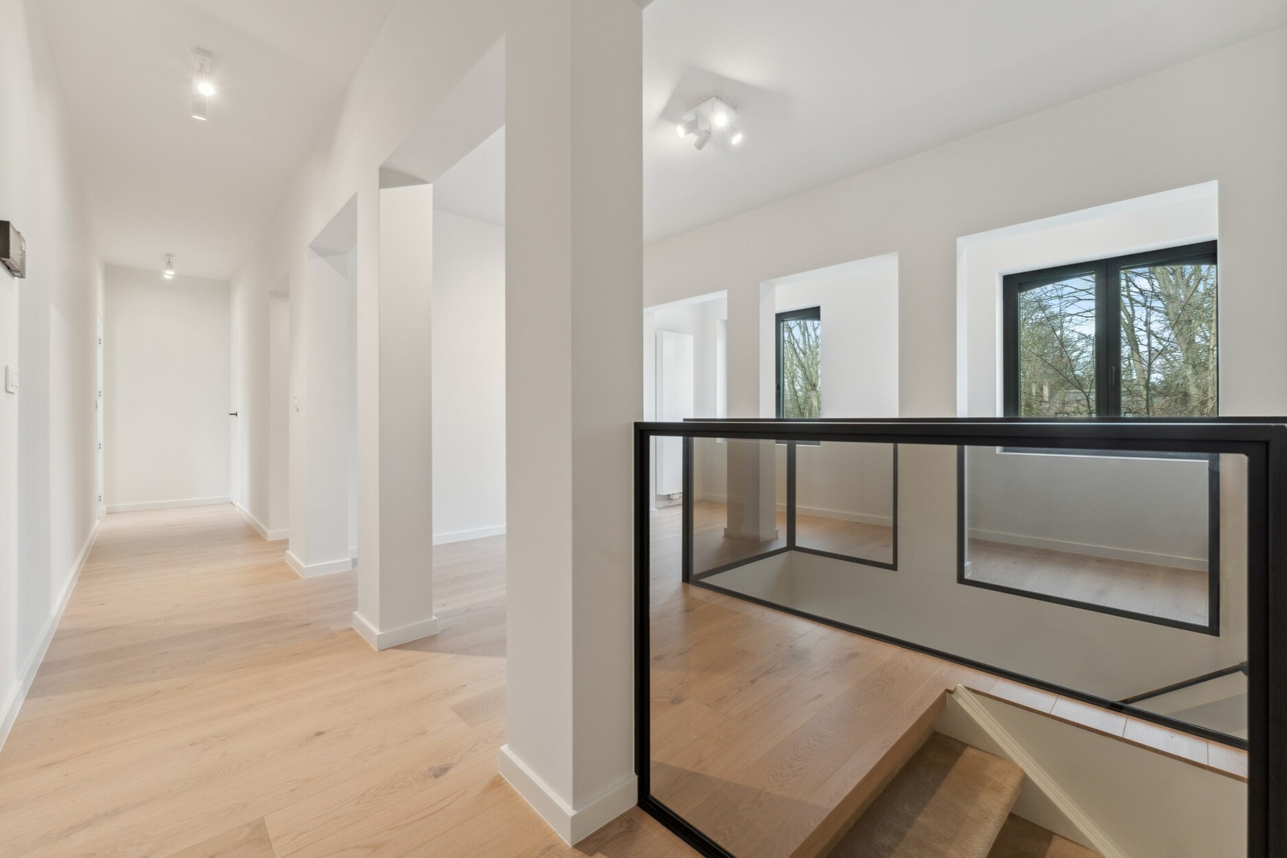 Ca. 600m² bewoonbare oppervlakte: 5 ruime slaapkamers met veel lichtinval, 4 stijlvol afgewerkte badkamers, w.o. een master suite met balkon, dressing en luxe badkamer, zeer royale woonkeuken voorzien van Miele en Gaggenau apparatuur, lichtrijke leefruimtes met prachtig zicht op de tuin, wasplaats op de verdieping, inpandige garage en ruime kelder.