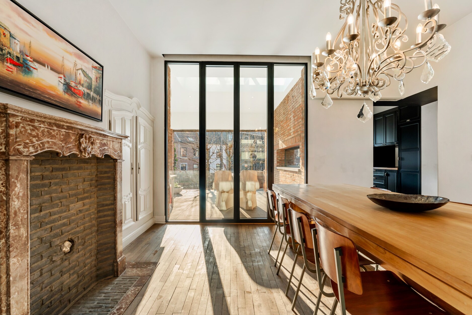 Verdieping 1: prachtige inkomhal, leefruimte, eetkamer, keuken, overdekt terras