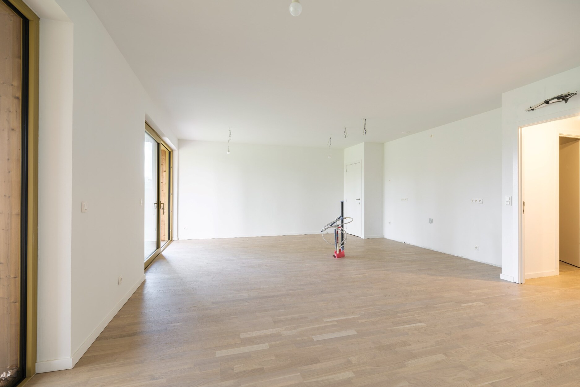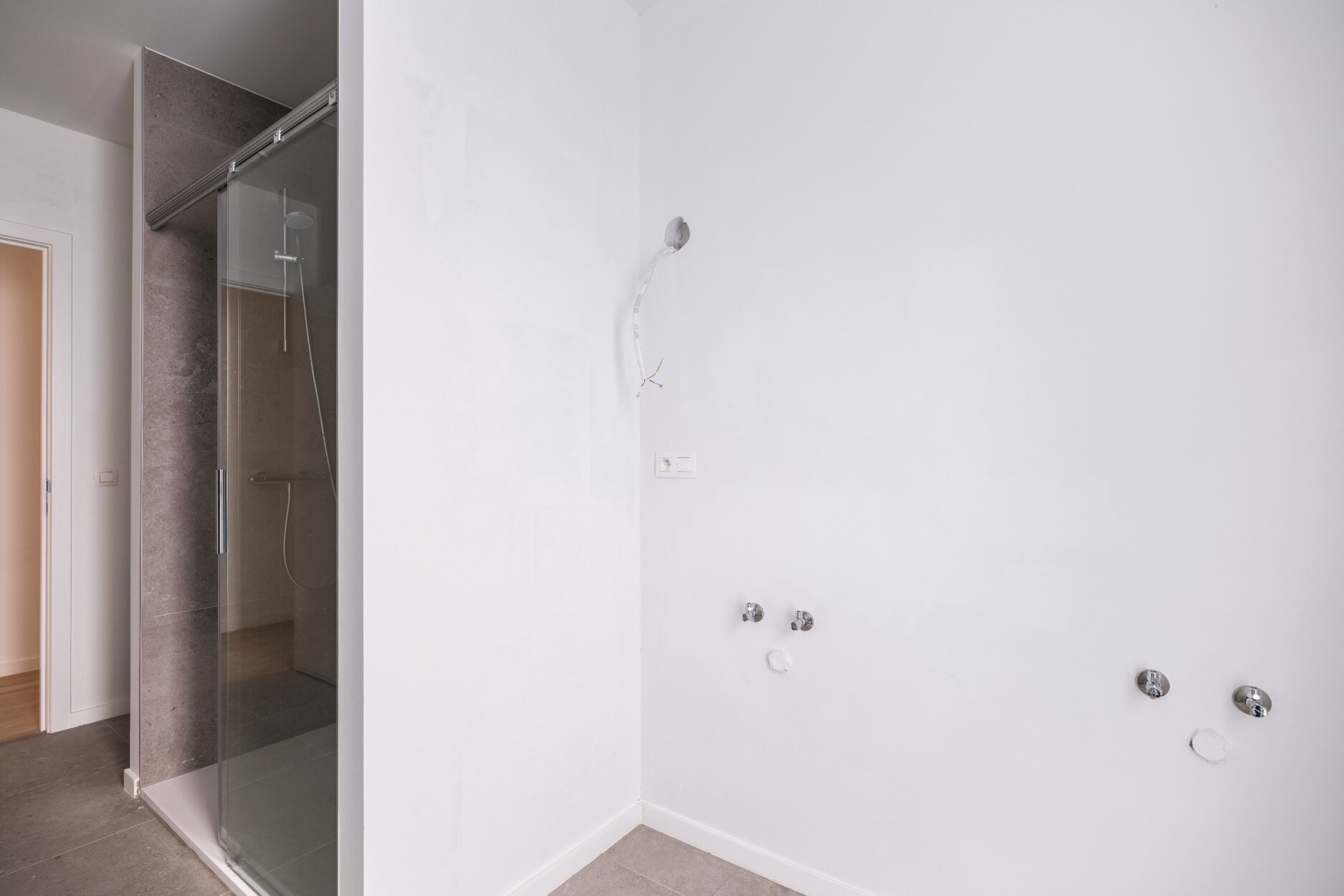 Het energetische gelijkvloers appartement met bruto oppervlakte van ca. 123 m² heeft zowel een tuin aan de voor- als achterzijde van ca. 58,4 m². U betreedt het appartement via de inkomhal met apart toilet en vestiaire. Inkomhal kast en wand wordt nog voorzien langs de cv installatie. Vervolgens, de grote leefruimte met open keuken dewelke nog vrij naar smaak gekozen mag worden voor een ruim budget van €25.000,00 bij Frako. Dankzij de grote schuiframen is er veel lichtinval en toegang tot uw eigen privé tuin. Een achterliggende berging is voorzien aan de keuken. Aan de voorzijde van het appartement bevinden zich twee slaapkamers met beiden toegang tot de tweede privatieve tuin aan de voorzijde. De badkamer is voorzien van douche, toilet en een dubbele wastafel dewelke nog vrij gekozen mag worden voor een budget van maximaal €5.000,00 bij Frako. Tevens is er nog een aparte kelderberging (nummer 3), bij aan te kopen voor €12.000 en twee ondergrondse autostaanplaatsen bij aan te kopen voor €30.000 en €35.000, waarvan de tweede extra breed is.
