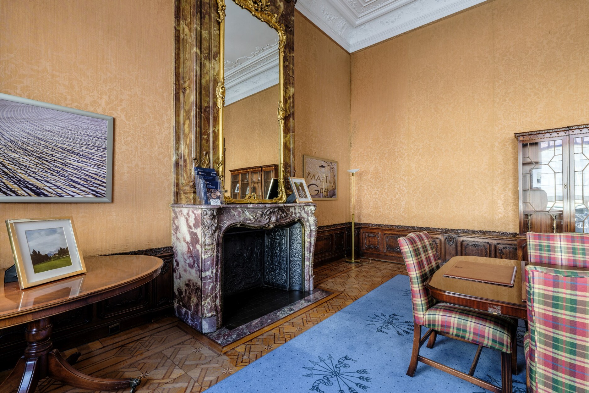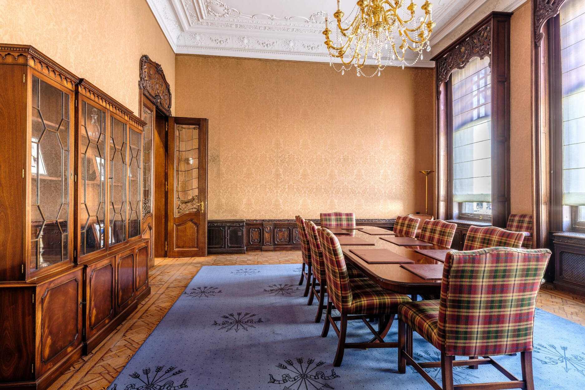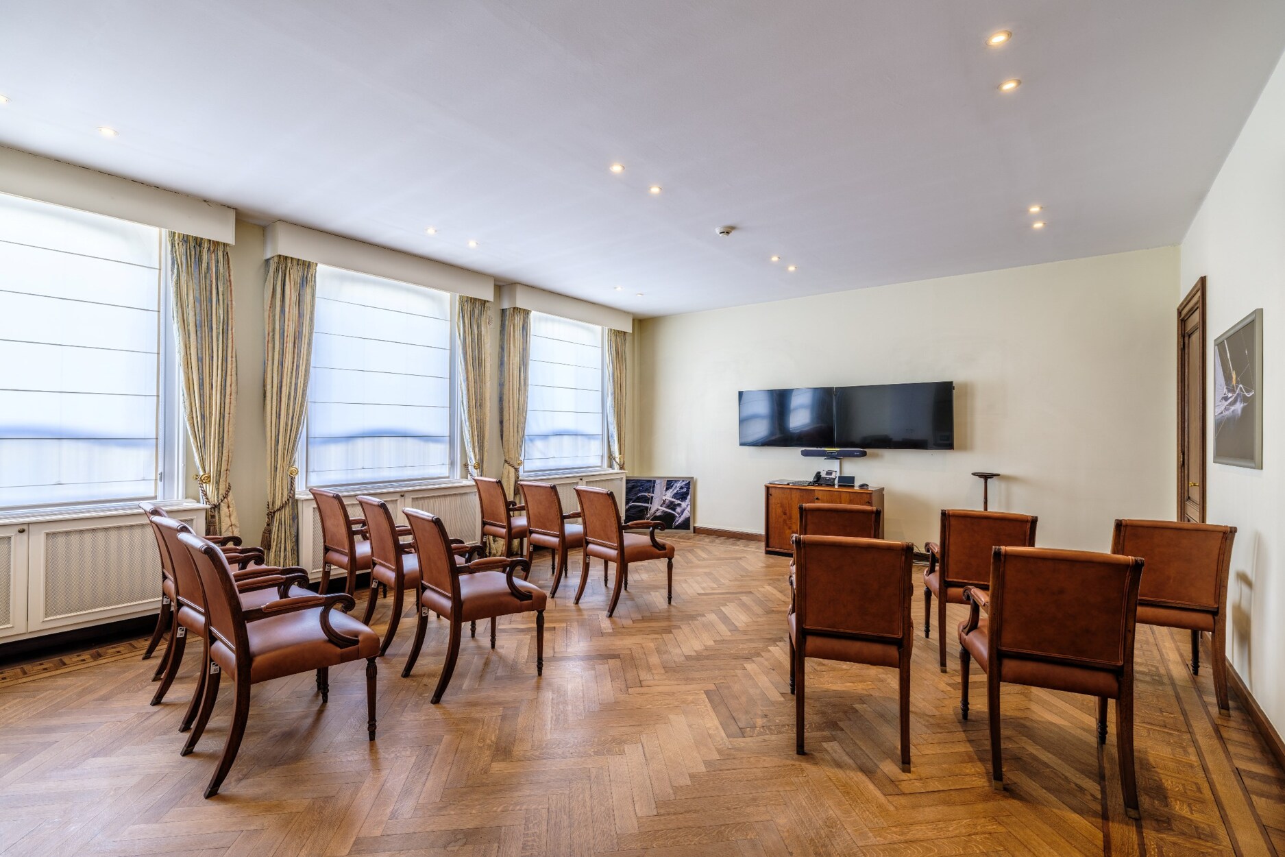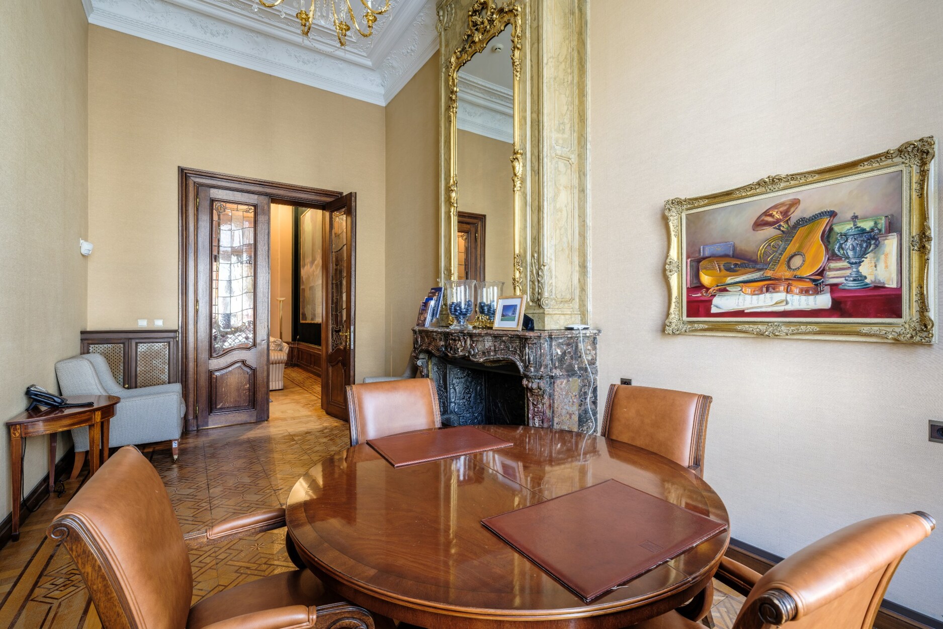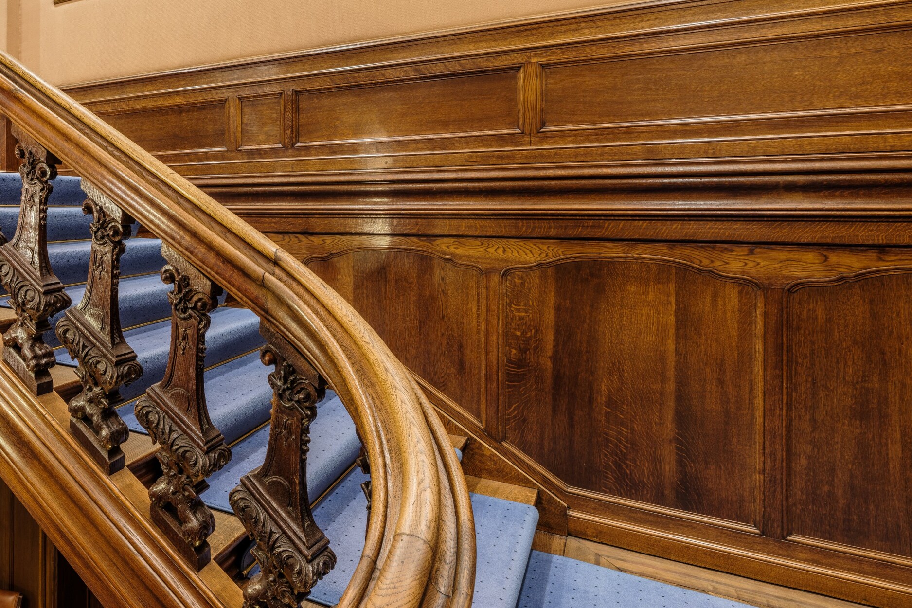 Binnenin straalt het gebouw klasse uit: een monumentale inkomhal, originele marmeren en parketvloeren, lambriseringen, sierhaarden, hoge plafonds met moulures en stucwerk, en unieke muurschilderingen van Emile Vloors (1923). Het achterste gedeelte telt zes niveaus, waaronder een verdieping met een ruim terras van 60 m², en werd gerenoveerd met oog voor kwaliteit en hedendaagse afwerking.