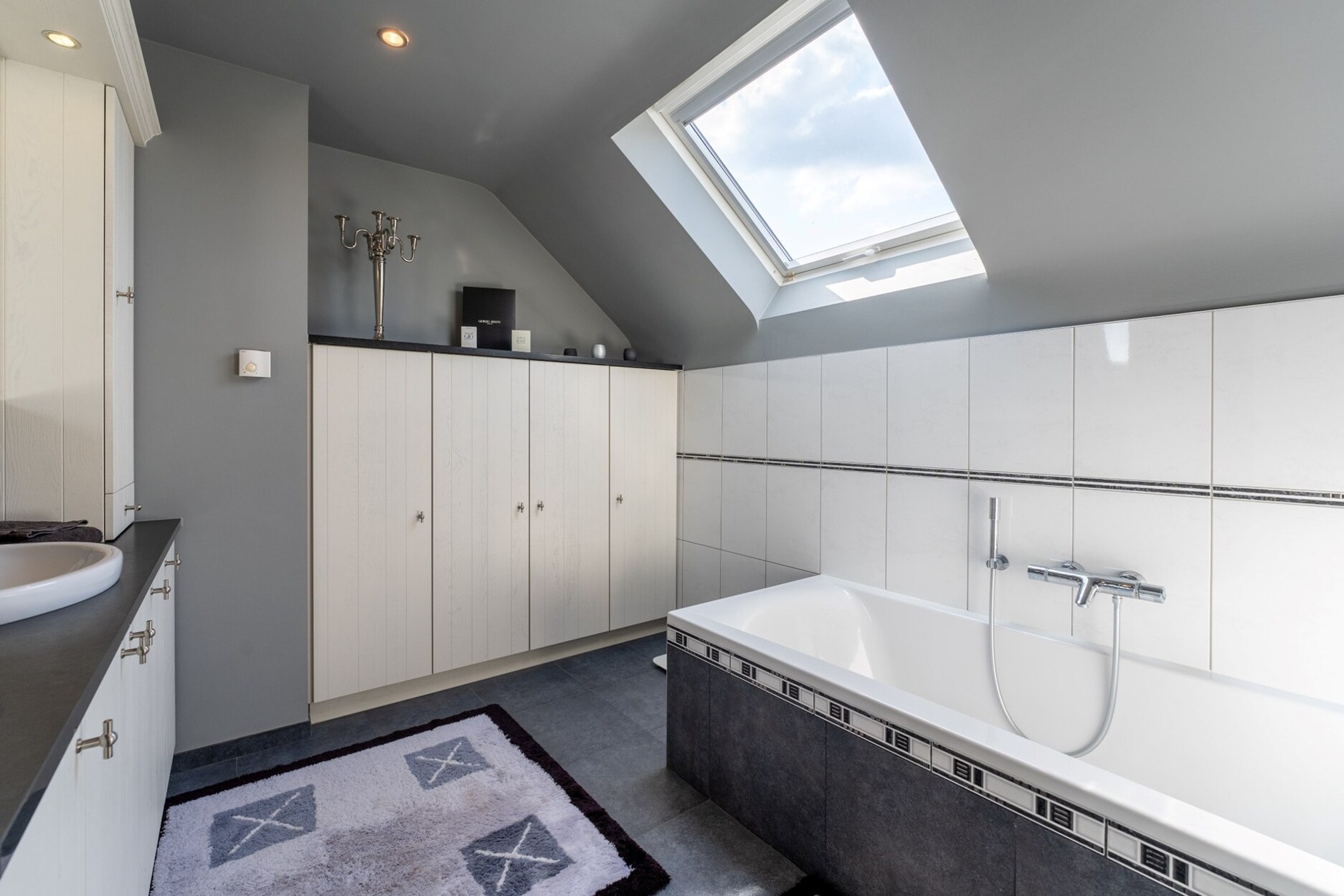 Op de eerste verdieping zijn 2 royale op maat afgewerkte luxe slaapkamers, alsook een badkamer met ligbad. Eén van de slaapkamers heeft een royale dressing.