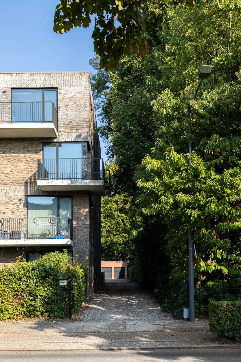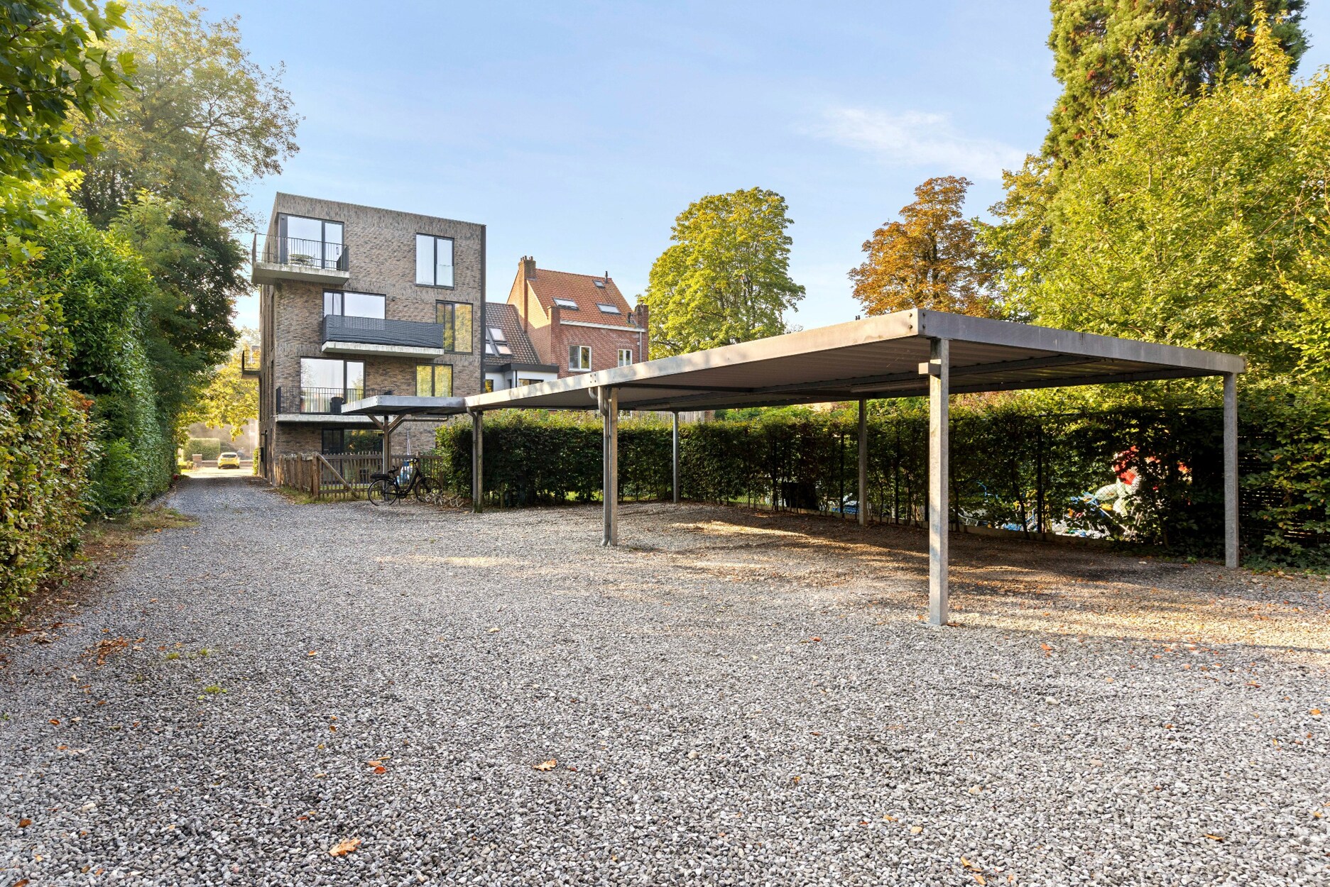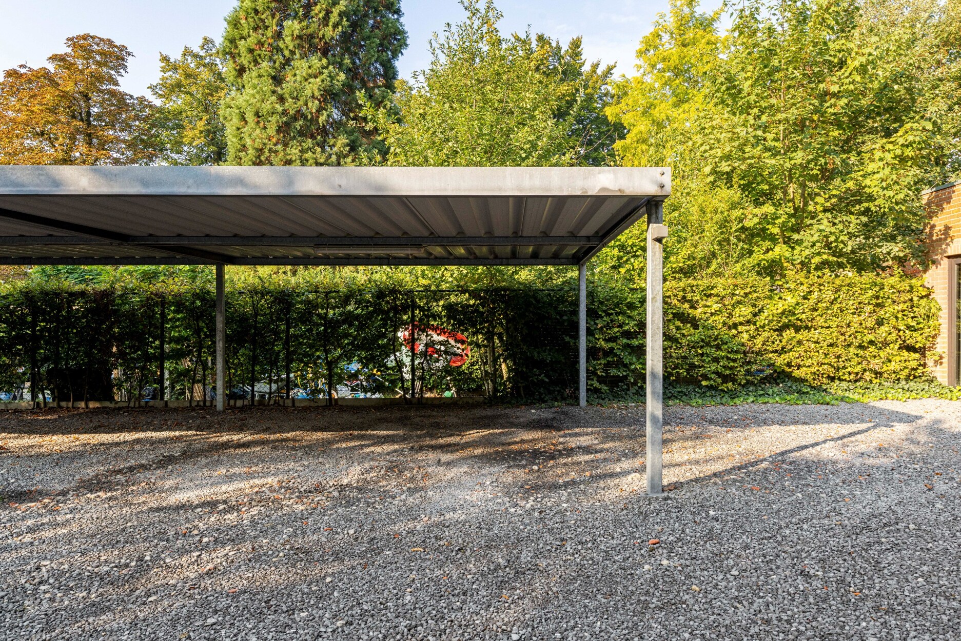 Achteraan het gebouw bevinden zich de carporten alsook een afzonderlijk gebouw met private bergingen en een gemeenschappelijke fietsenberging.