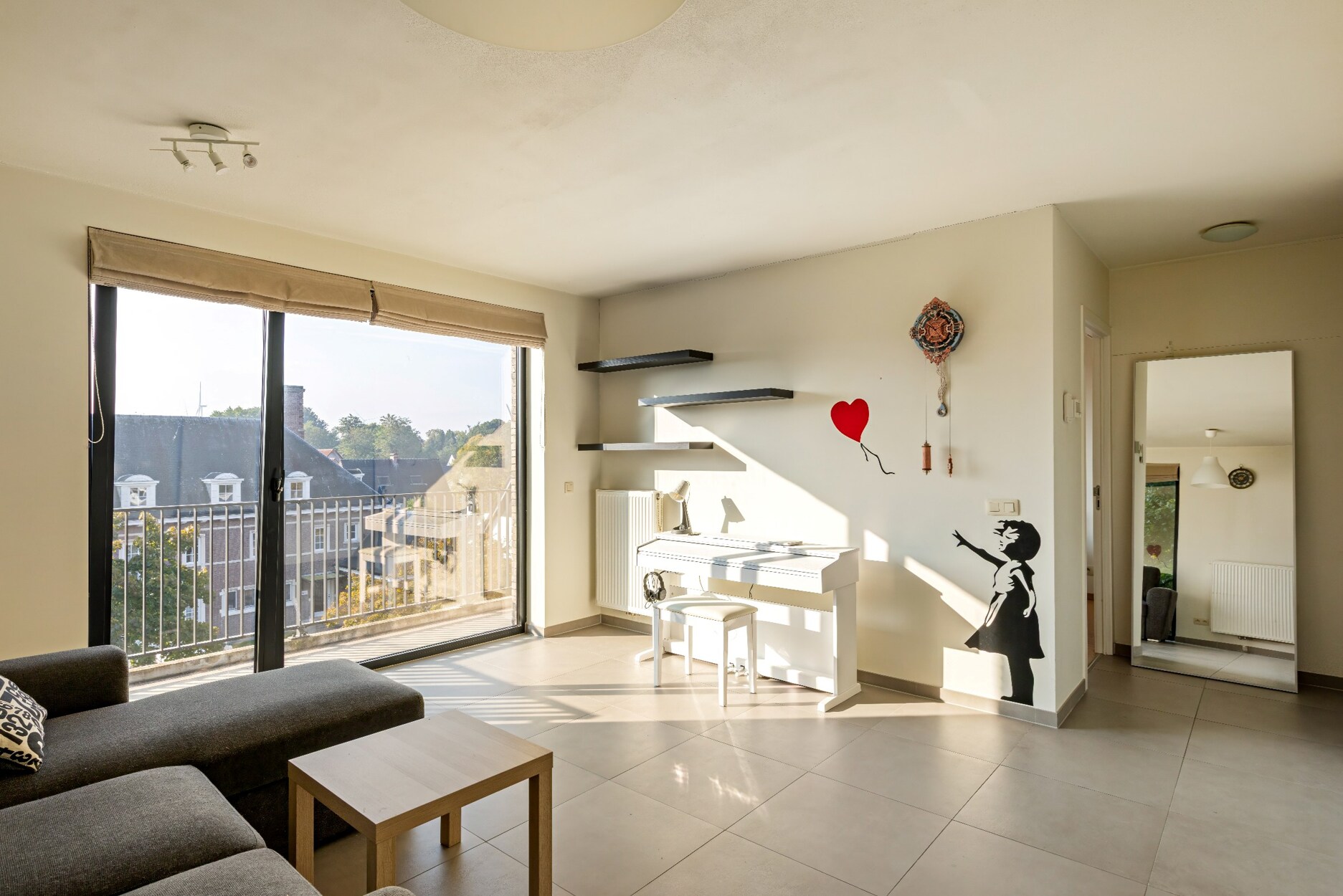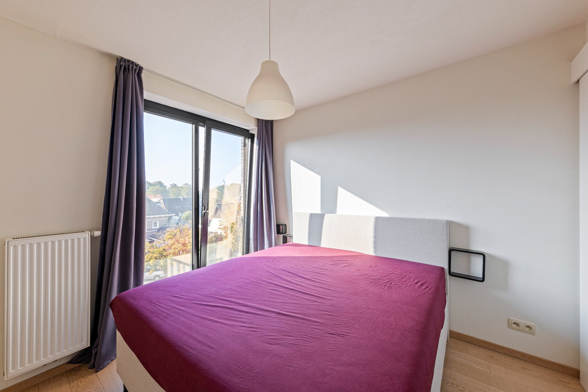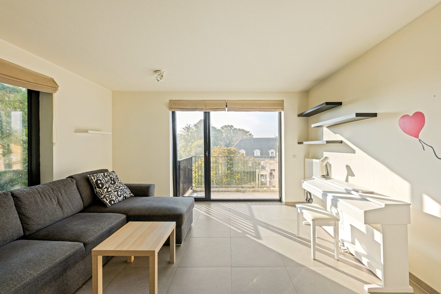 Het appartement omvat een inkomhal met apart toilet, een woonkamer met open keuken ingericht met koelkast, dampkap, oven, vaatwasser, inductiekookplaat, alsook aansluiting voor wasmachine. De woonkamer geniet van veel lichtinval dmv de grote raampartijen en heeft toegang tot het ruime terras (7m²) aan de voorzijde.