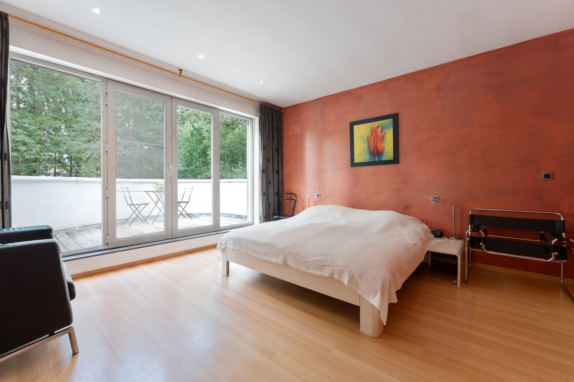 De overloop geeft toegang tot het mastergedeelte met slaapkamer, ingerichte dressing en badkamer ensuite. Deze recente badkamer is uitgerust met ligbad, inloopdouche, dubbele lavabo met spiegelkast en handdoekdroger. De slaapkamer geniet bovendien van een privéterras met veel privacy.