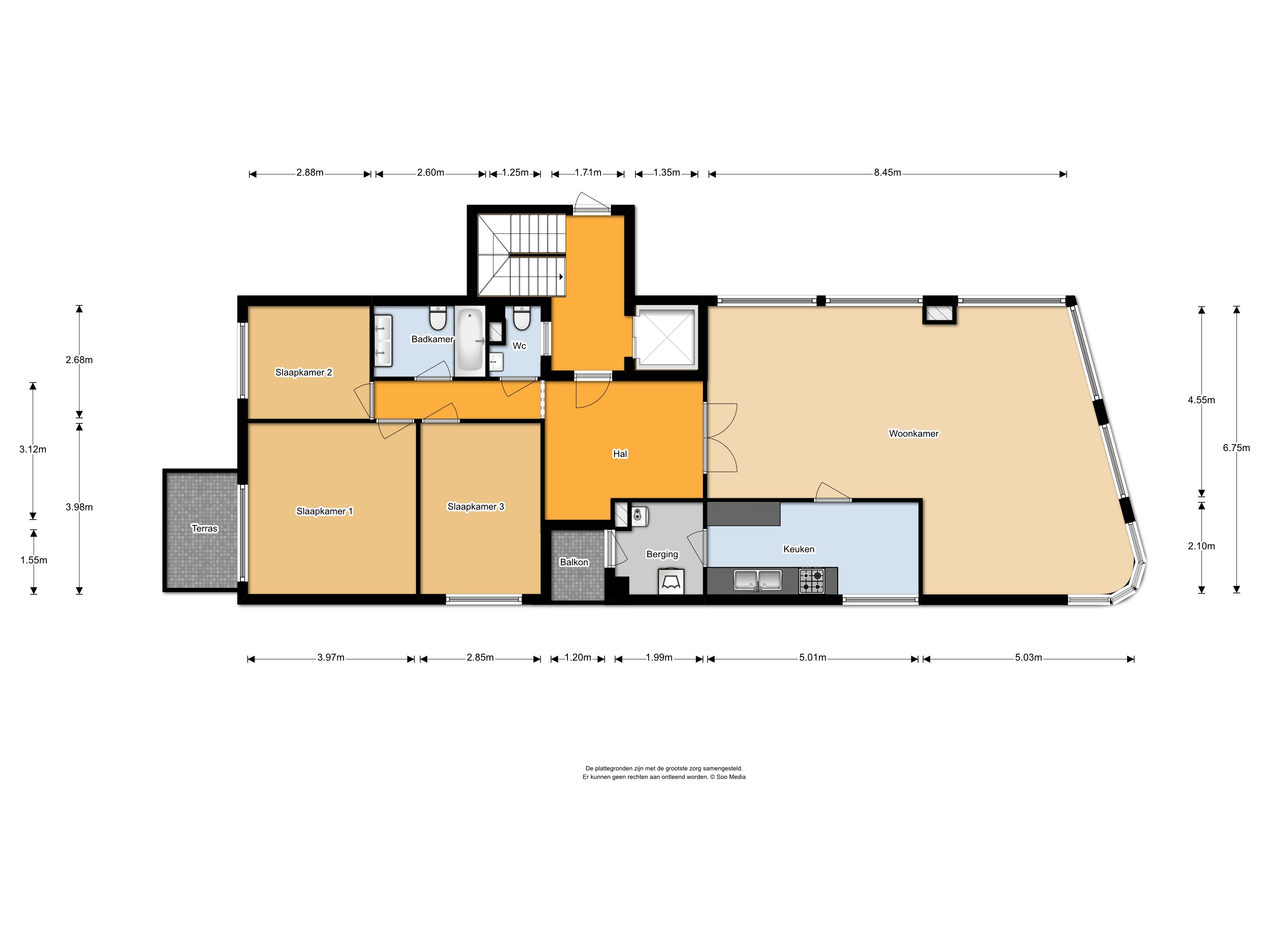 Achteraan het appartement treffen we de 3 slaapkamers aan waarvan de masterbedroom over het terras beschikt met ZO oriëntatie.