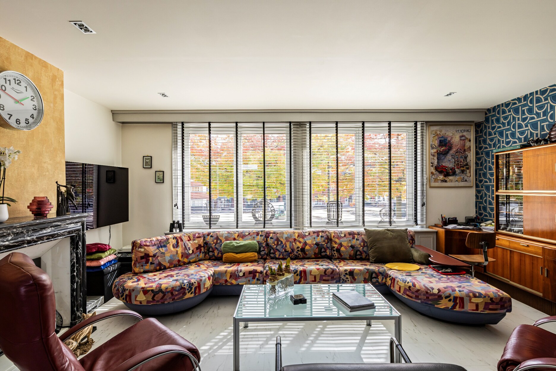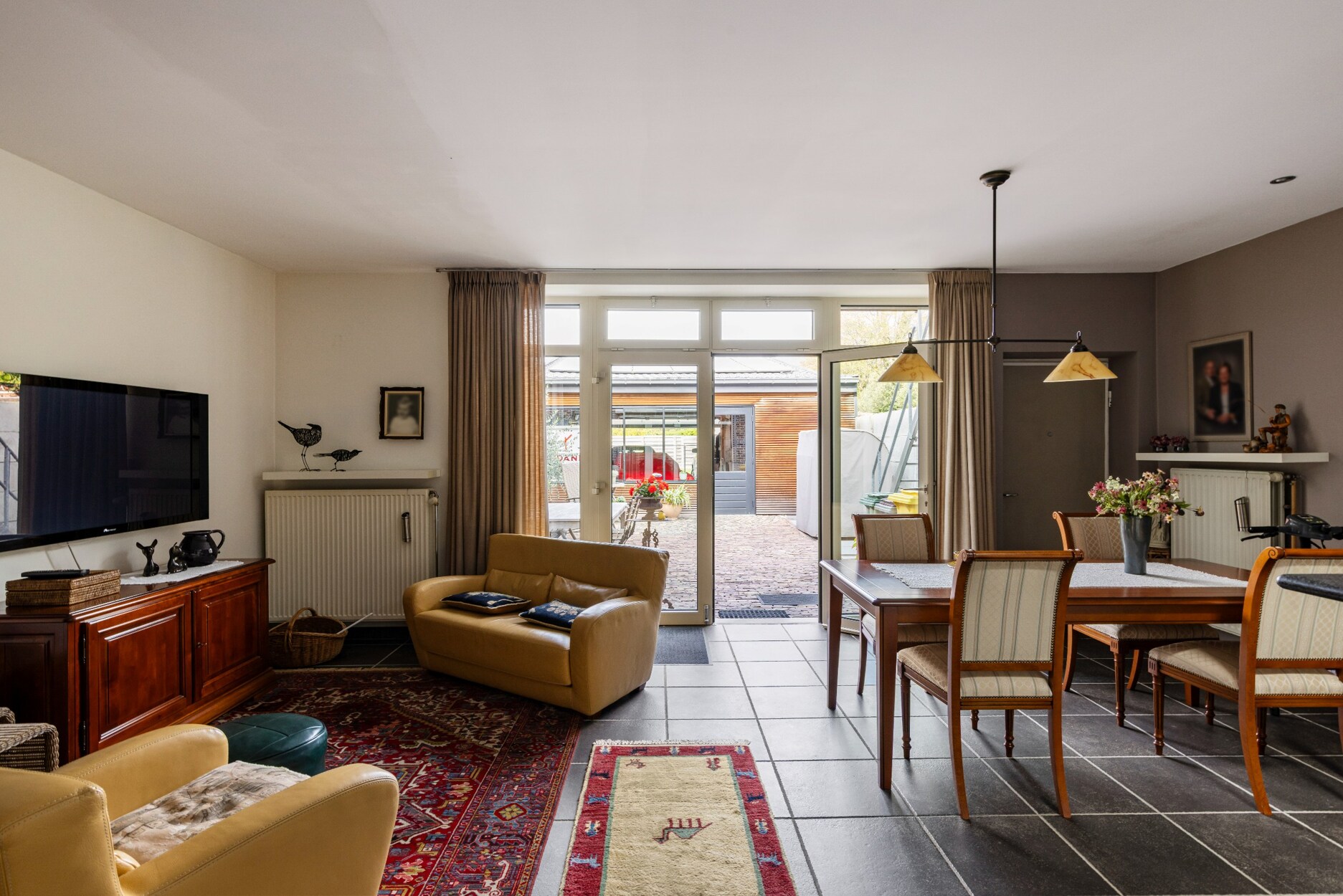 Aan de rechtse zijde bevindt zich de praktijkruimte, momenteel ingericht als appartement. Mooie leefruimte, aparte slaapkamer (of bureau), een badkamer met douche, wastafel en toilet, een berging/wasplaats en charmante woonkamer met gezellige open keuken. Deze is voorzien van vaatwasser, frigo, heteluchtoven, keramische kookplaat en afzuigkap. Door de grote glaspartijen heeft u niet alleen veel lichtinval, maar ook een prachtig groen zicht op de stadstuin en terras. Aansluitend een ruime losstaande dubbele garage.