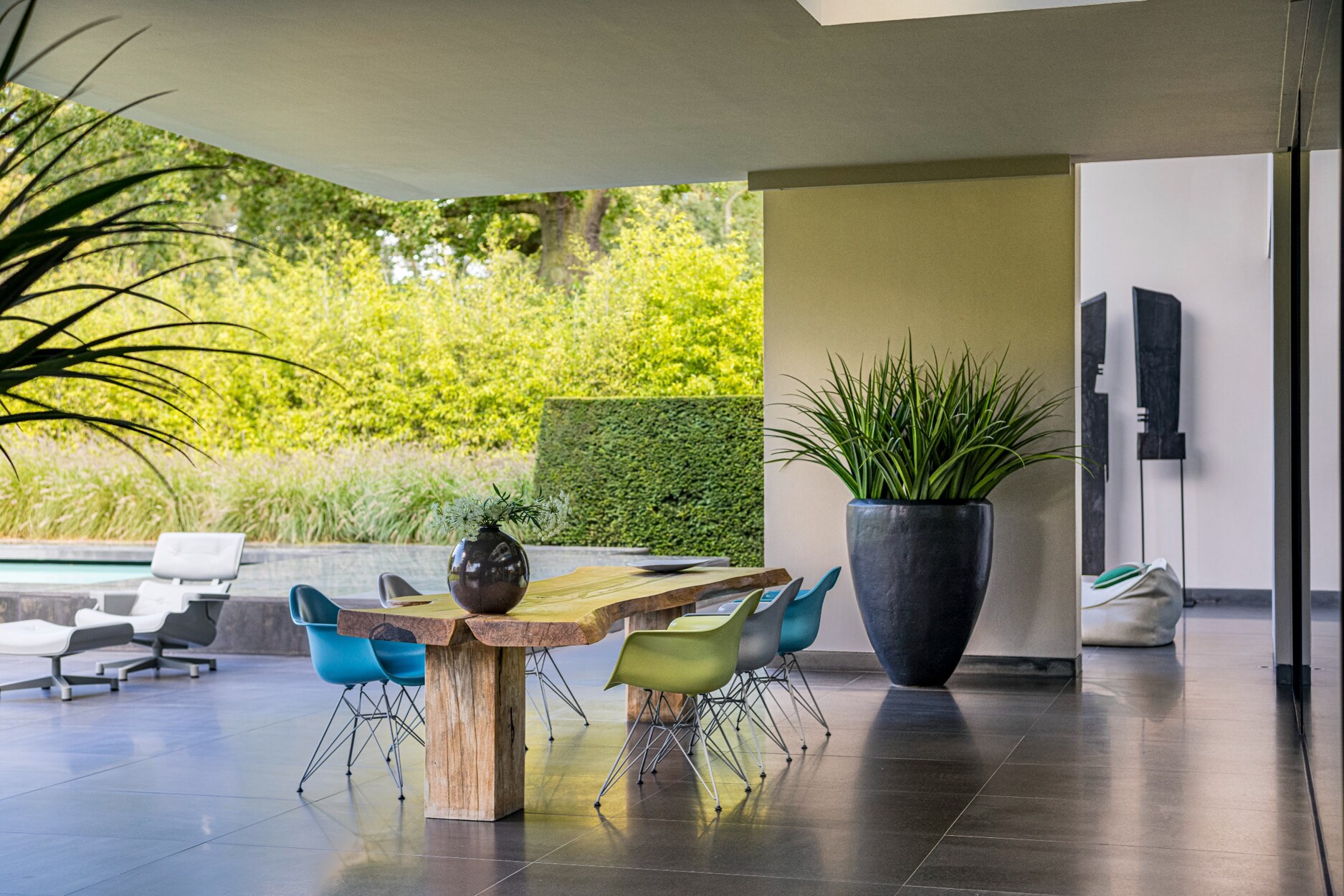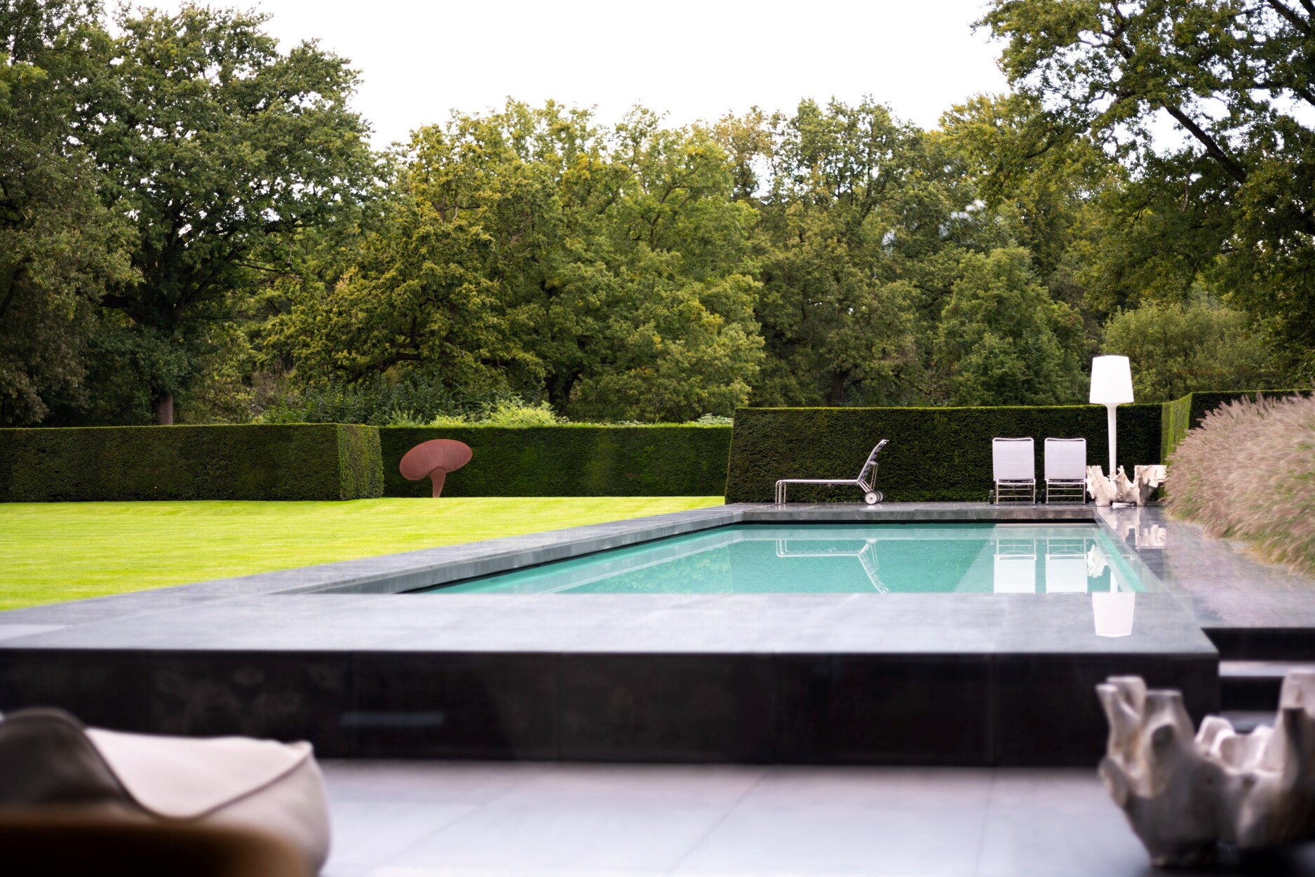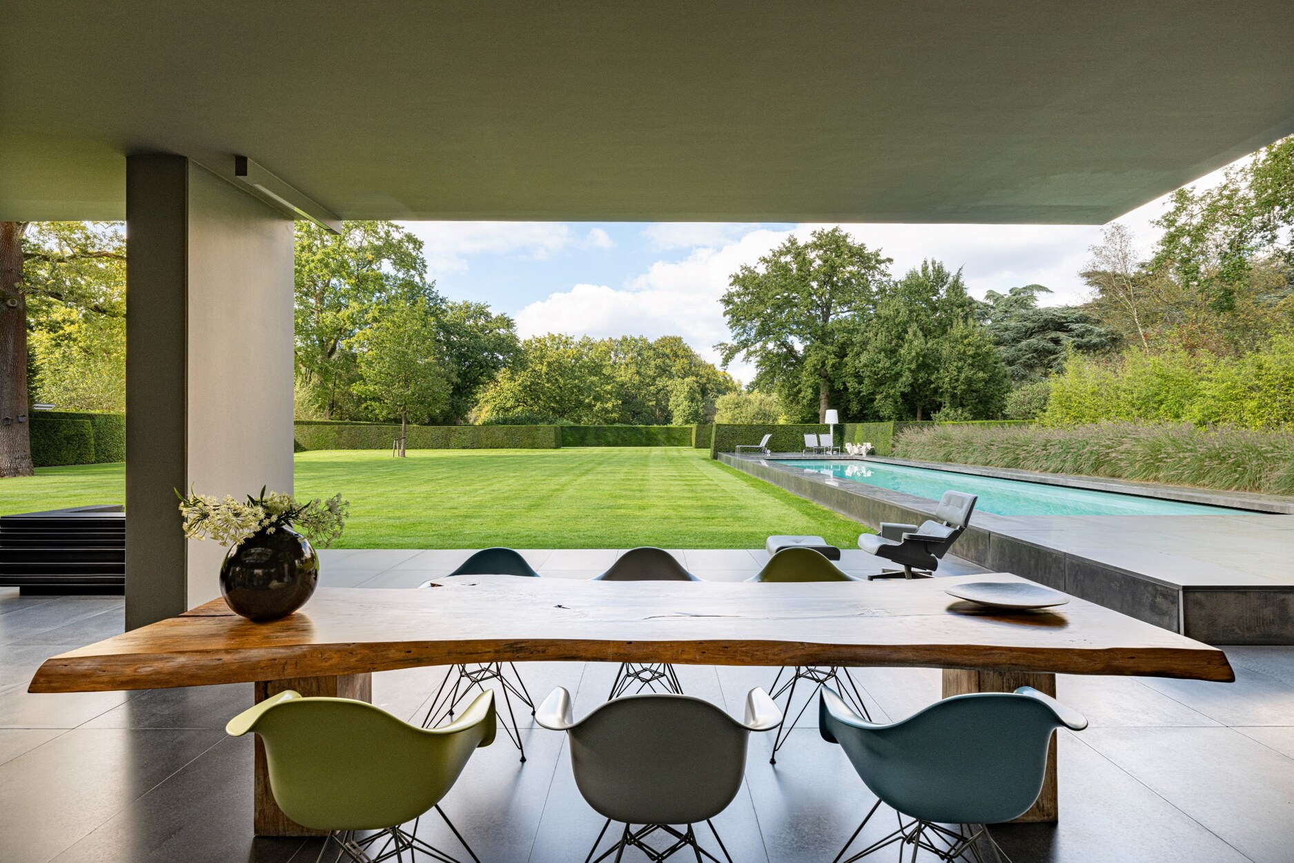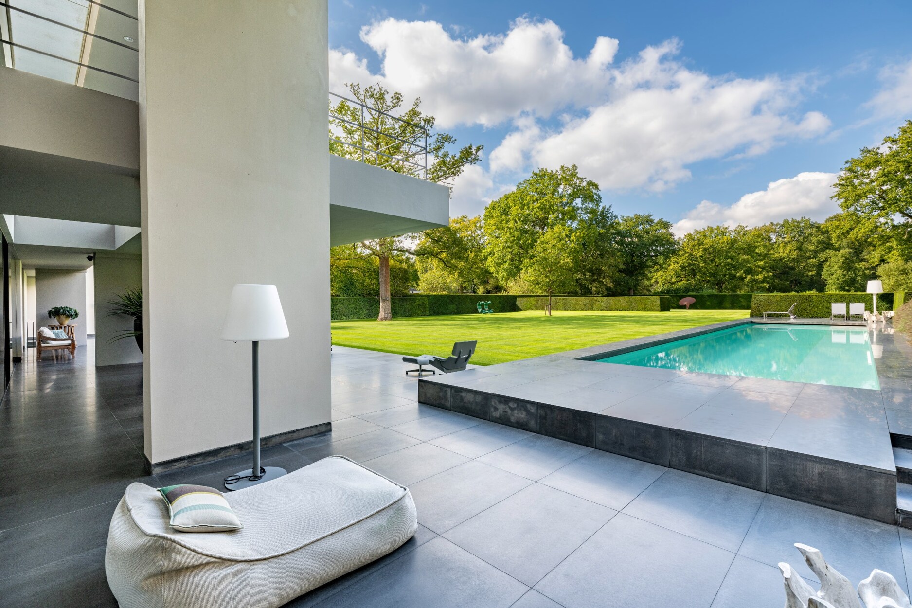 In het gehele totaalconcept van ontwerp werd de woning, tuin en zwembad herenigd.