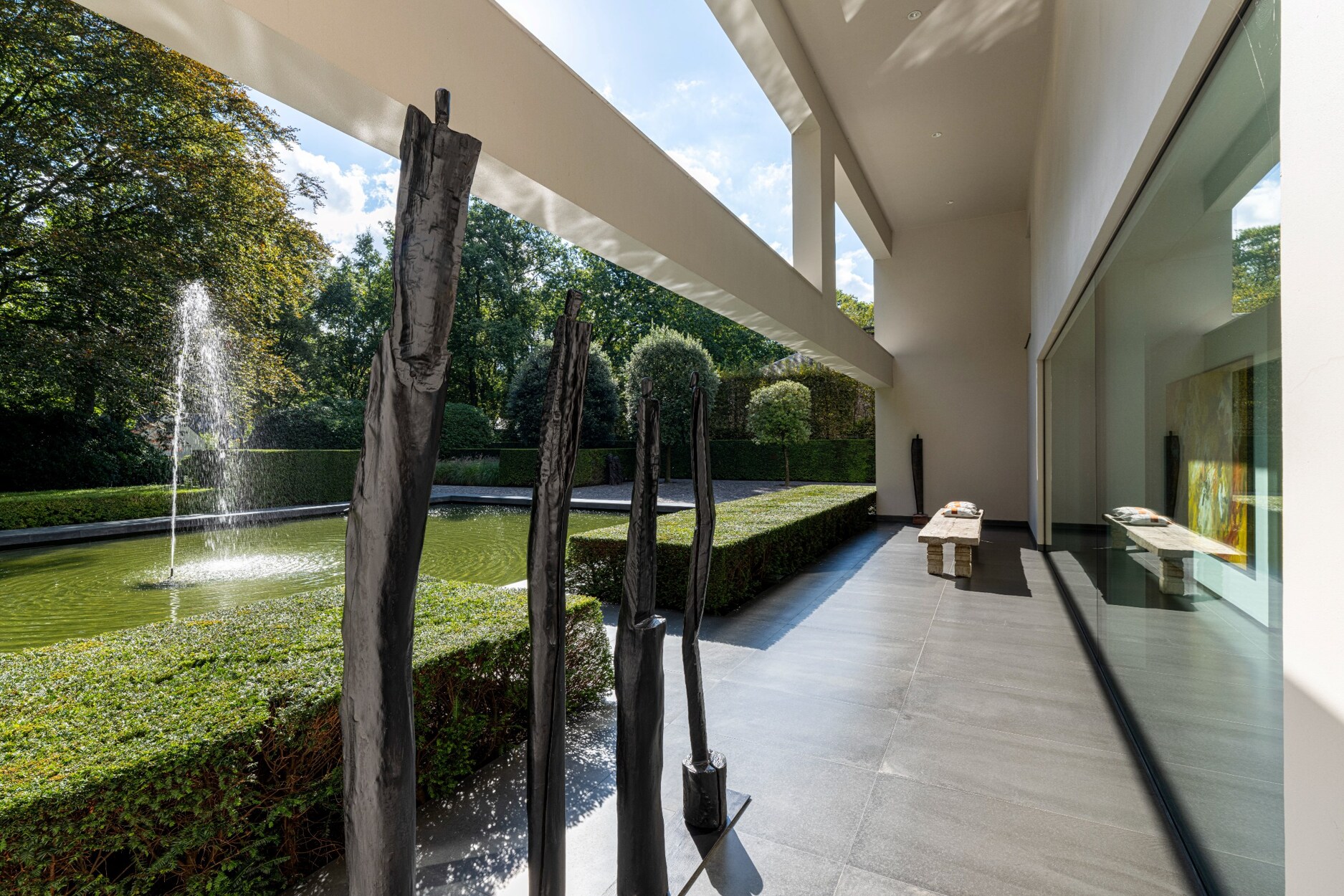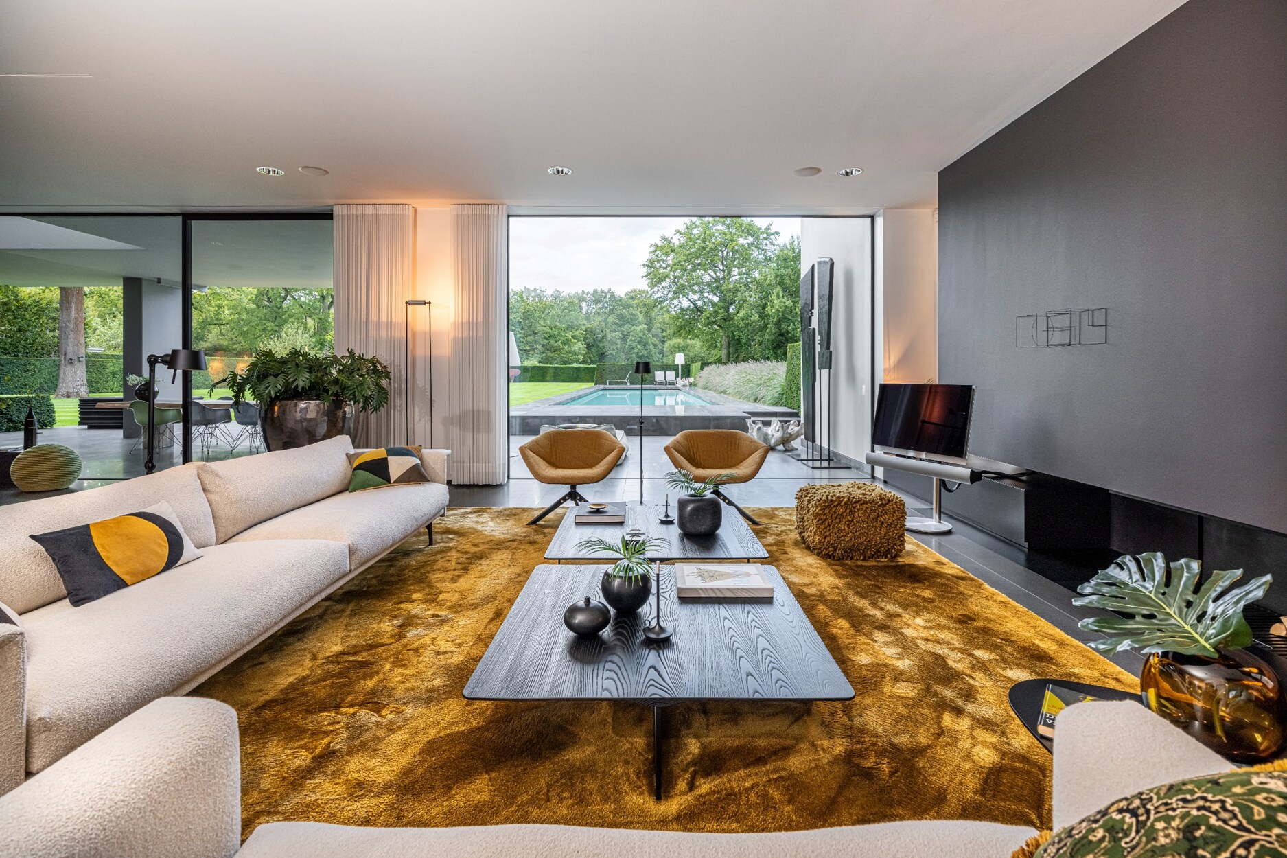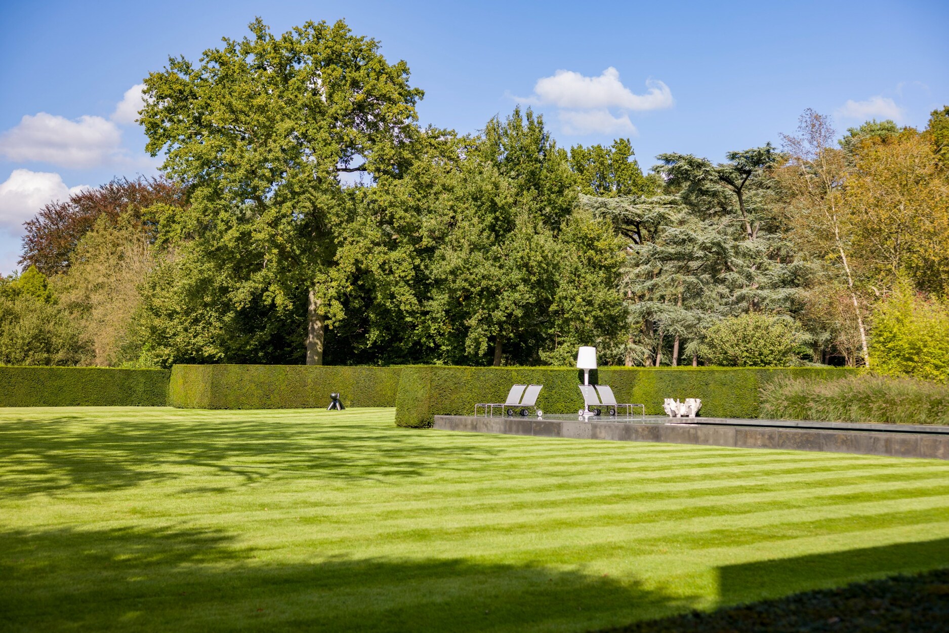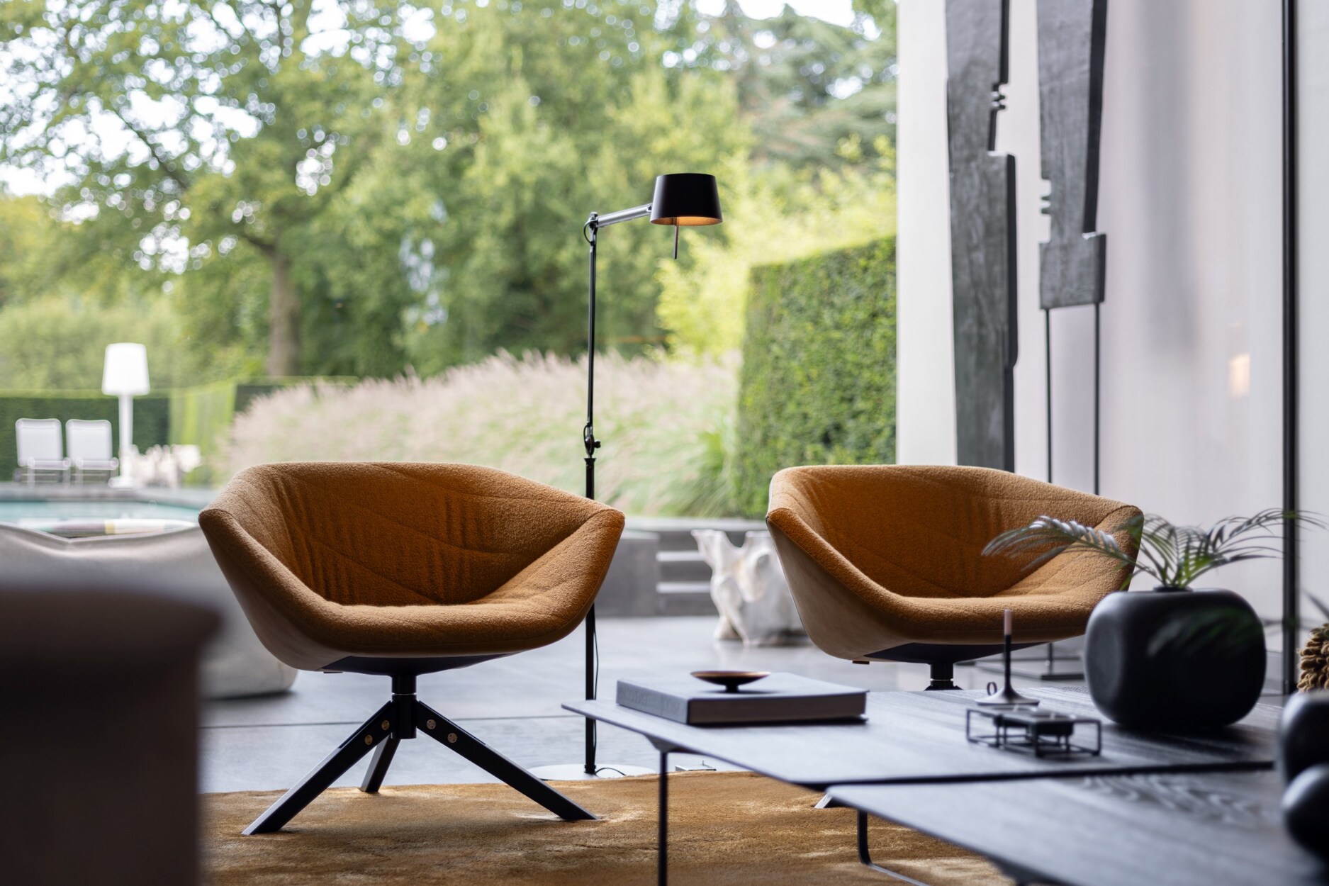 In het gehele totaalconcept van ontwerp werd de woning, tuin en zwembad herenigd.