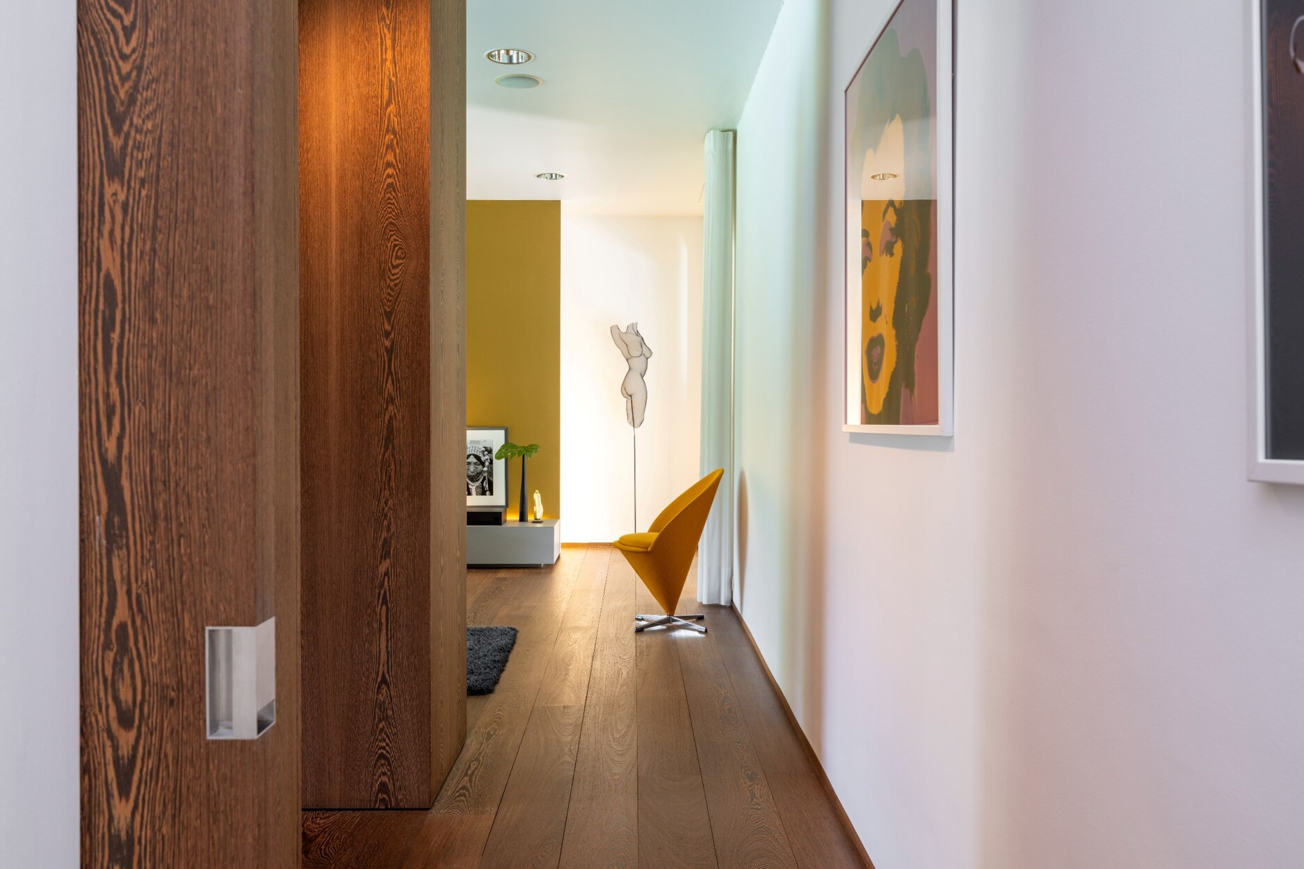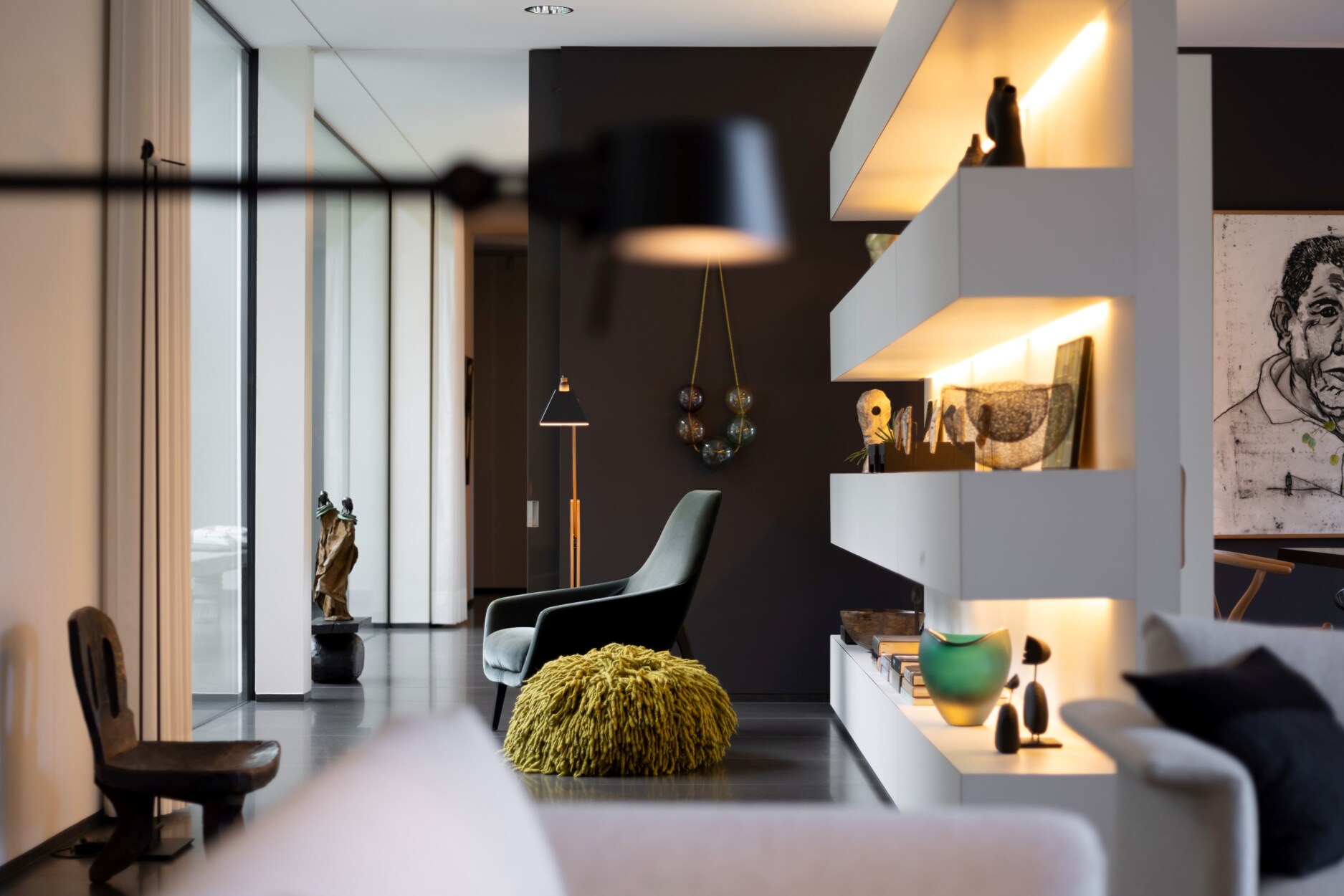 De inkomhal loopt naadloos over in de prachtige leefomgeving die een open connectie brengt tussen de binnen-en buitenruimtes.