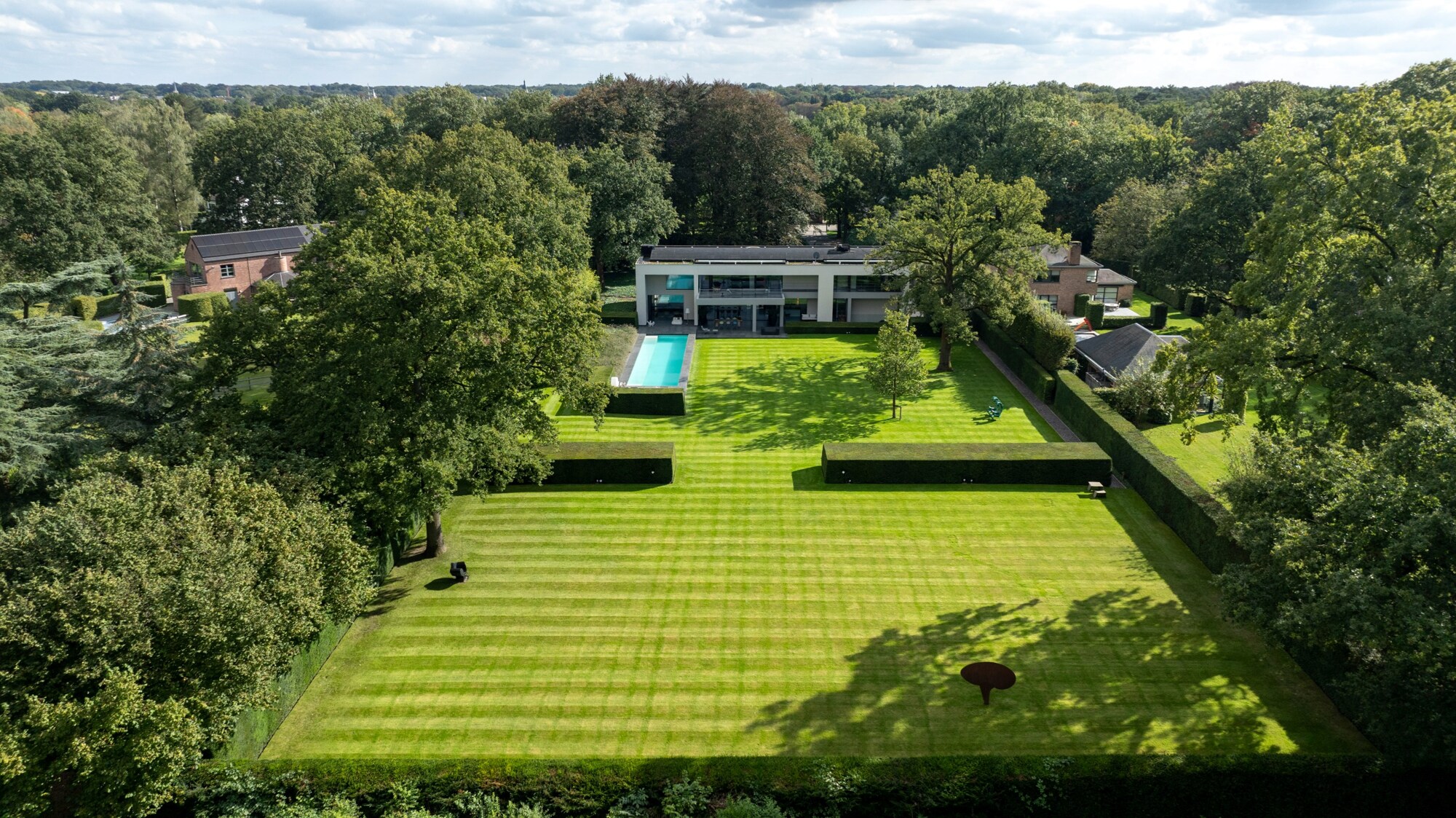 We rijden de magnifieke laan in, richting deze unieke moderne villa onder architectuur naar een ontwerp van Vlassak Verhulst.