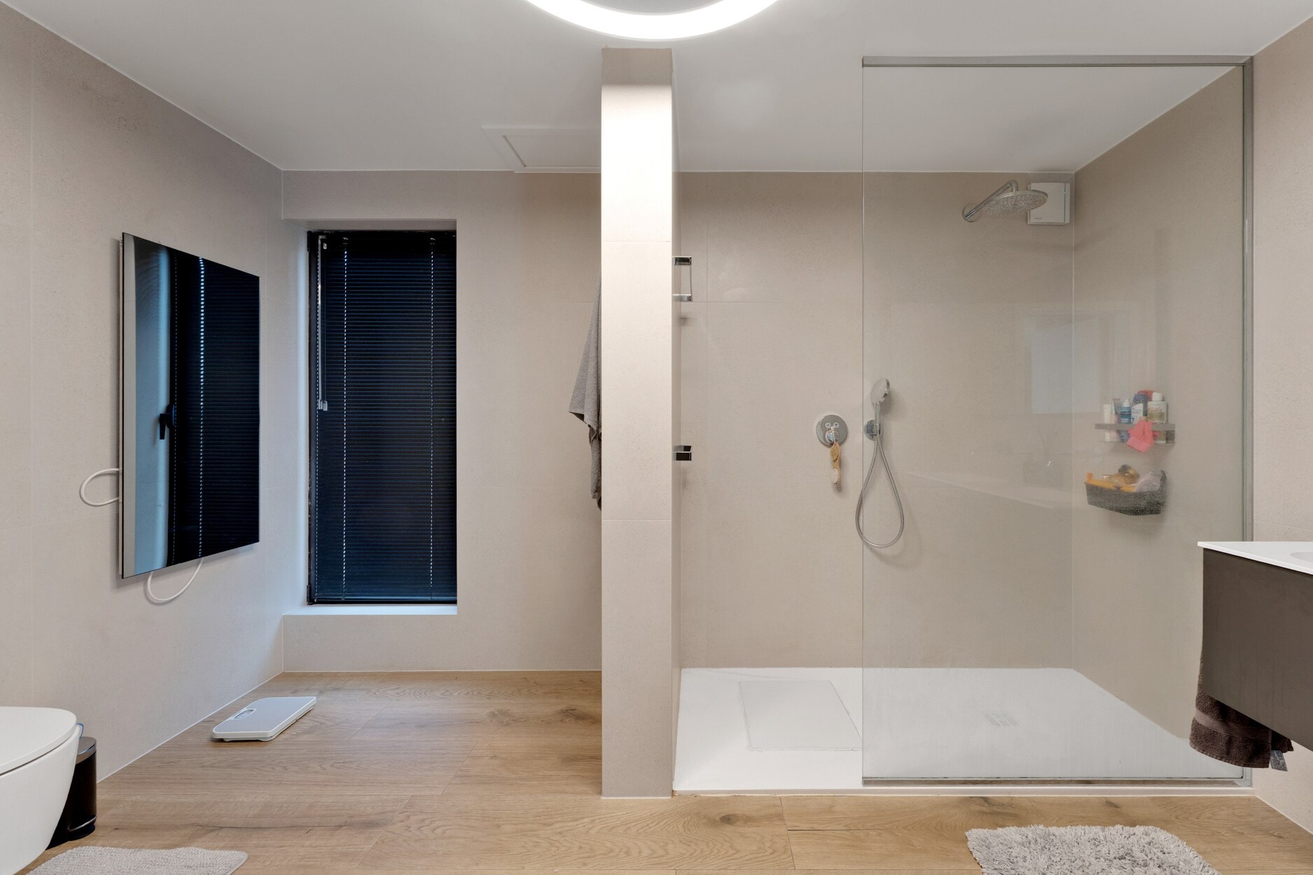 De woning is te betreden via de ruime inkomhal met vestiairekast en gastentoilet. Vervolgens vinden we de gezellige woonkamer met gaskachel terug, deze is voorzien van een eikenhouten parket en mooi zicht op de aangelegde tuin. Aansluitend aan deze ruimte bevindt er zich een extra tv-kamer of bureauruimte met zonnescreens. De keuken is apart en voorzien van gasvuur, dampkap, koelkast, vaatwasmachine, combi-oven en schuifraam naar terras en tuin. Deze is tijdloos afgewerkt. Naastliggend is een praktische kelderberging voorzien. Tot slot bevindt er zich op de gelijkvloerse verdieping een inpandige garage voorzien van kastruimte en een achterinkom met apart toilet en technische ruimte/wasplaats.