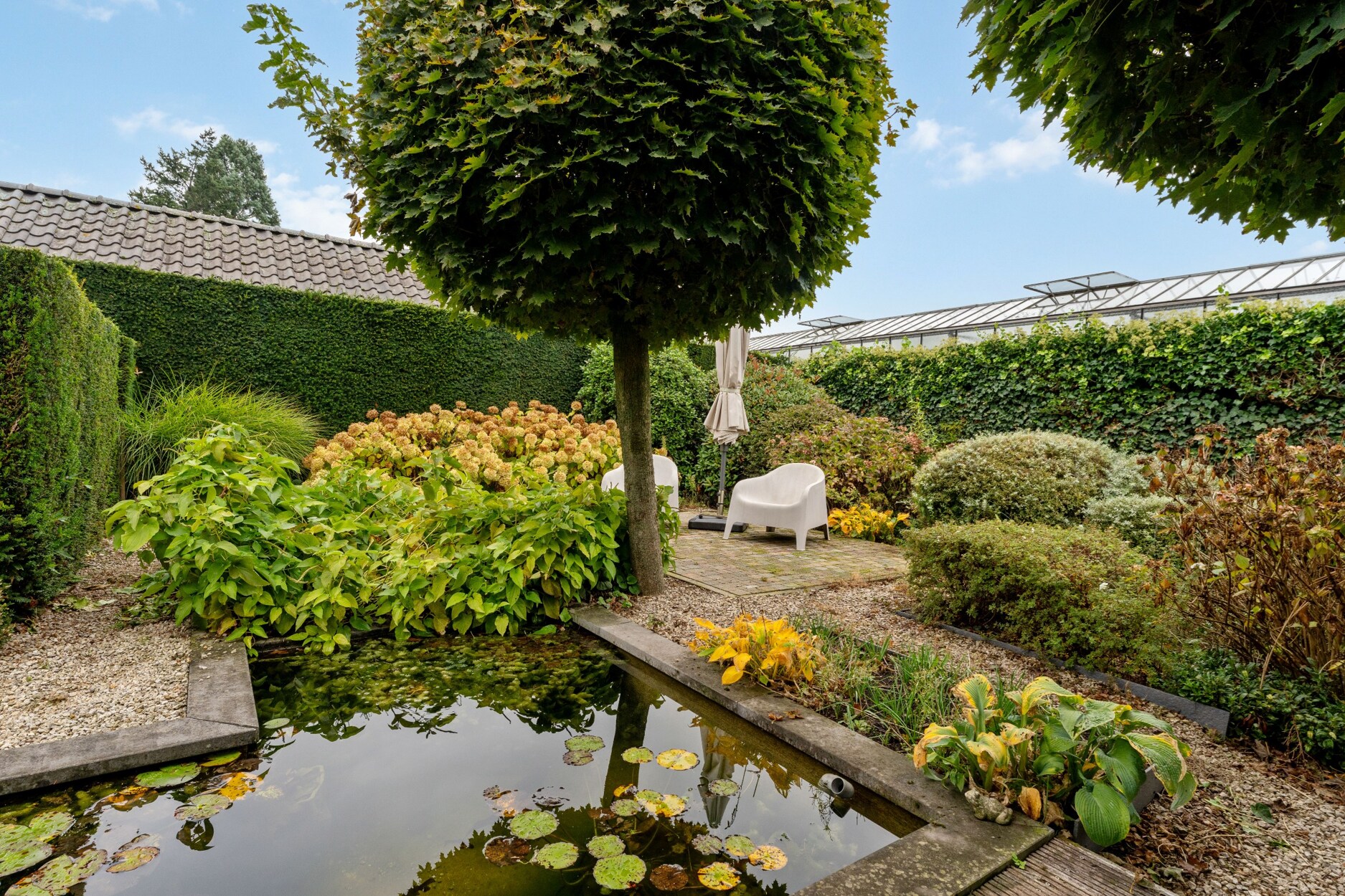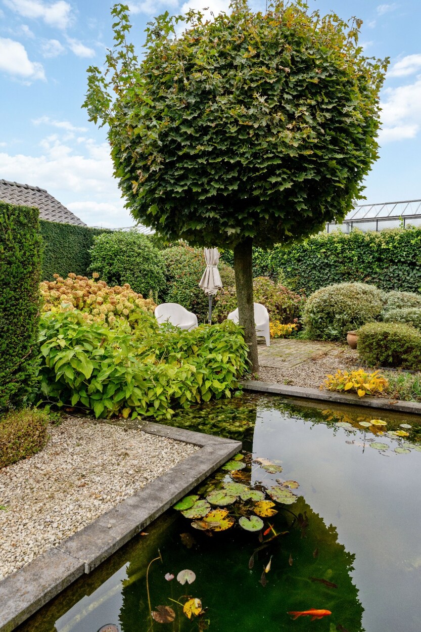 - Gezellig aangelegde tuin met overdekt terras en tuinvijver