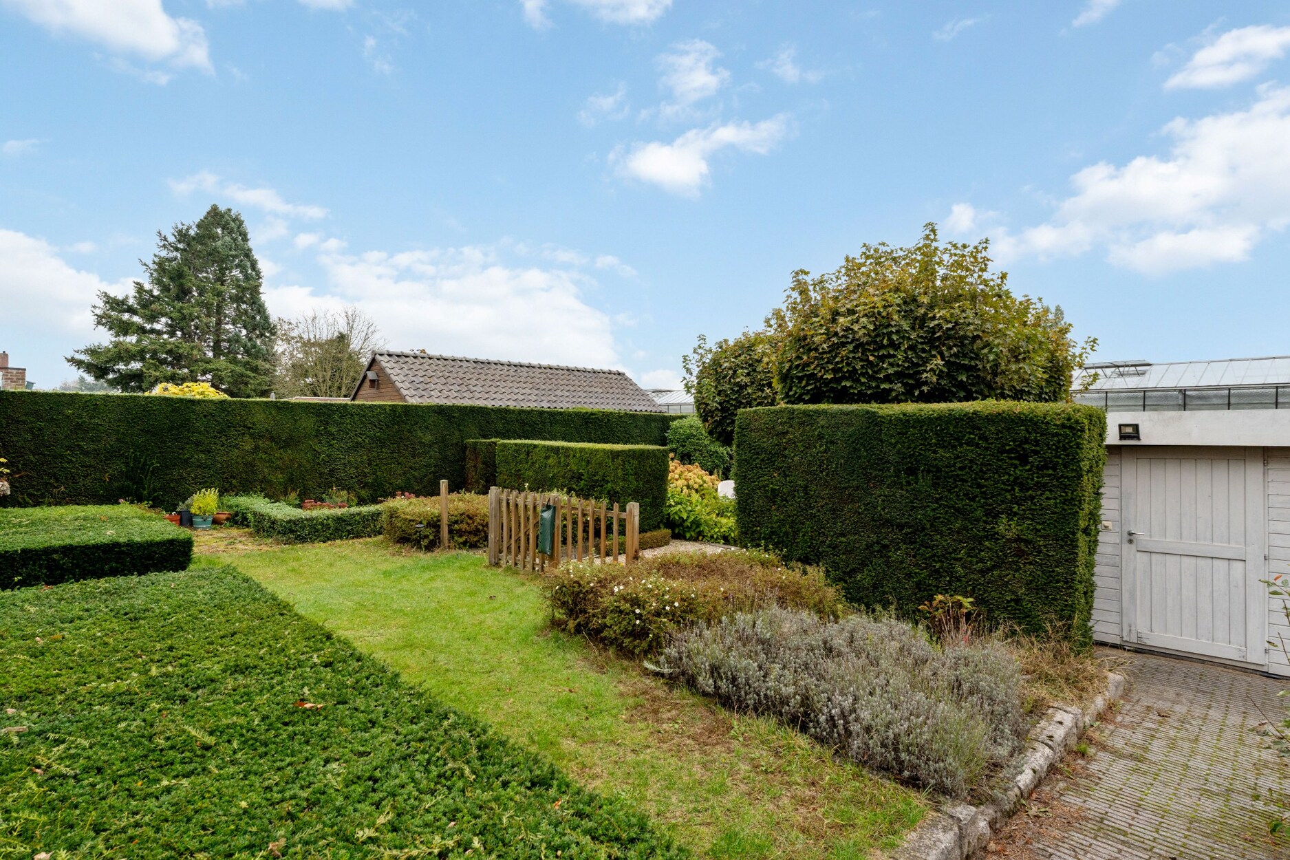 De tuin is zeer gezellig aangelegd en voorzien van een overdekt terras met zicht op een tuinvijver. Bovendien bevindt er zich hier een praktische tuinberging met wateraansluiting en elektriciteit.