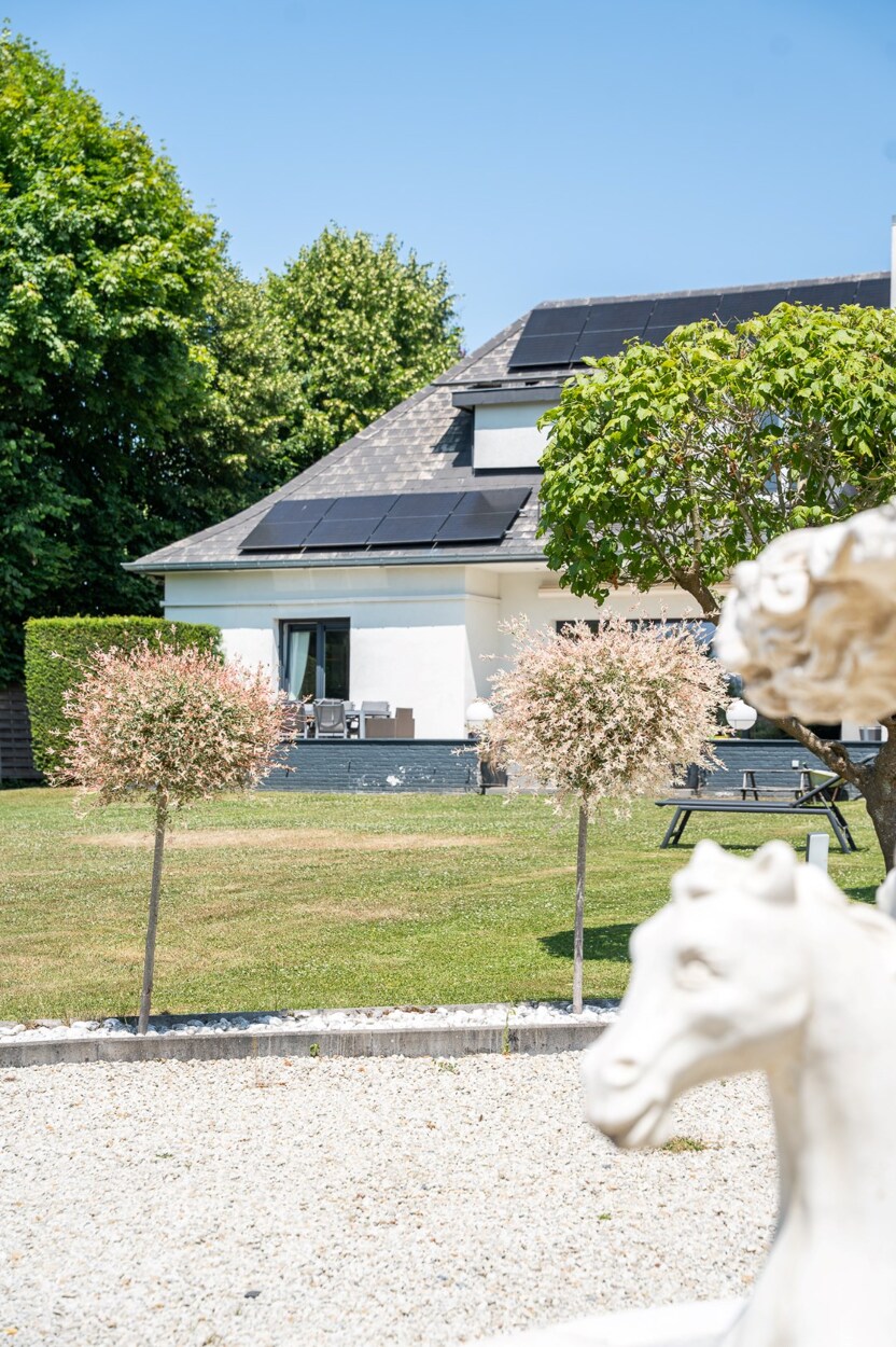 De verdieping, meer klassiek van opzet, herbergt drie bijkomende slaapkamers en twee badkamers, wat verschillende inrichtingsmogelijkheden biedt. De tuin, intiem en verzorgd, vormt een oase van rust, verrijkt met een jeu de boules-baan.