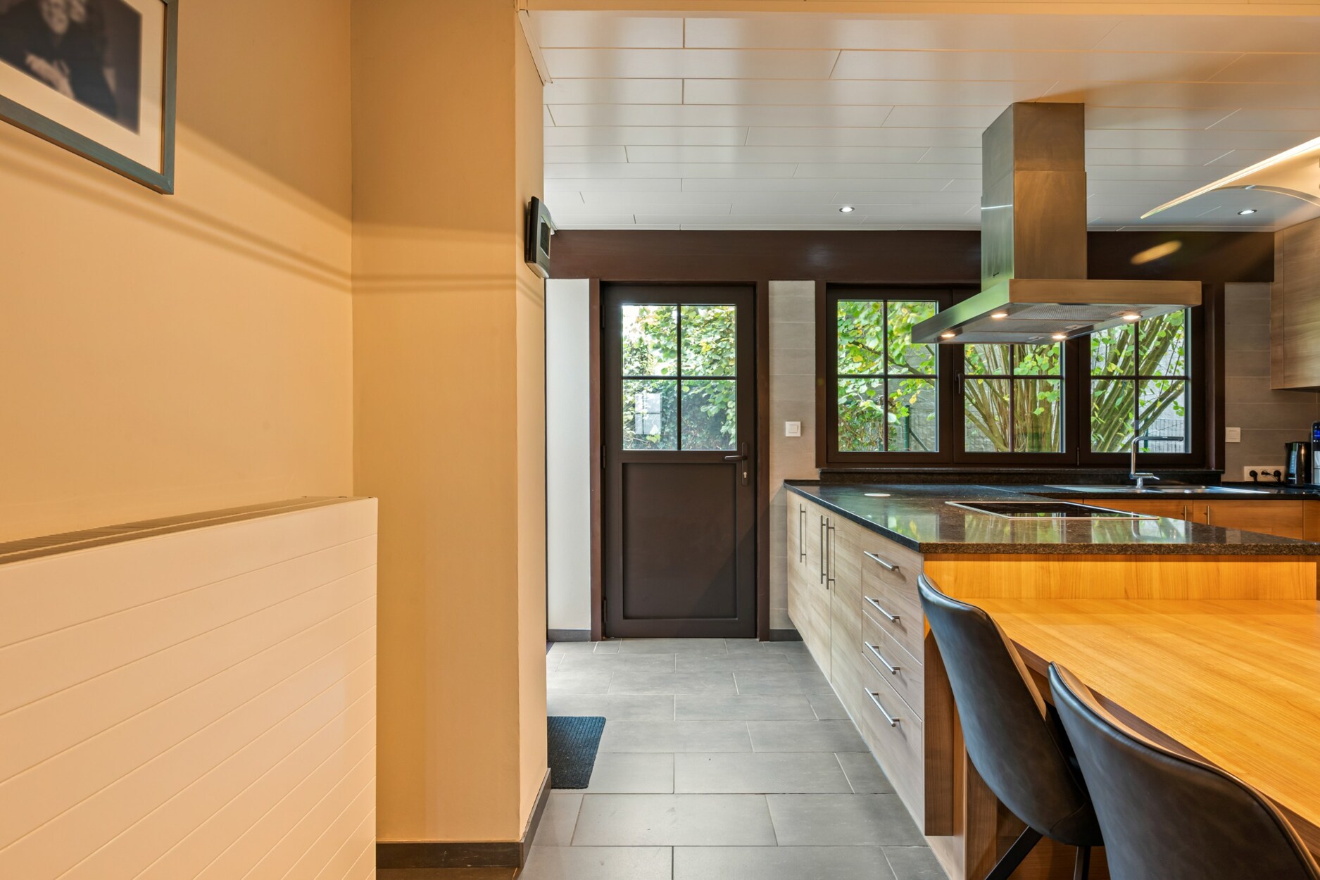 We betreden de woning via de leefruimte, waar de eetruimte en zitruimte op een aangename manier in elkaar overvloeien. Aansluitend bevindt zich de ruime leefkeuken, volledig uitgerust en met directe toegang tot het terras — ideaal voor gezellig tafelen binnen én buiten. Naast de keuken vinden we een praktische berging/ technische ruimte. Verder is er een extra leefruimte met een prachtig zicht op de tuin en een rechtstreekse doorgang naar buiten. Aan deze ruimte grenst een multifunctionele kamer, perfect in te richten als speelkamer, hobbyruimte of logeerkamer...