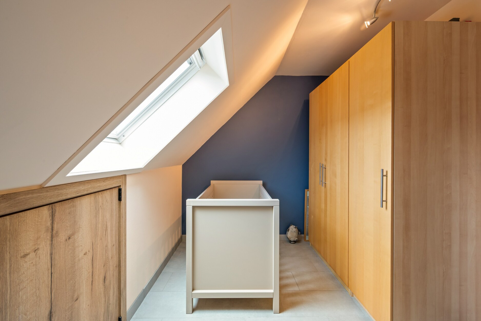 Op de verdieping bevinden zich vier slaapkamers, een bureauruimte die ideaal is voor thuiswerk, en een badkamer met douche, wastafel en ligbad. Daarnaast is er een apart toilet voorzien.