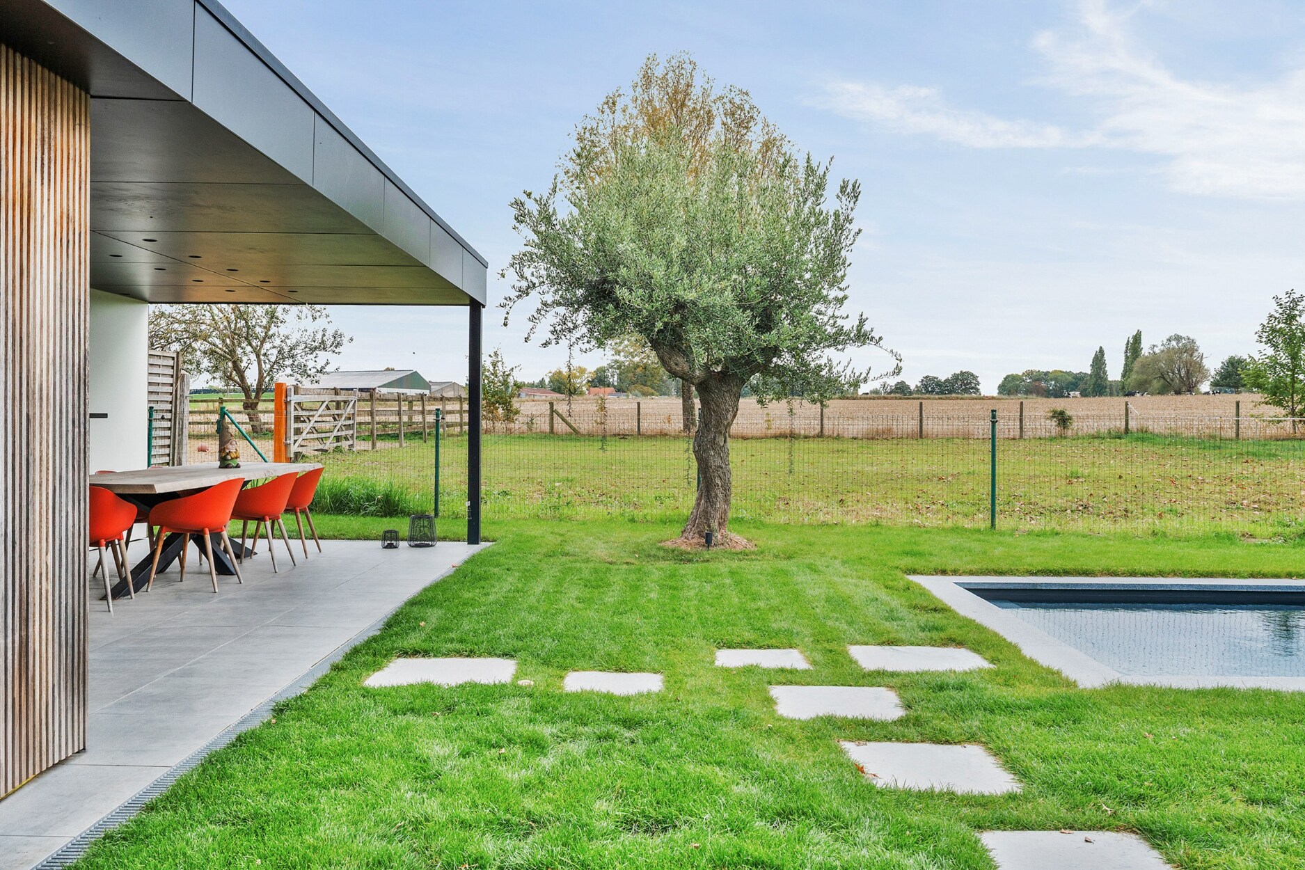 Buiten is het volop genieten. Het zuidgerichte terras met prachtig aangelegd zwembad vormt samen met de stijlvolle poolhouse met bar de perfecte setting voor ontspanning en gezellige momenten met familie en vrienden.