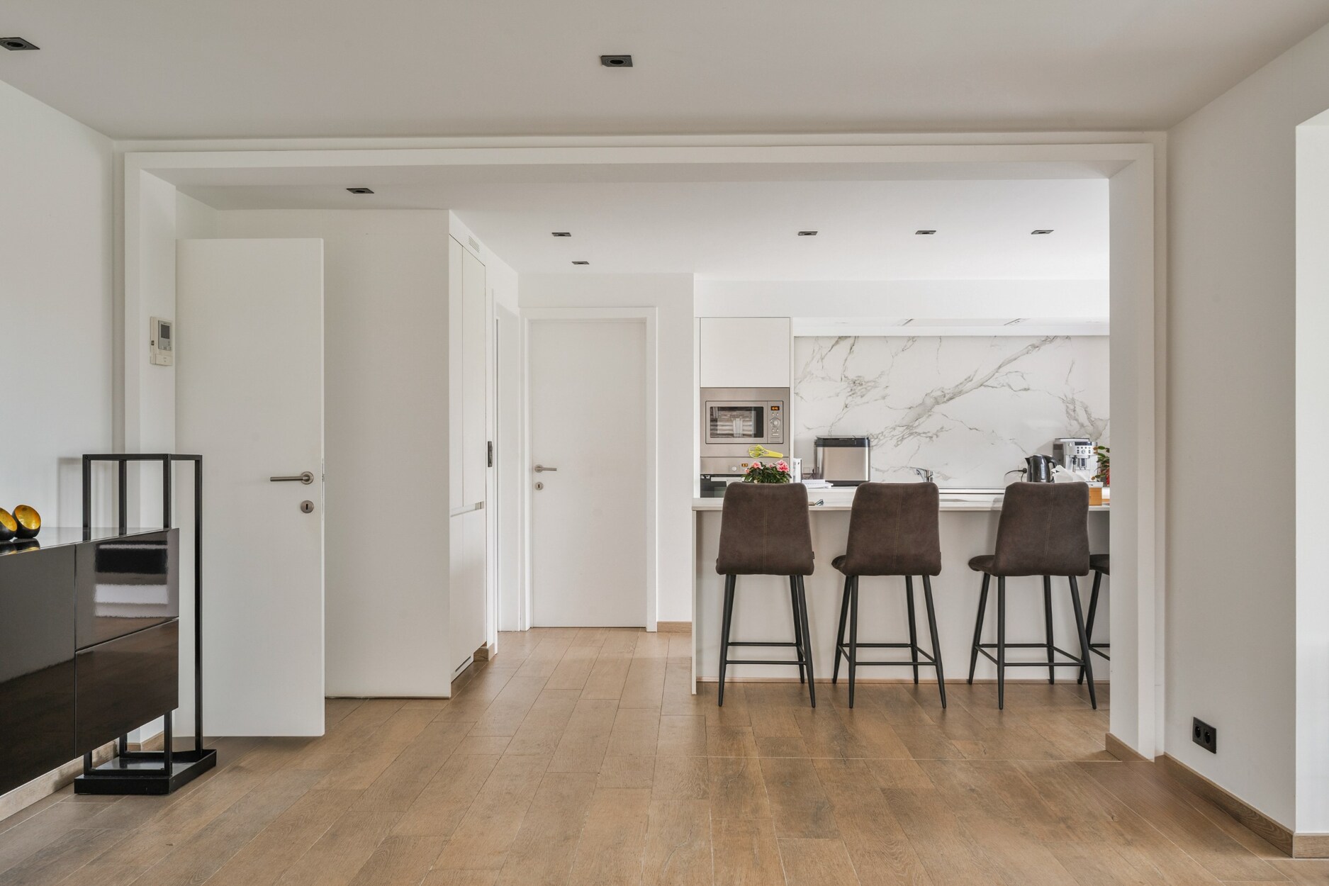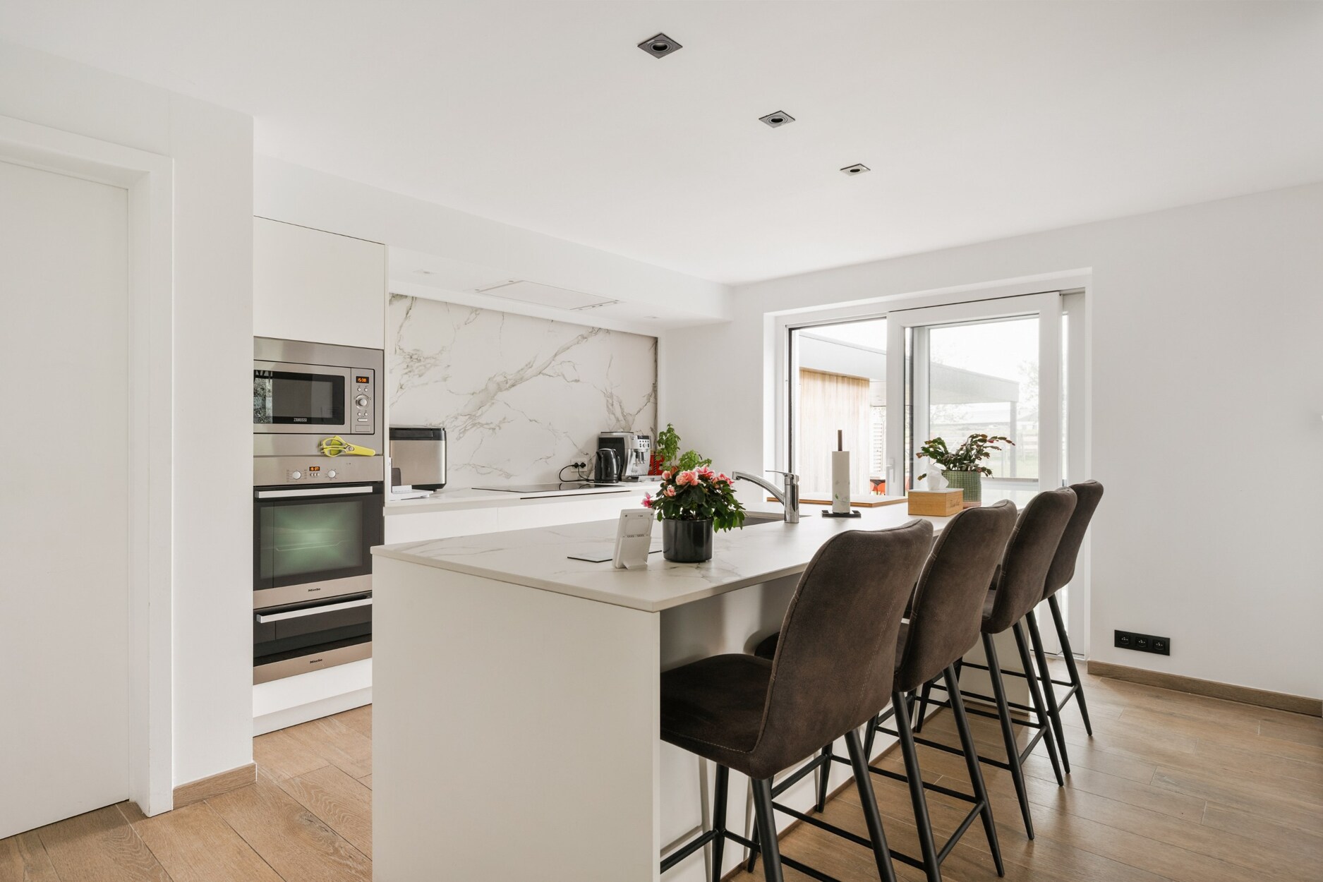 De high-end keuken vormt het hart van de woning en is uitgerust met een Dekton werkblad, inductiekookplaat, vaatwasser, oven, microgolfoven en warmhoudlade,....