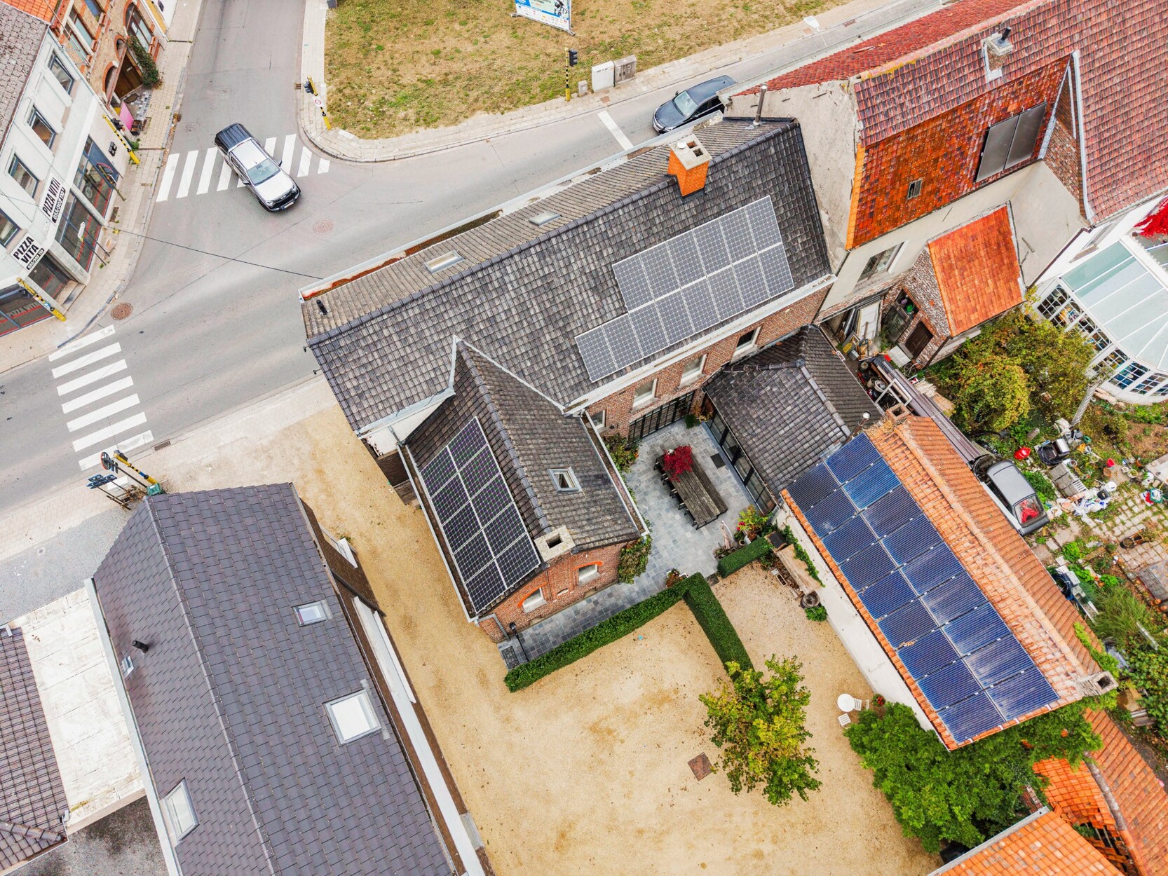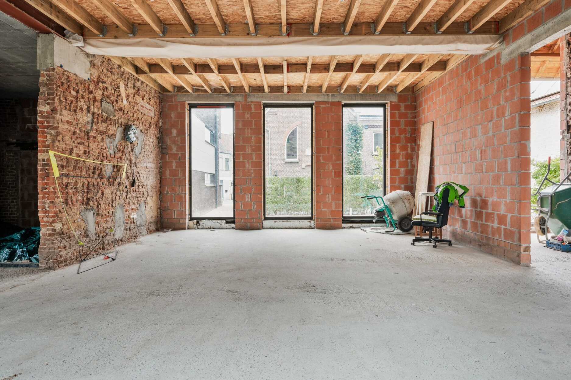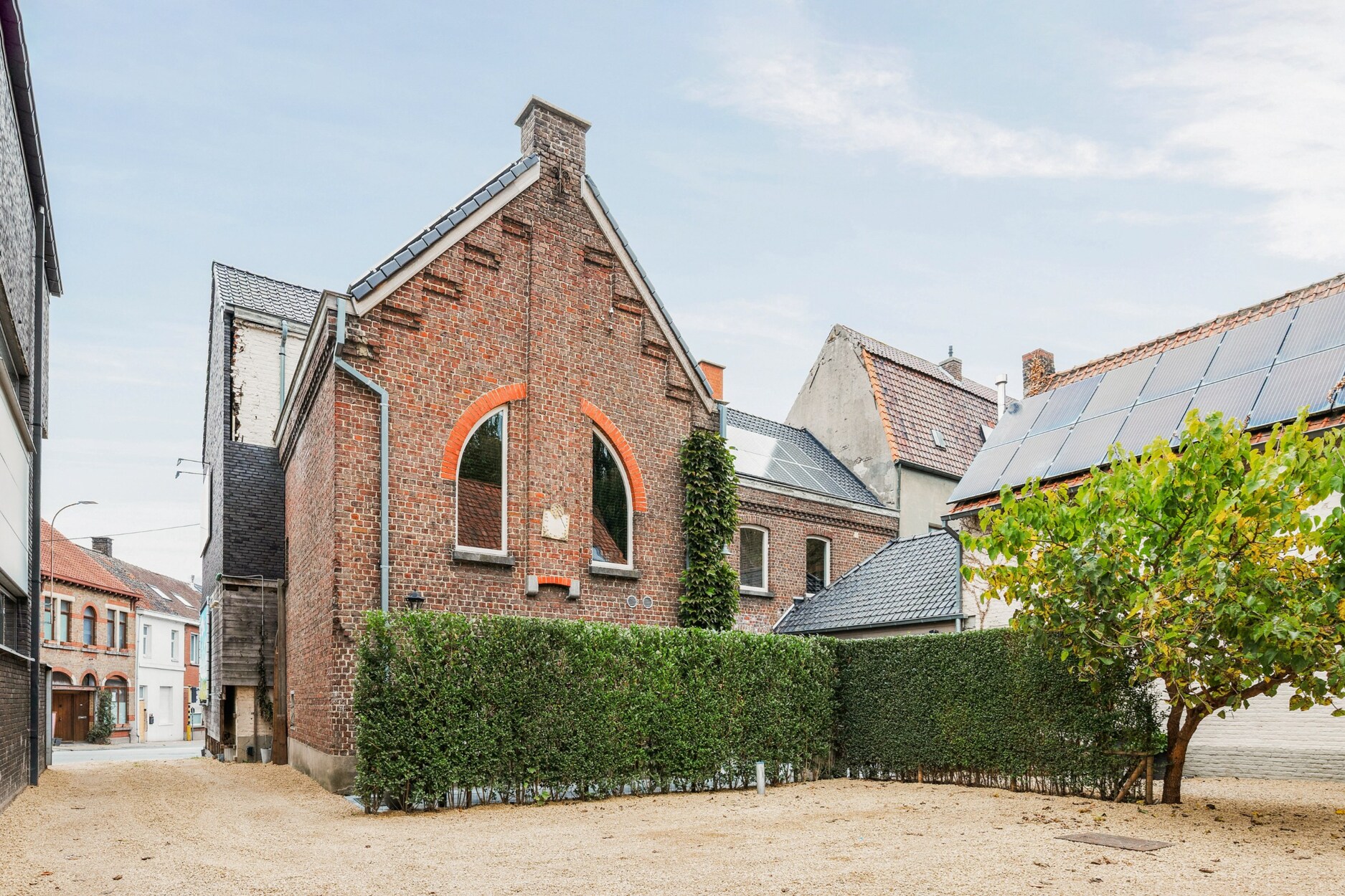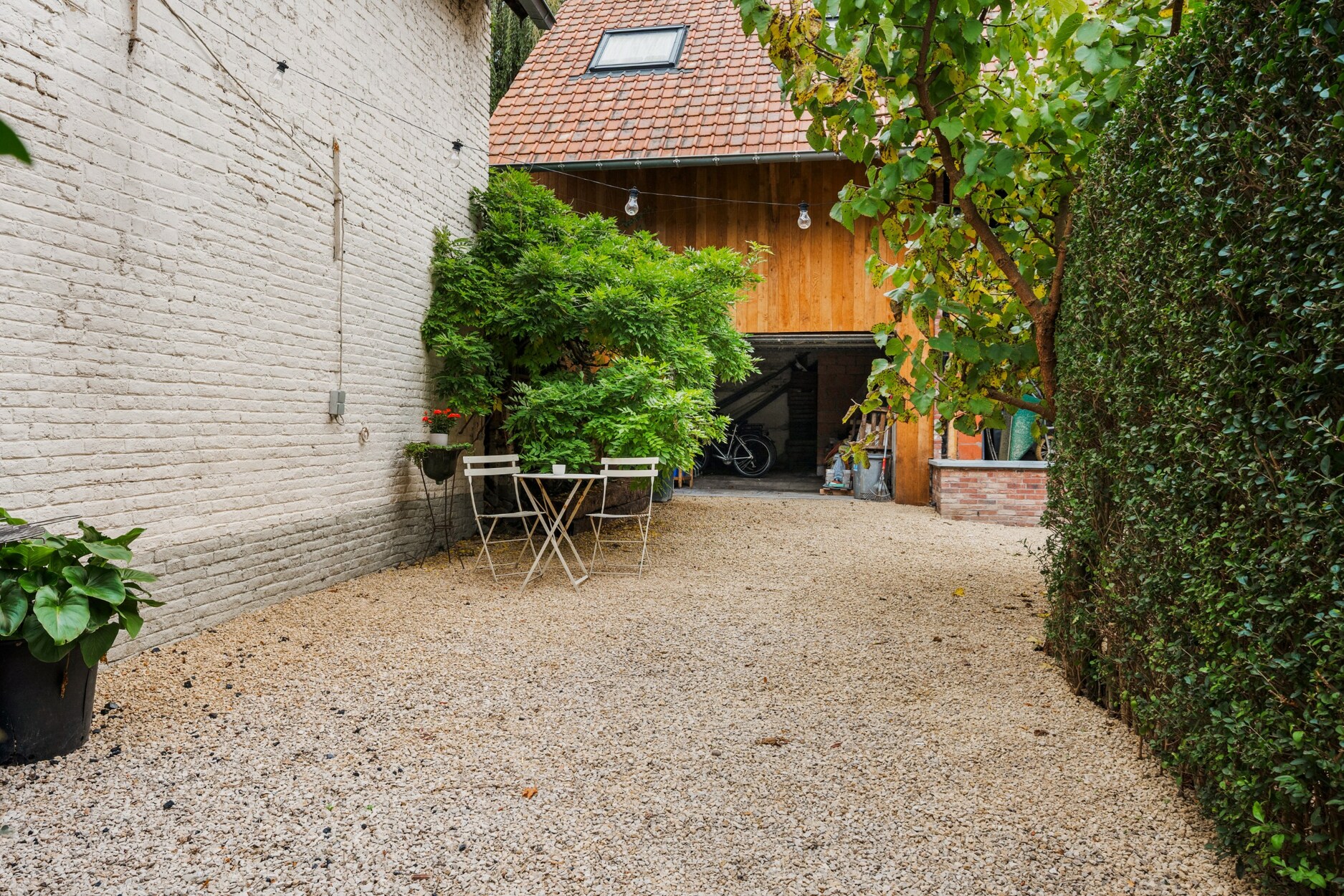 Tussen de herenwoning en de nieuwbouwwoning ligt een gezellige binnenplaats, een sfeervolle plek die beide gebouwen verbindt en uitnodigt tot samenzijn. Achteraan strekt zich een prachtige, diepe tuin uit: een oase van rust waar je volop kan genieten van het buitenleven. Bovendien is er achteraan een handige uitweg.