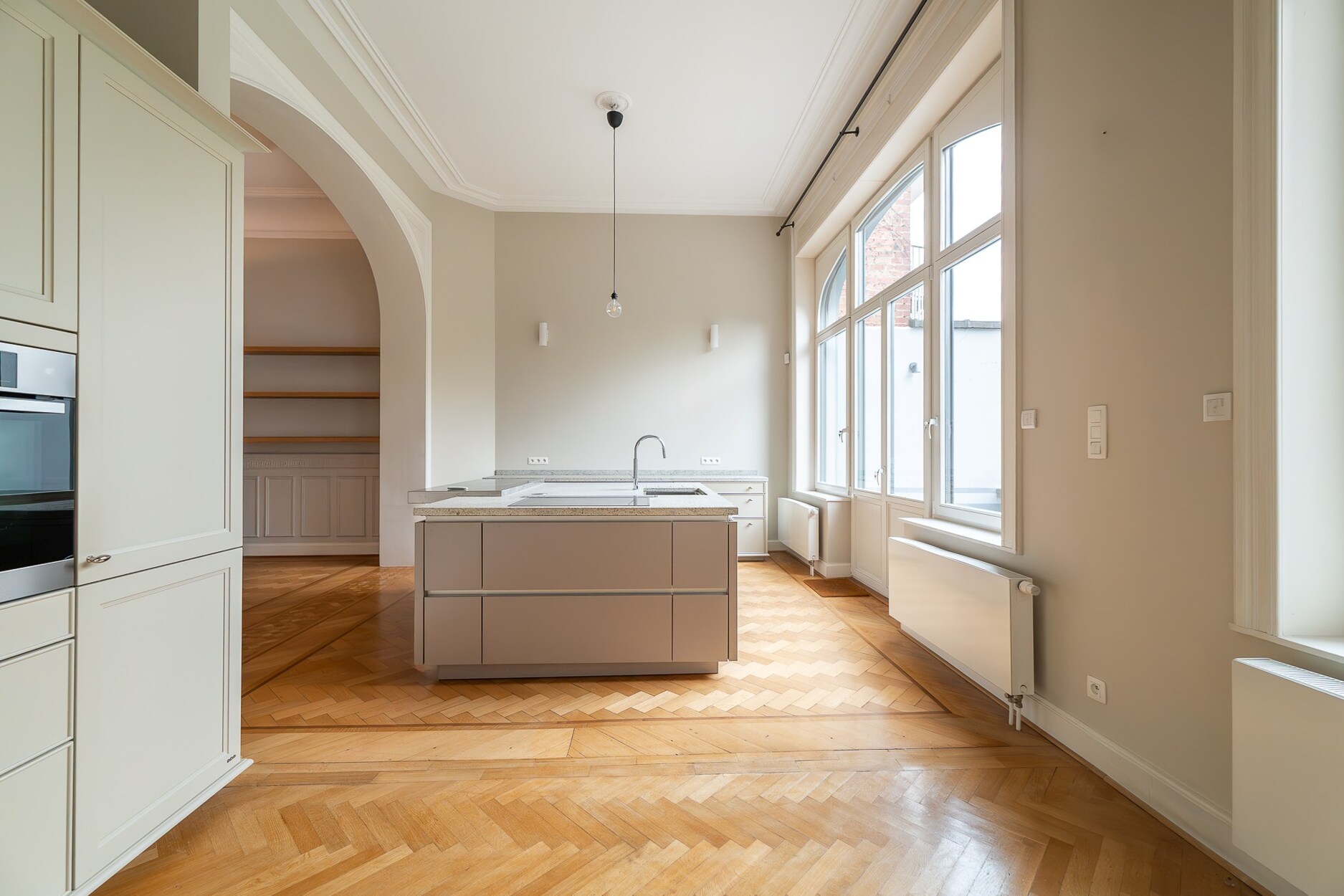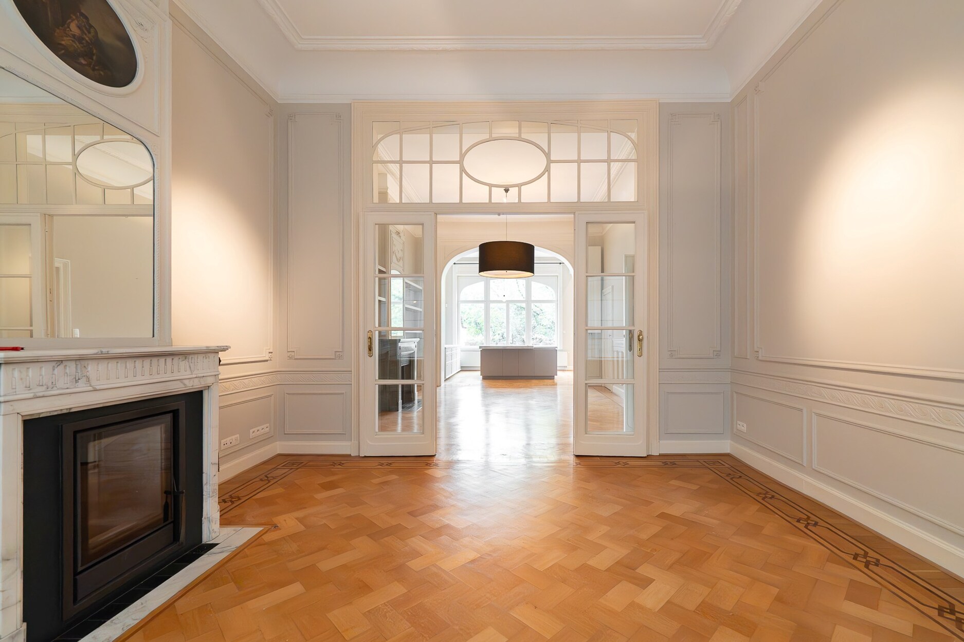 Gelegen in de gewilde Molièrewijk, onderscheidt deze volledig gerenoveerde herenwoning van ongeveer 520 m² zich door haar elegante Franse natuurstenen gevel van 7,5 meter en haar zuidgerichte tuin op een perceel van ± 3 are. De woning beschikt over vijf slaapkamers en een dubbele garage met twee bijkomende buitenstaanplaatsen.