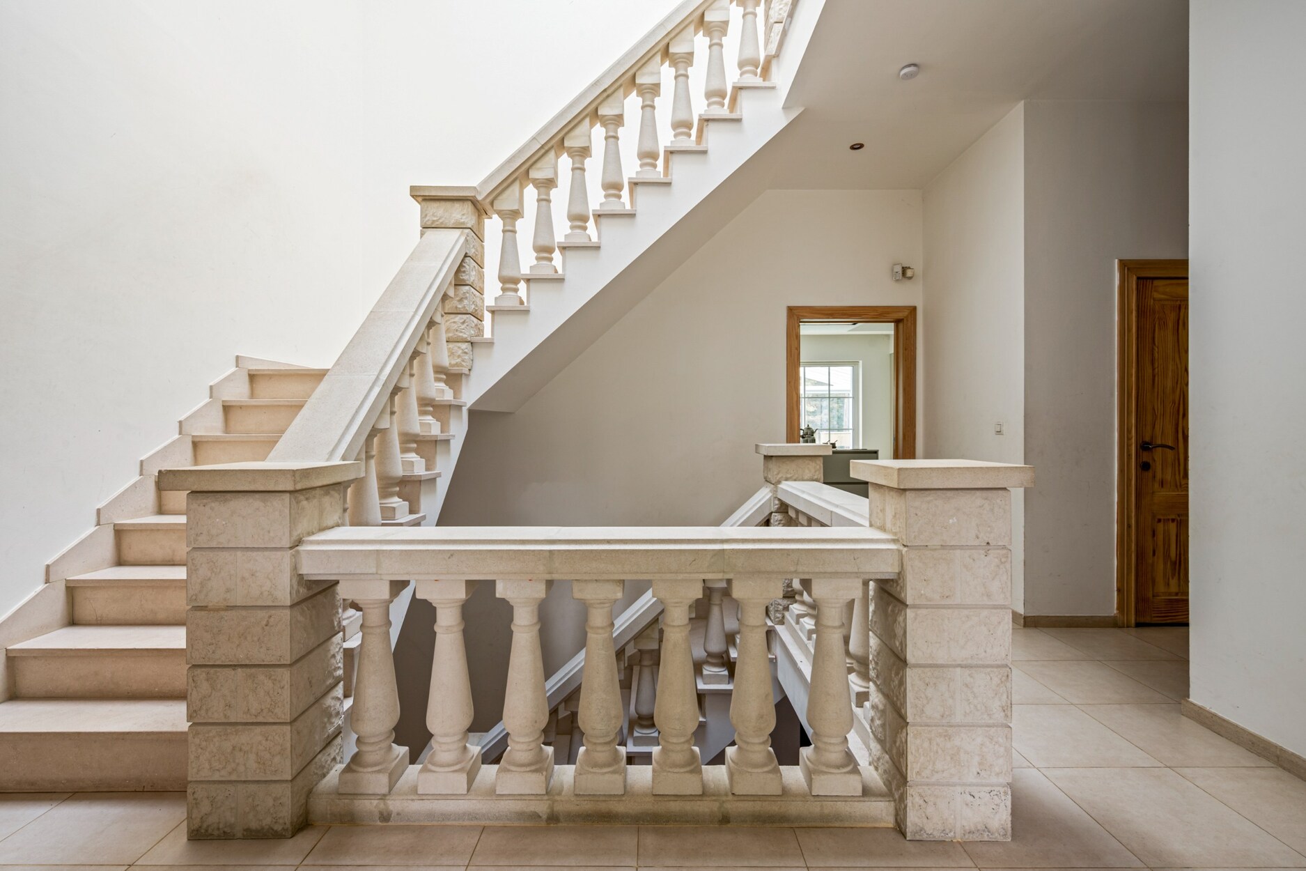 Bij het betreden van de woning word je meteen gegrepen door de majestueuze inkomhal, waar een elegante Spaanse trap je blik omhoog trekt. De open leefruimte baadt in natuurlijk licht dankzij grote raampartijen die een naadloze verbinding maken met de prachtig aangelegde tuin.