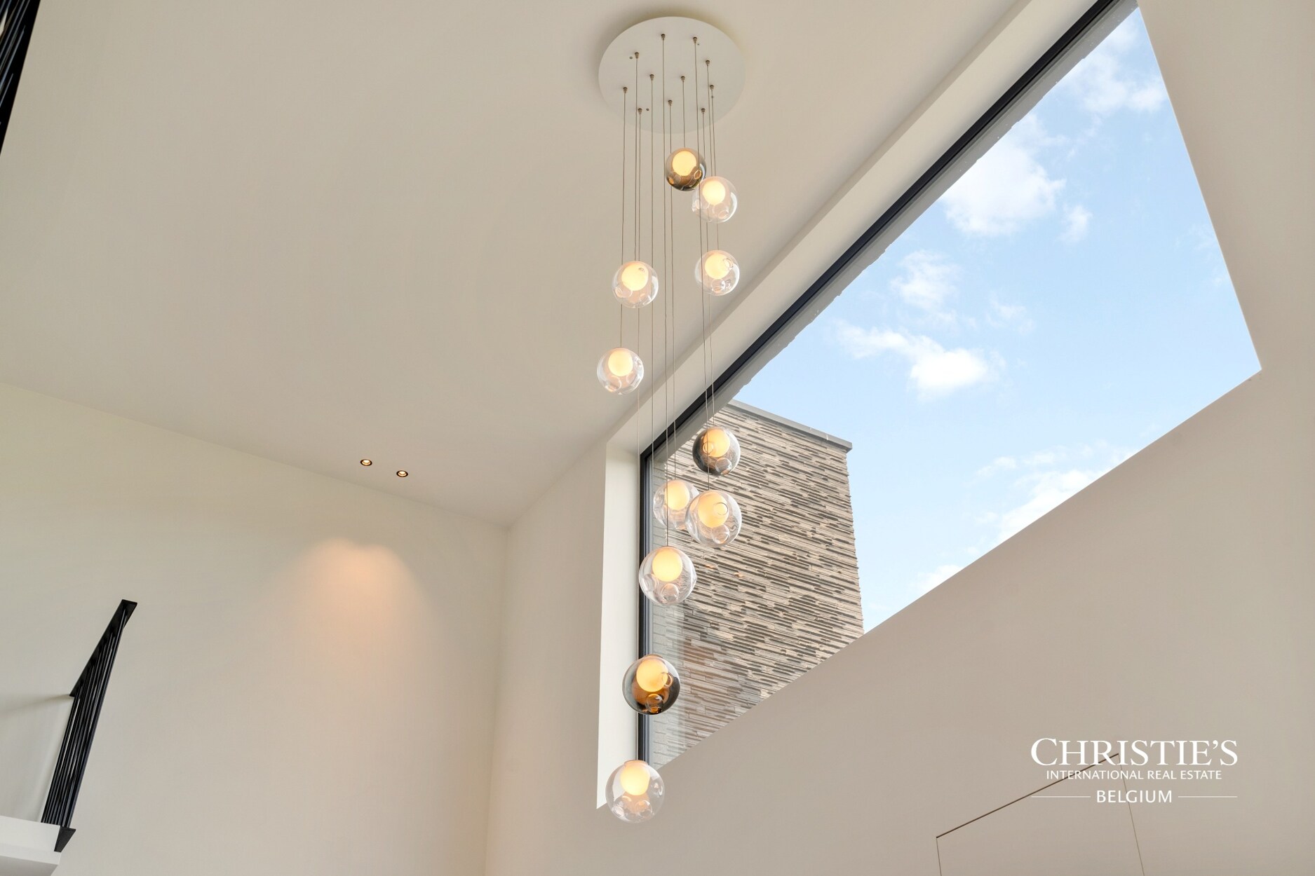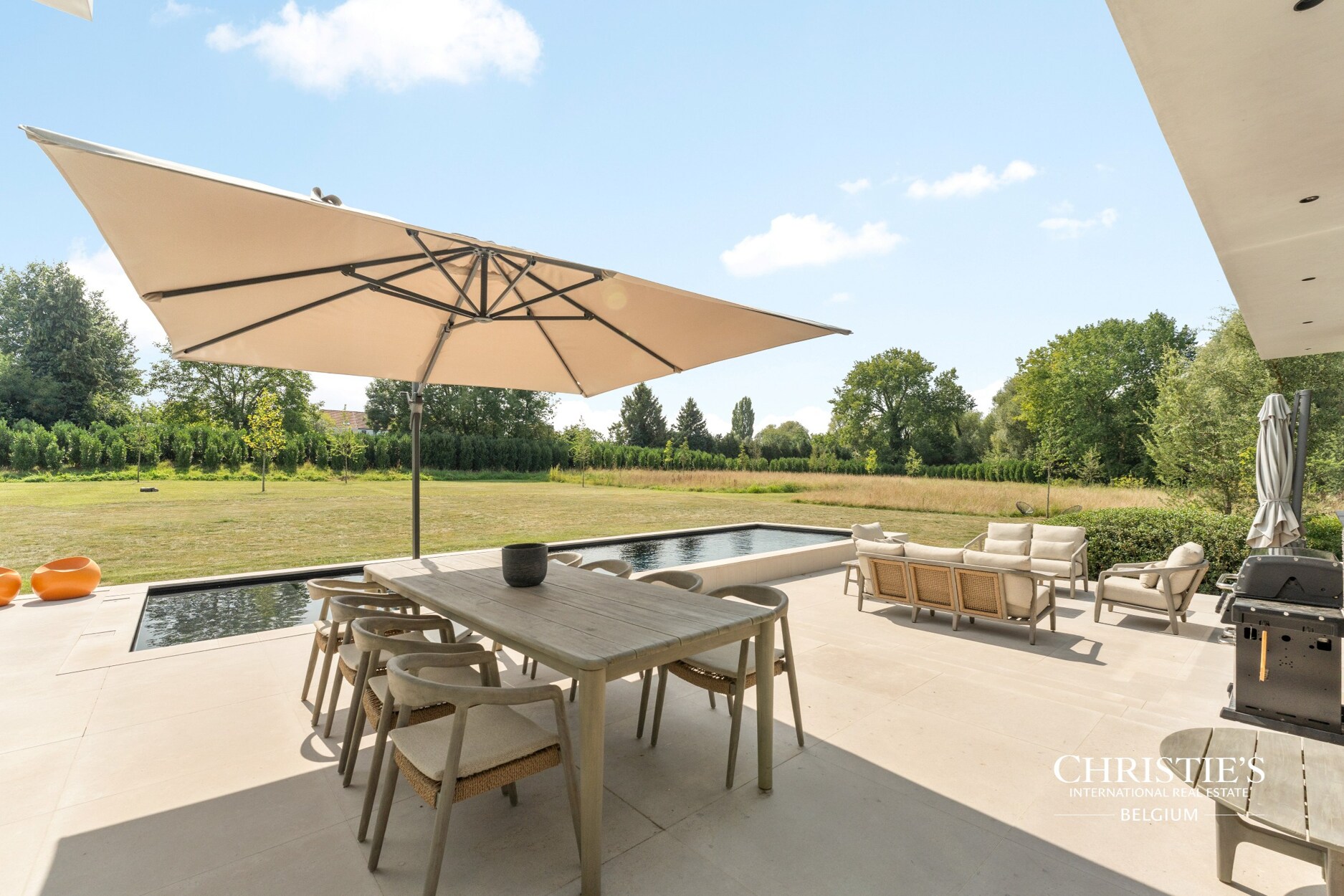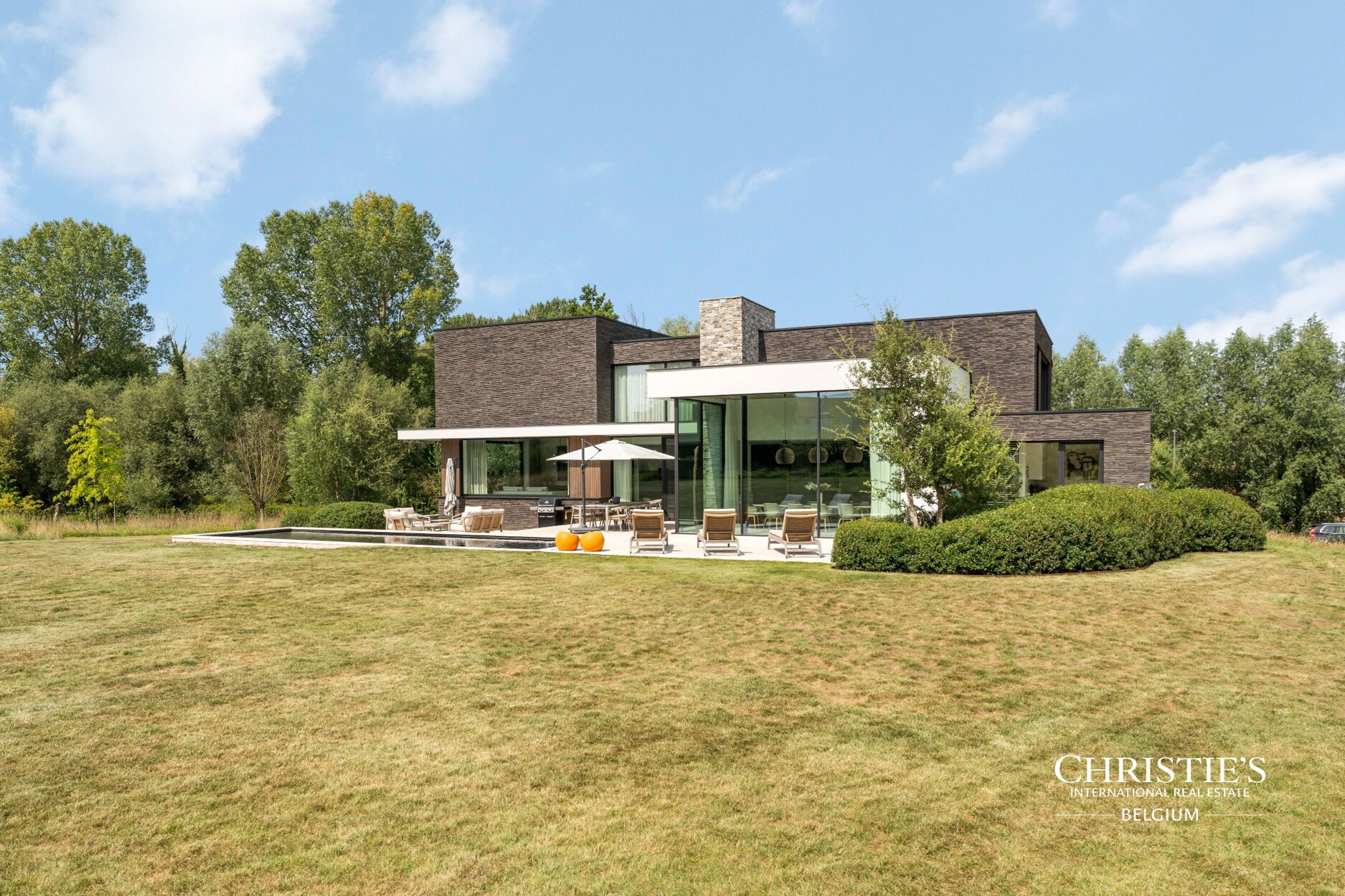 Op het einde van een rustige doodlopende straat, midden in een prachtige groene omgeving, vindt u deze luxueuze villa met een speelse en moderne architectuur van Mertens-architecten. De woning combineert een strak design met warme accenten en biedt alles wat u zich kan wensen op het vlak van comfort, ontspanning en privacy.