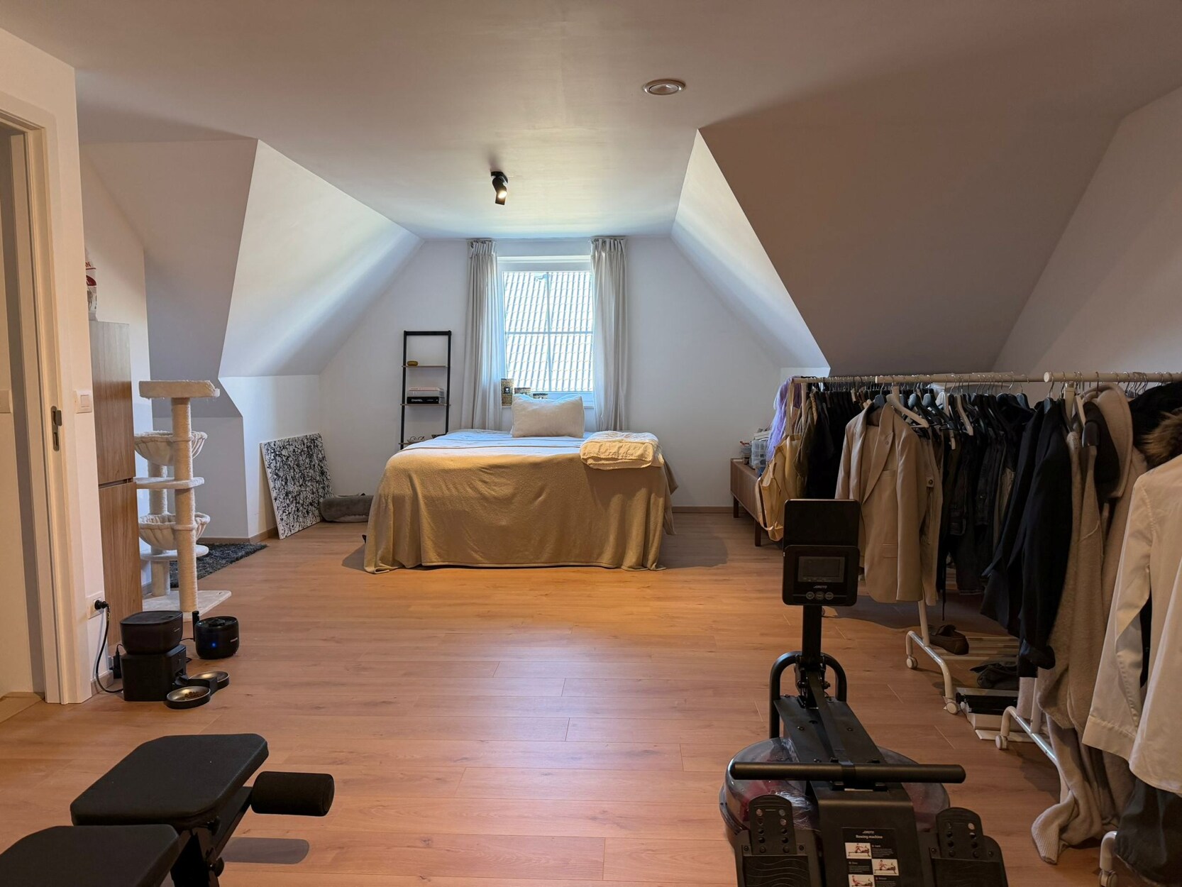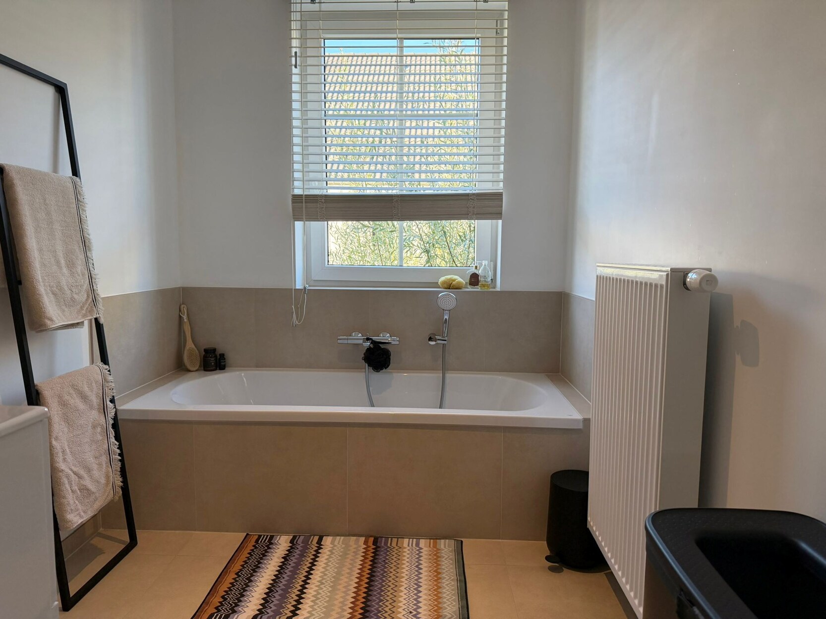 De inkomhal (met gastentoilet) biedt toegang tot een ruime woonkamer met open keuken. De moderne keuken werd voorzien van kwalitatieve toestellen en een aangrenzende berging. Dankzij de aanwezigheid van grote raampartijen, baadt deze open ruimte in het natuurlijk daglicht. Bovendien geven de grote ramen uit op de groene omheinde tuin, met ruim terras en tuinberging. De eerste verdieping omvat 3 ruime slaapkamers, een apart toilet en een luxueuze badkamer met inloopdouche, ligbad en dubbel wasmeubel. De tweede verdieping bestaat uit een technische ruimte en een riante polyvalente ruimte. De gehele eigendom werd afgewerkt in een charmante landelijke stijl, waardoor u een warme (gezins)woning wordt gegarandeerd!