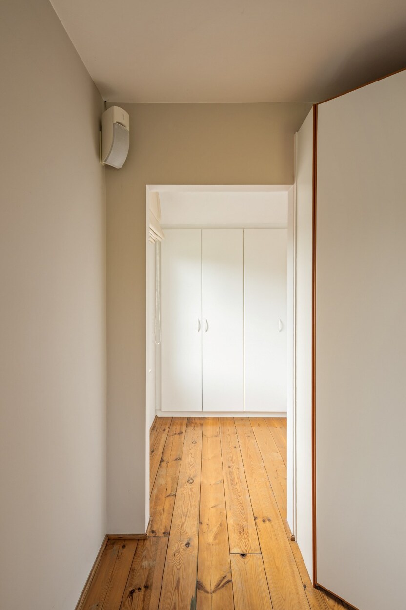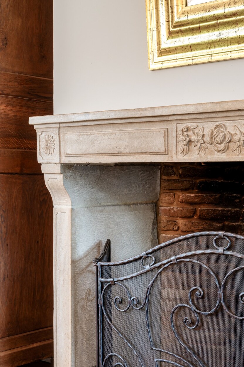 Via de warme en uitnodigende inkomhal met gastentoilet kom je binnen in de lichtrijke leefruimte, afgewerkt met een elegante eikenhouten vloer en een prachtige open haard als eyecatcher. De grote ramen zorgen voor veel natuurlijke lichtinval en geven rechtstreeks toegang tot de zuidgerichte tuin — een heerlijke plek om in alle rust te genieten.