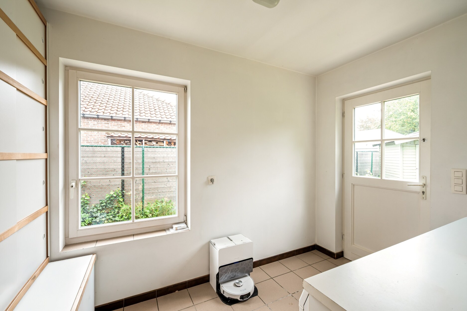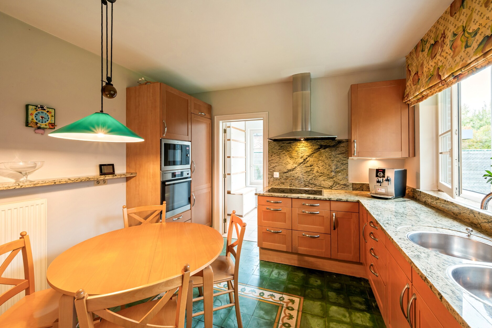 De keuken is uitgerust met kwalitatieve toestellen en sluit aan op een praktische wasplaats. Vanuit de keuken bereik je tevens de inpandige dubbele garage, waar een warmtekrachtcentrale van Viessmann (2020) staat. De temperatuur en huishoudtoestellen kunnen vanop afstand bediend worden dankzij de slimme wifi-koppeling. Buiten is een elektrische laadpaal aanwezig waarmee je wagen binnen vier uur volledig oplaadt.