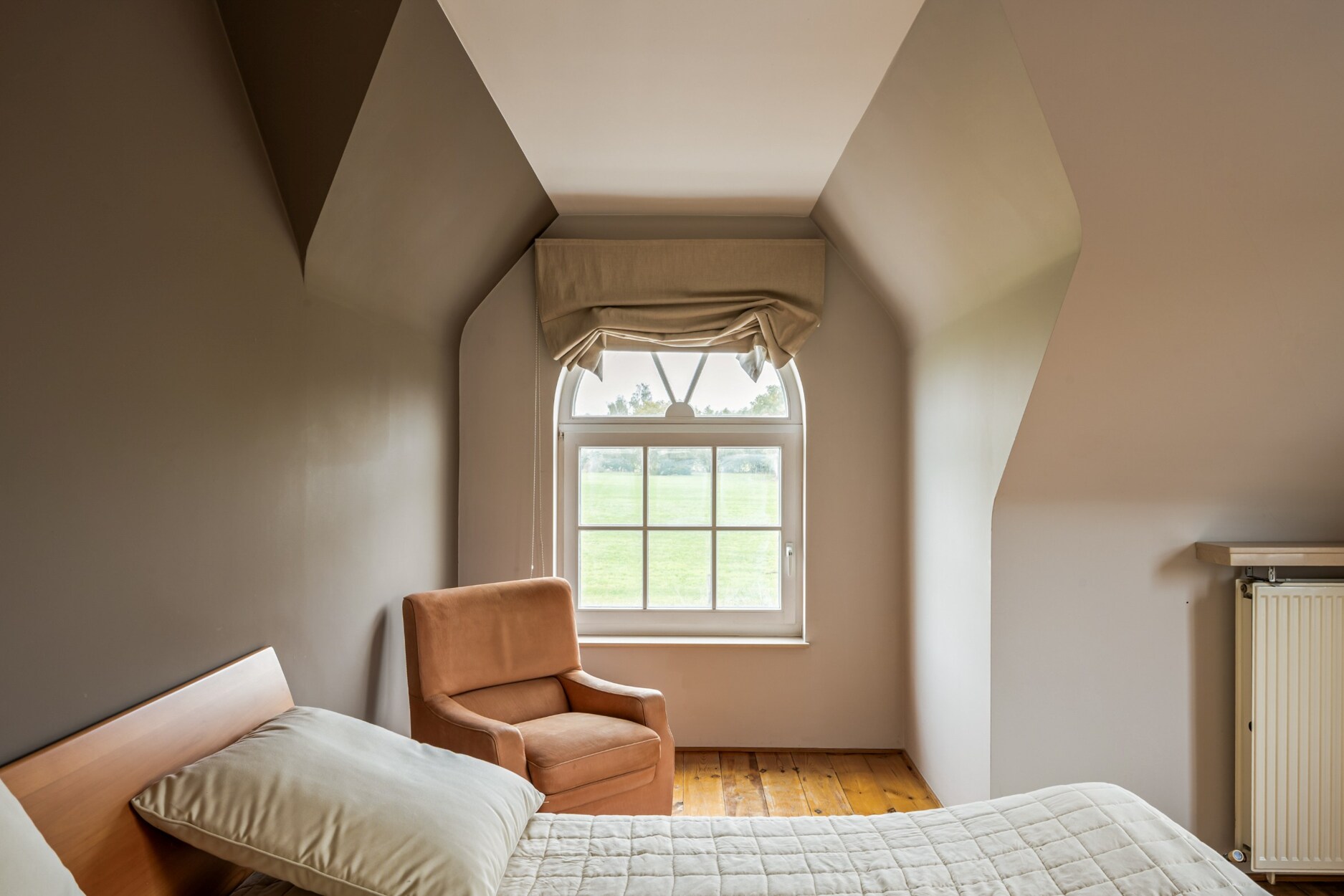 Op de verdieping bevinden zich vier ruime slaapkamers, allemaal voorzien van ingebouwde kasten. De luxueuze badkamer is afgewerkt met Carrara-marmer en uitgerust met jacuzzi en dubbele wastafel. Daarnaast is er nog een aparte douchekamer. Via de vierde slaapkamer is de zolder van circa 16 m² toegankelijk — ideaal als extra opslag.