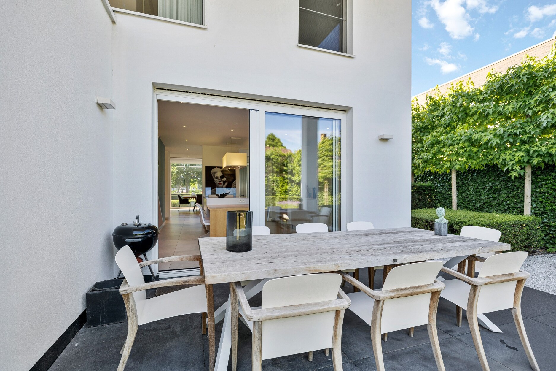 De tuin is volledig omheind en voorzien van een overdekt terras en bijgebouw. Dankzij de leilinden is er voldoende privacy aanwezig.