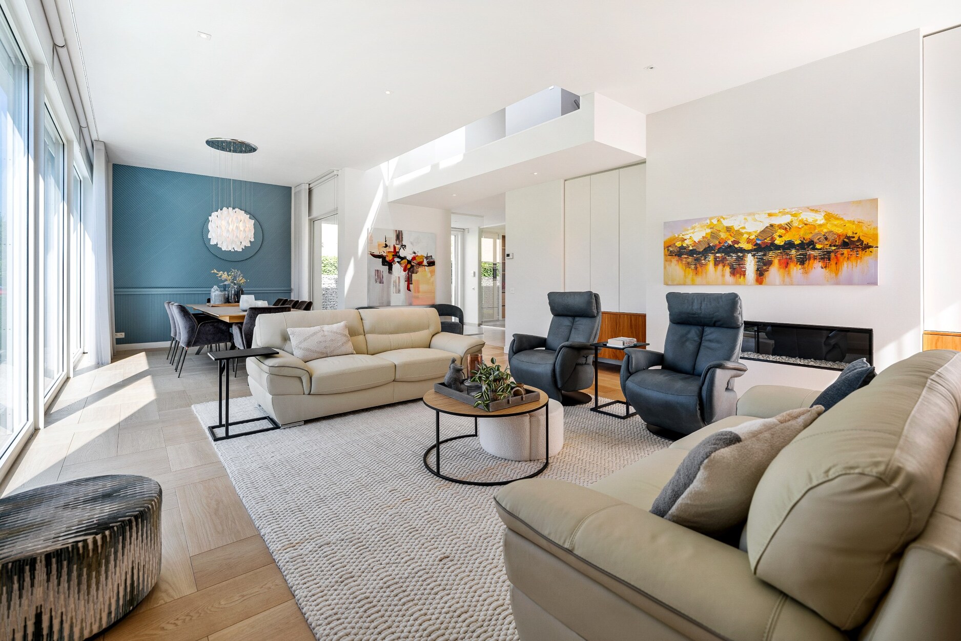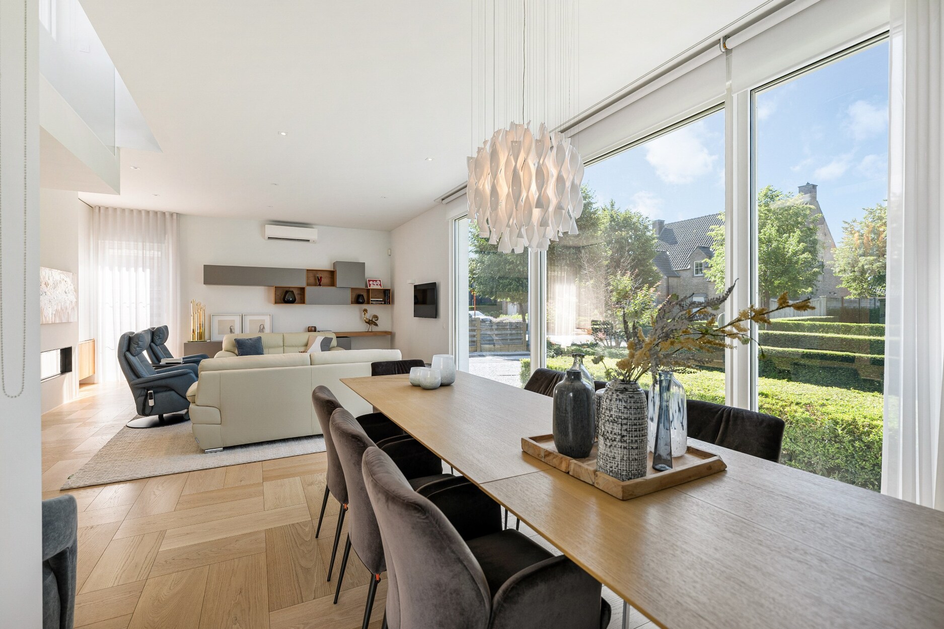 In elke ruimte stroomt er overvloedig licht binnen, wat een rustgevend gevoel tot stand brengt.