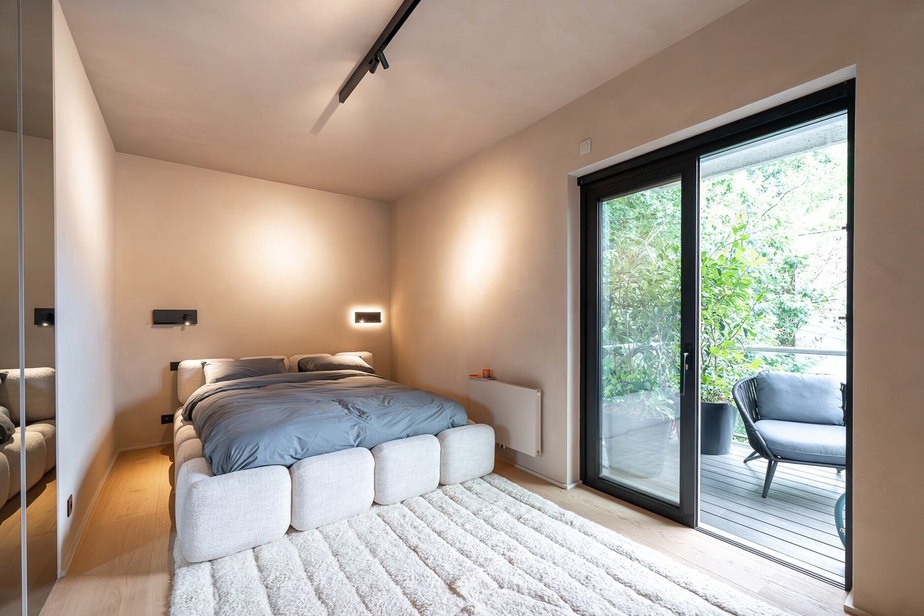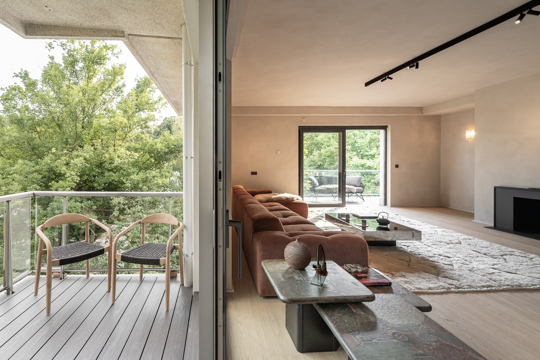 Technische kenmerken: vloerverwarming in de leefruimtes, dubbele beglazing met lage zonne-absorptie, pre-installatie voor airconditioning, elektrische rolluiken, muren en plafonds afgewerkt met natuurlijke kleipleister, veiligheidsdeur, alarmsysteem, twee recente ketels, kelders. Optie: twee afgesloten dubbele garageboxen (€100.000). Het appartement kan eveneens gemeubeld verkocht worden, mits een meerprijs.